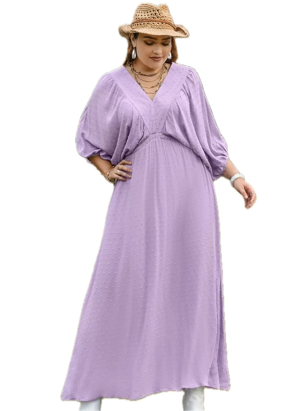 Women's Plus Size Swiss Dot V Neck Midi Dress 100% viscose Not Lined No Stretch Lightweight Sheer Elegant Everyday Wear