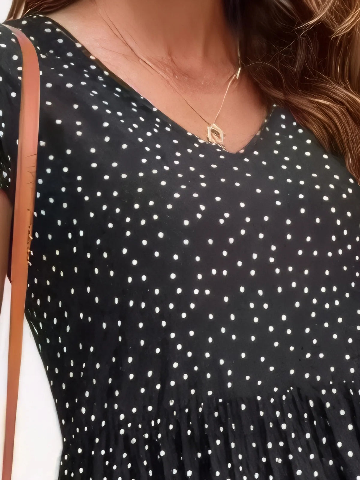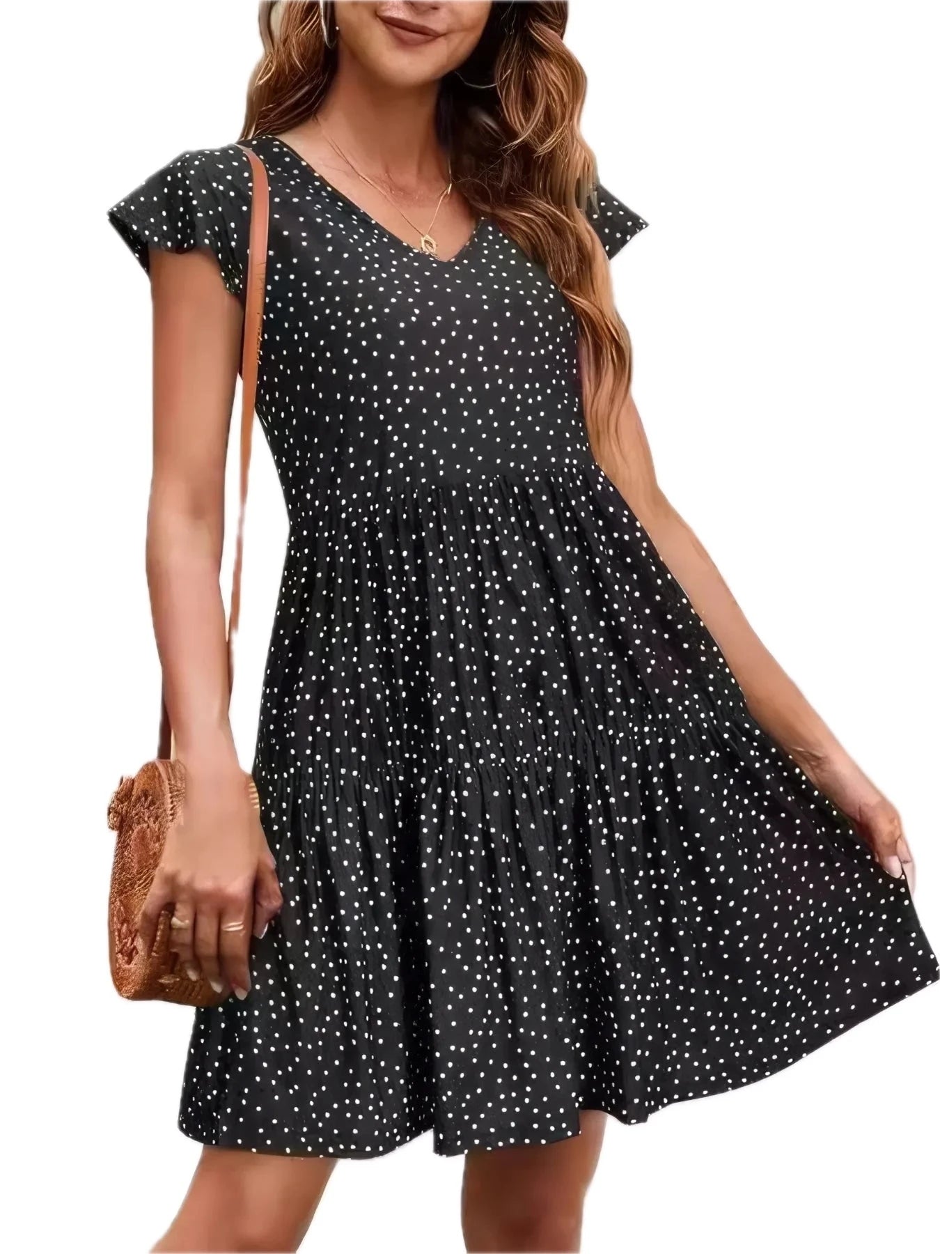 Women's Polka Dot Ruffle Sleeve V Neck Mini Dress 100% Polyester Lightweight Flowy Party Ready Outfit for Parties