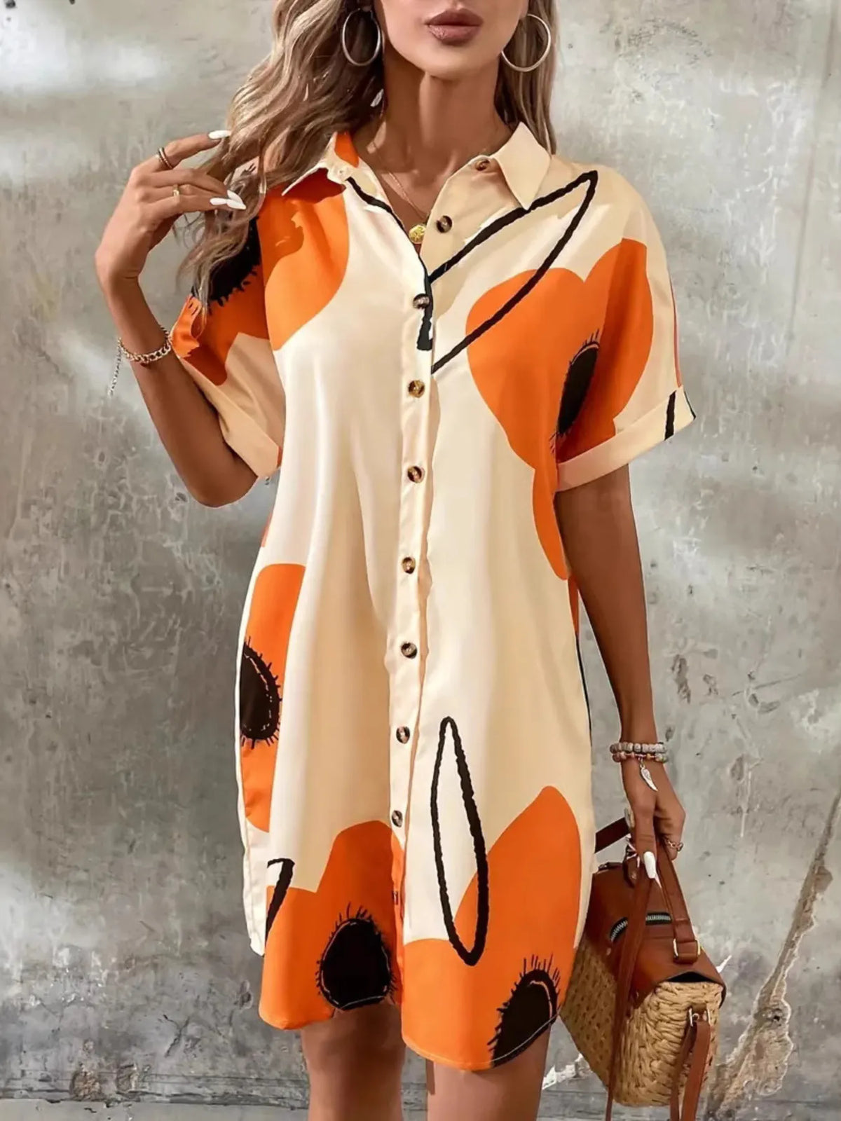 Women's Printed Button Front Shirt Dress 100% Polyester Lightweight Easy Care Everyday Casual Work And Weekend Wear
