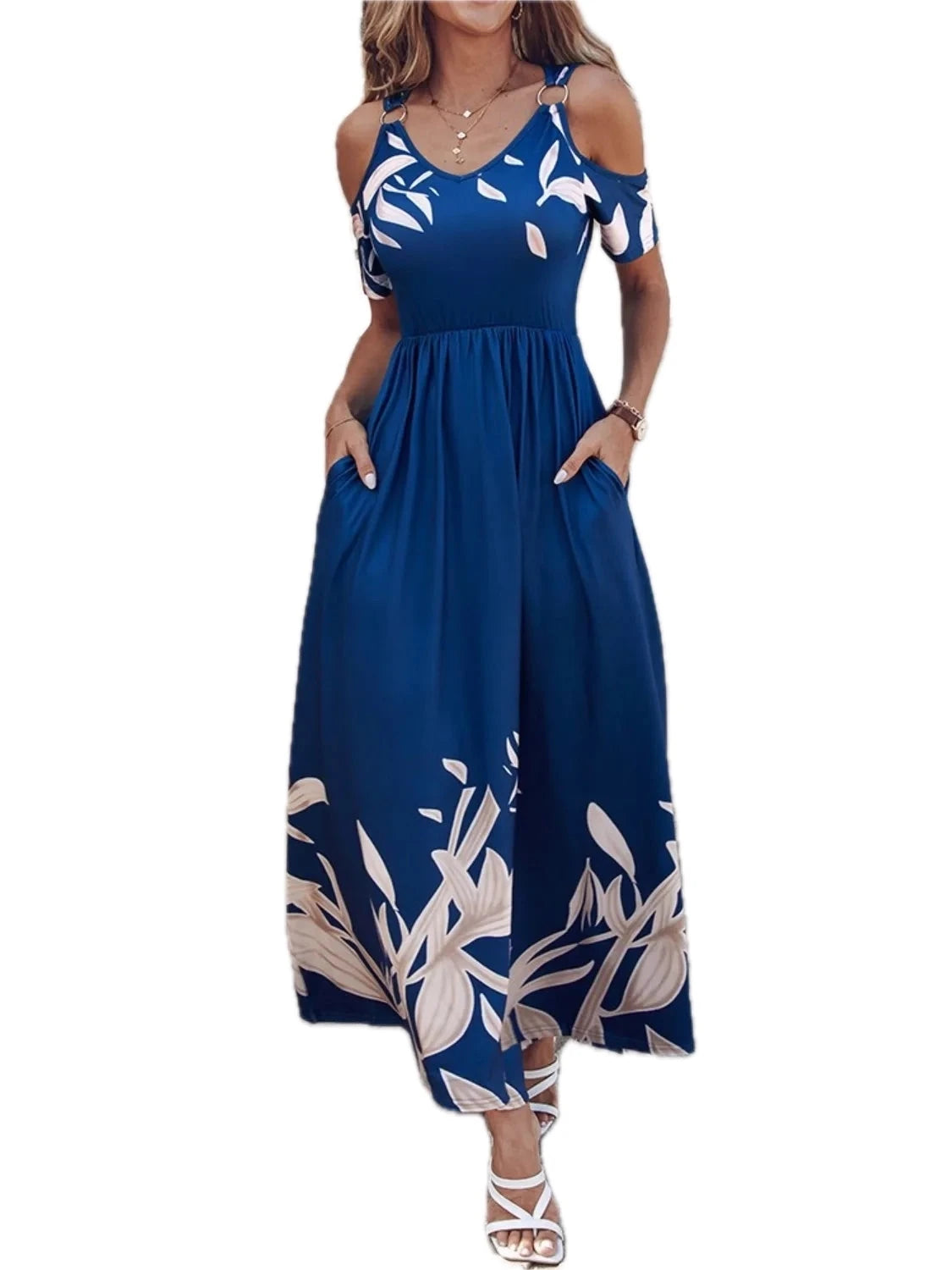 Women's Printed Cold Shoulder Dress 100% Polyester With Pockets Flowy Lightweight Easy Care For Everyday Wear