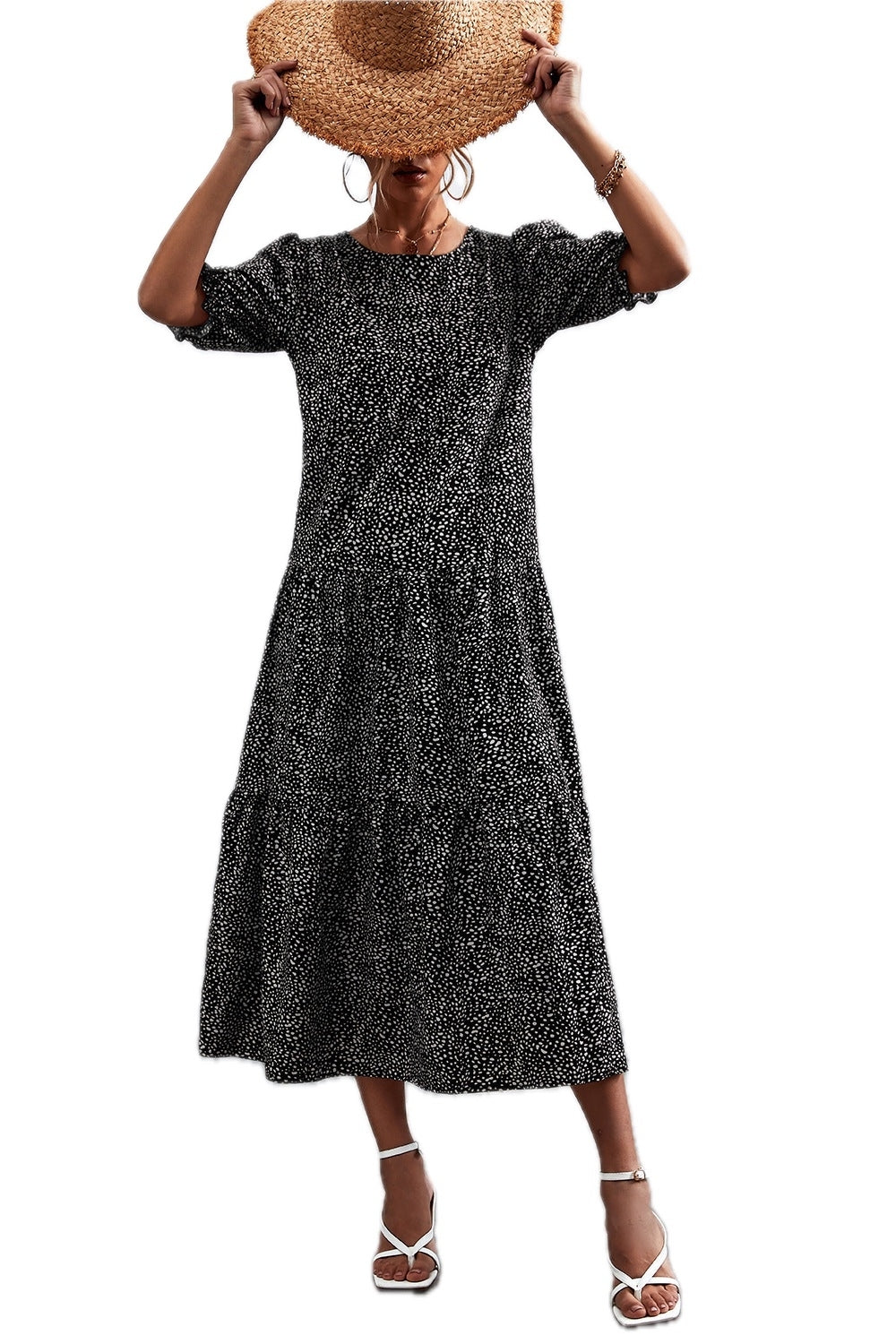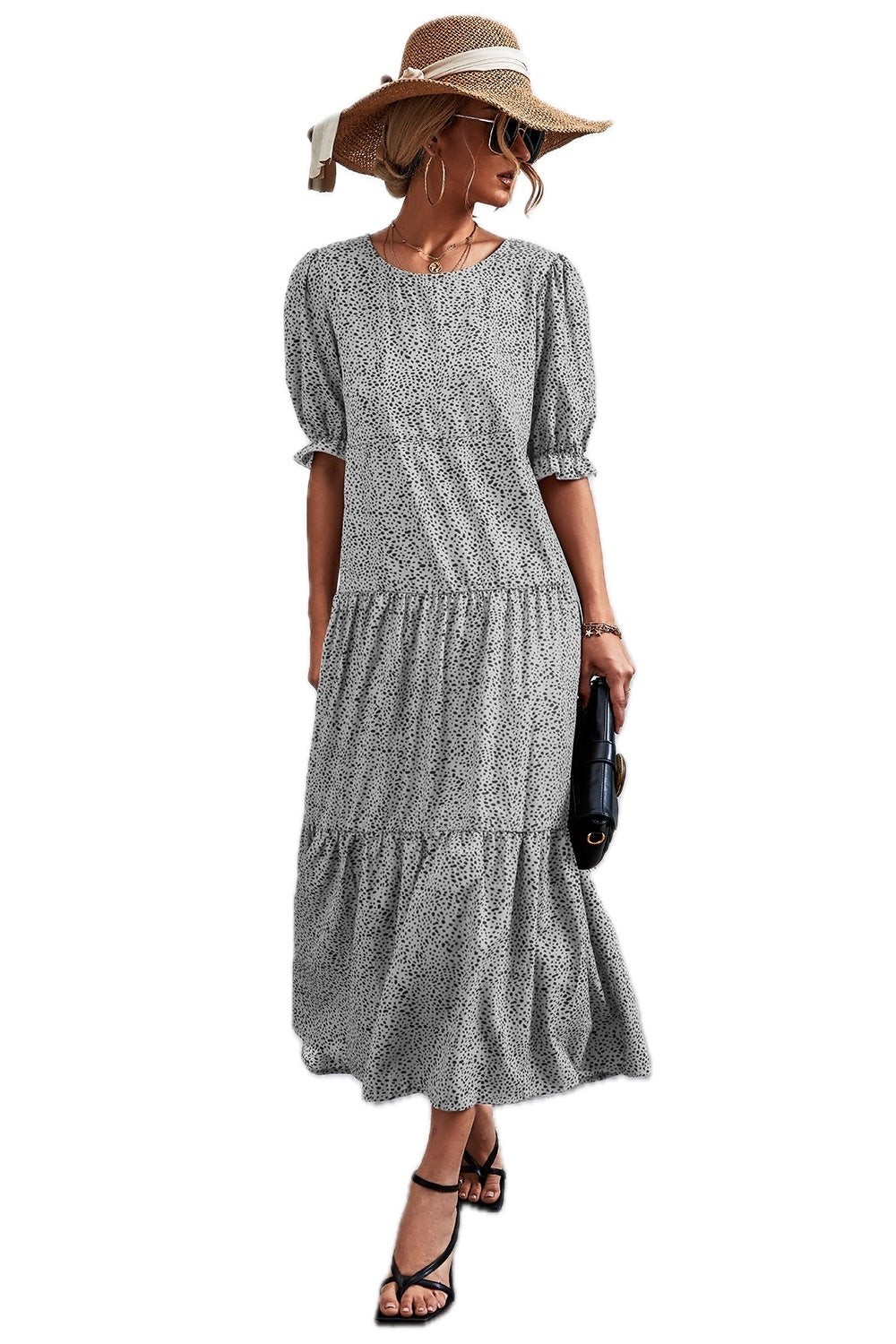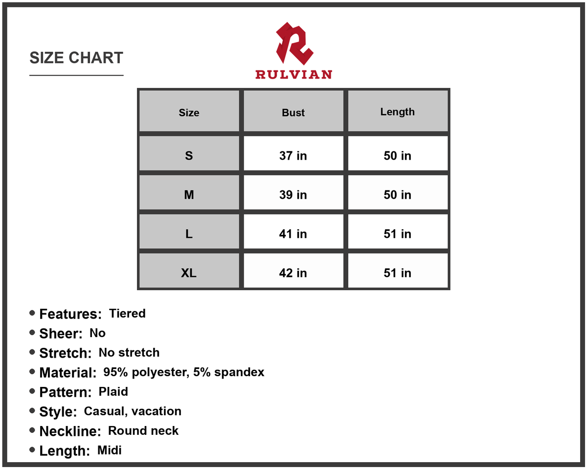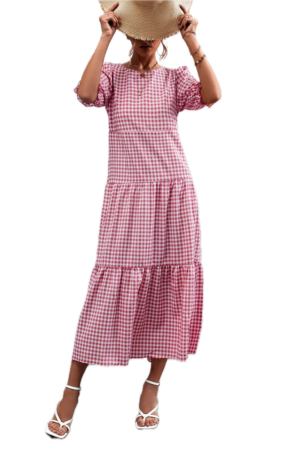 Women's Printed Flounce Sleeve Tiered Midi Dress Plaid Casual Vacation Ready Everyday Wear 95% Polyester 5% Spandex