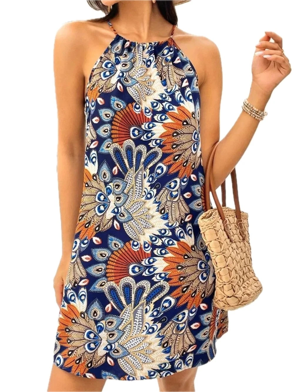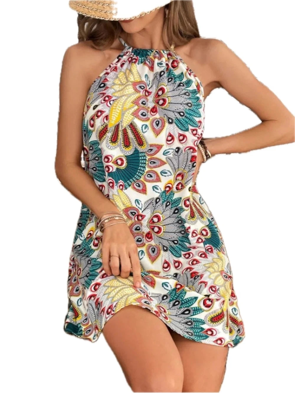 Women's Printed Grecian Neck Mini Dress 100% Polyester fabric Flattering Silhouette for Day to Night Looks Everyday