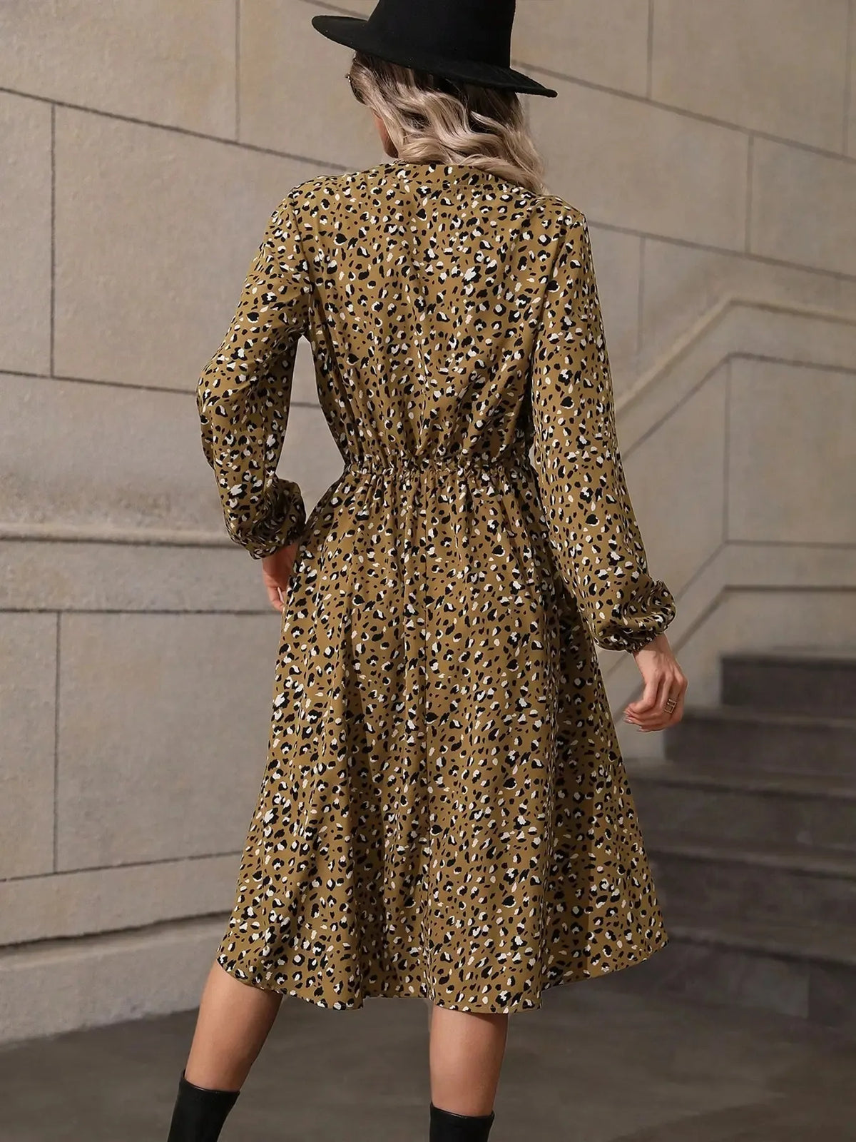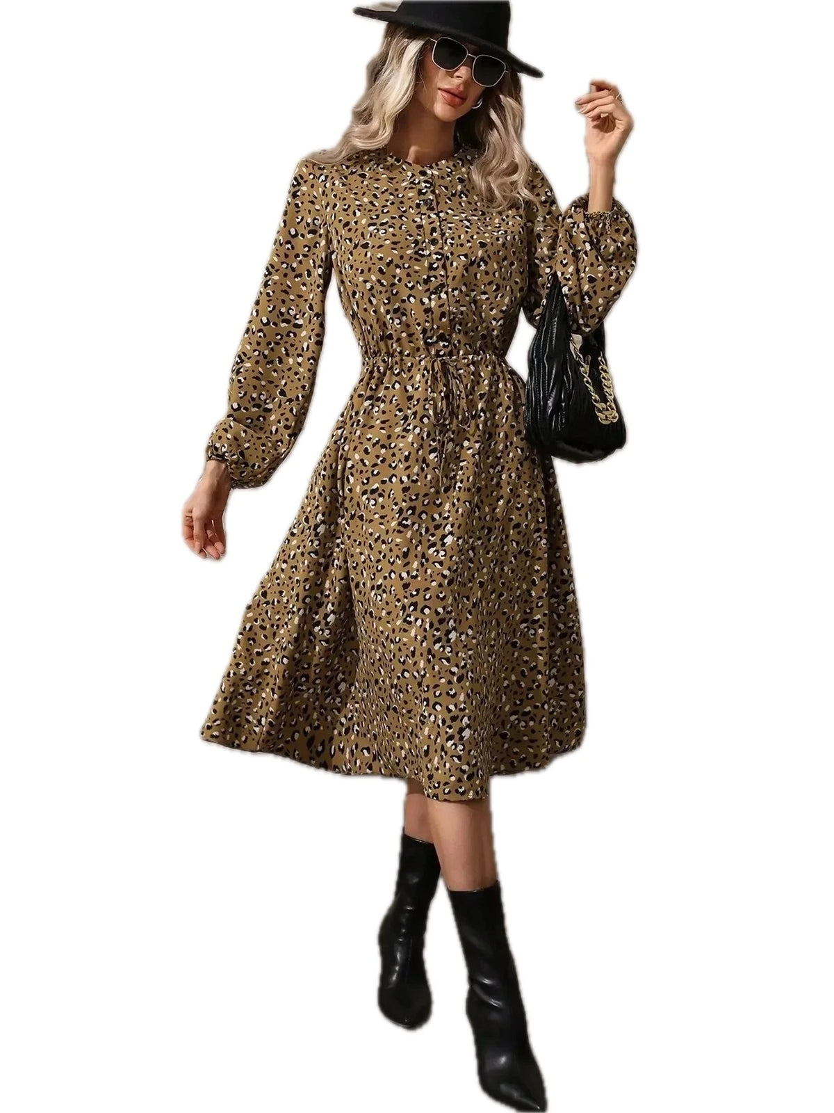 Women's Printed Long Sleeve Midi Dress with 100% Polyester Fabric for Comfortable Everyday Wear Flowy and Stylish