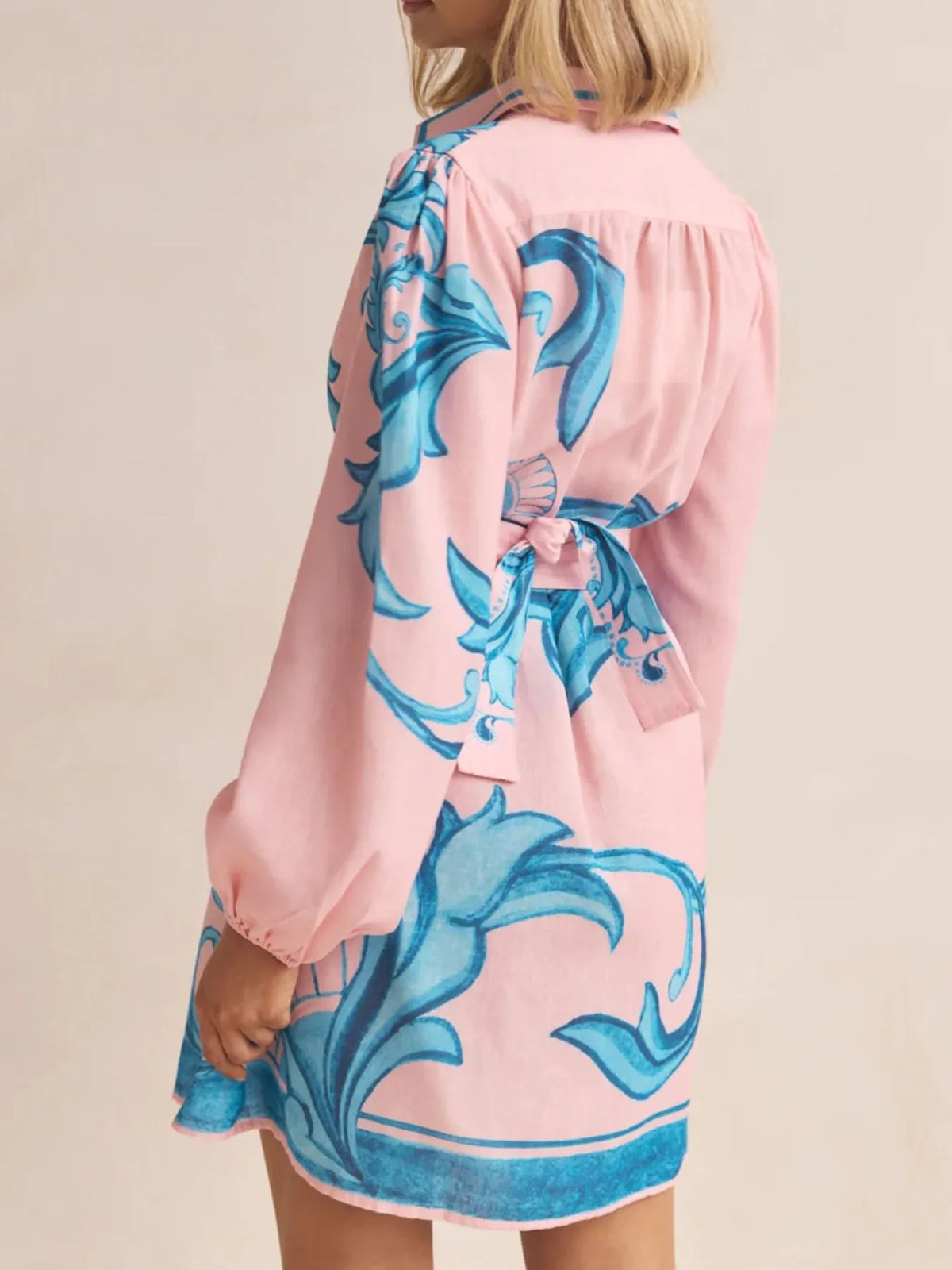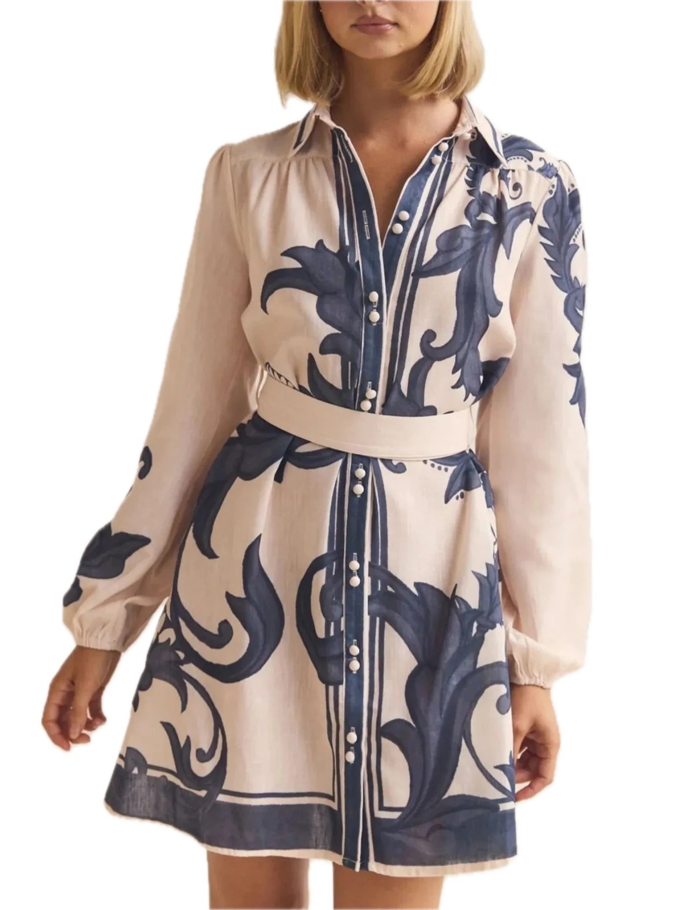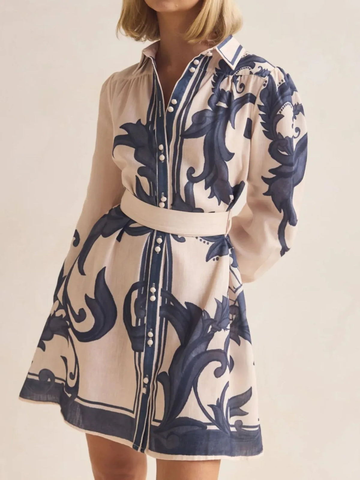 Womens Printed Long Sleeve Shirt Dress Belted Button Front for Casual Everyday Wear 100% Polyester Fabric All Season