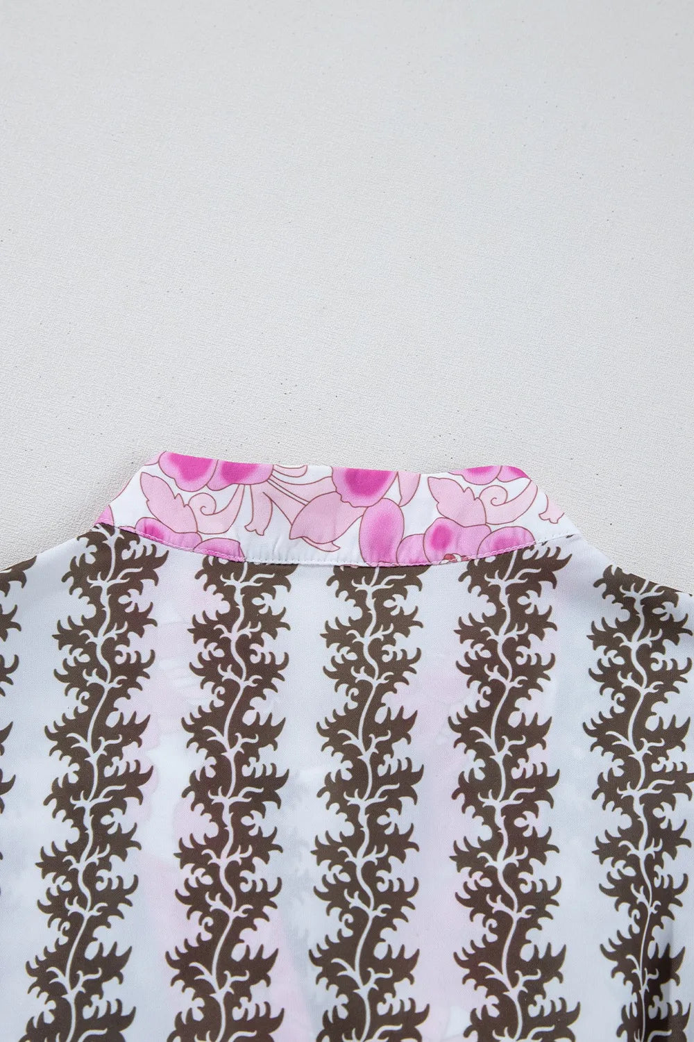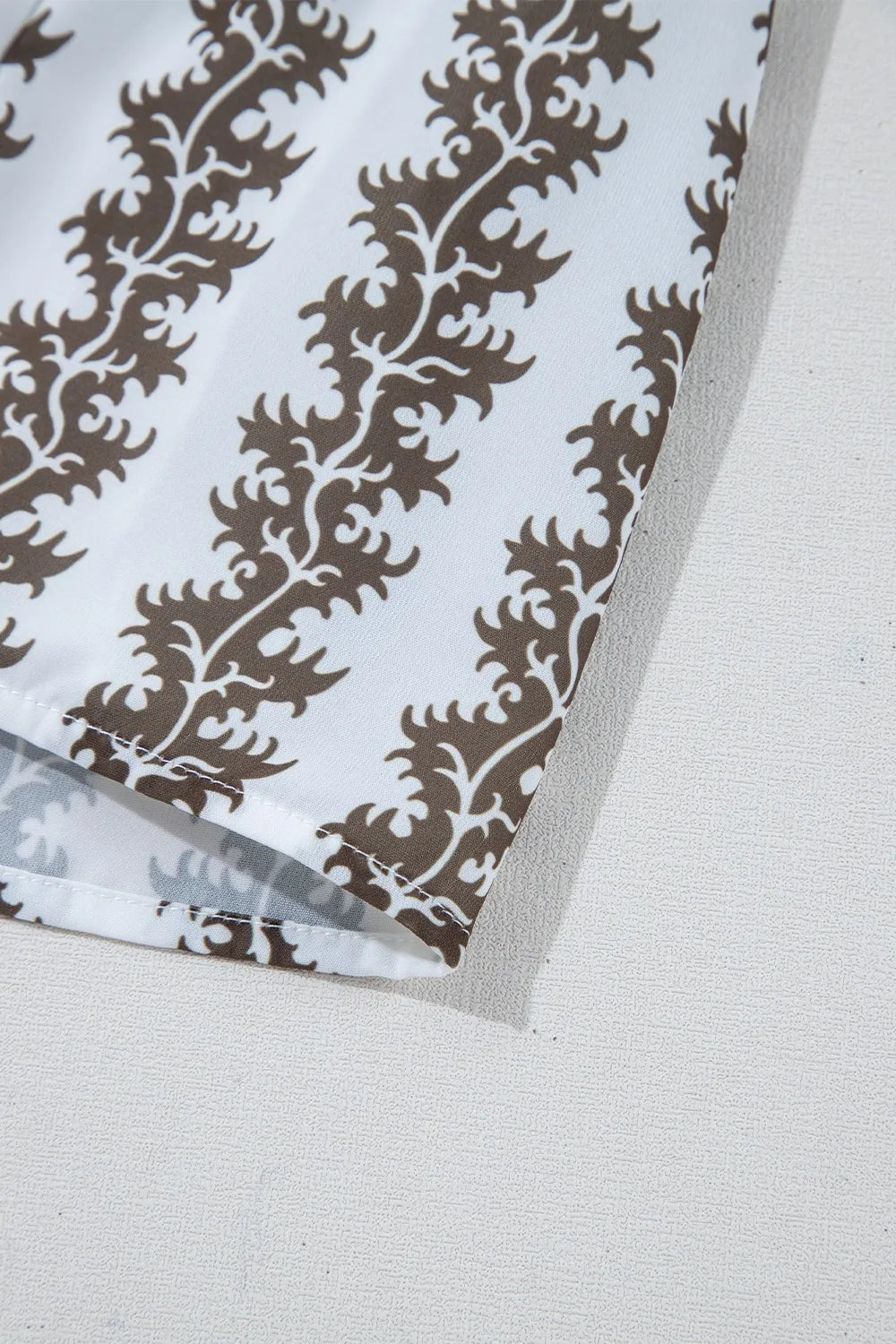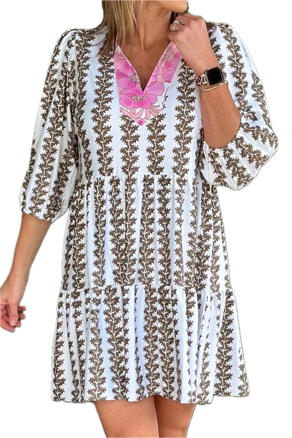 Women's Printed Notched Three Quarter Sleeve Mini Dress with Layered Look and Polyester Fabric for Everyday Chic Style