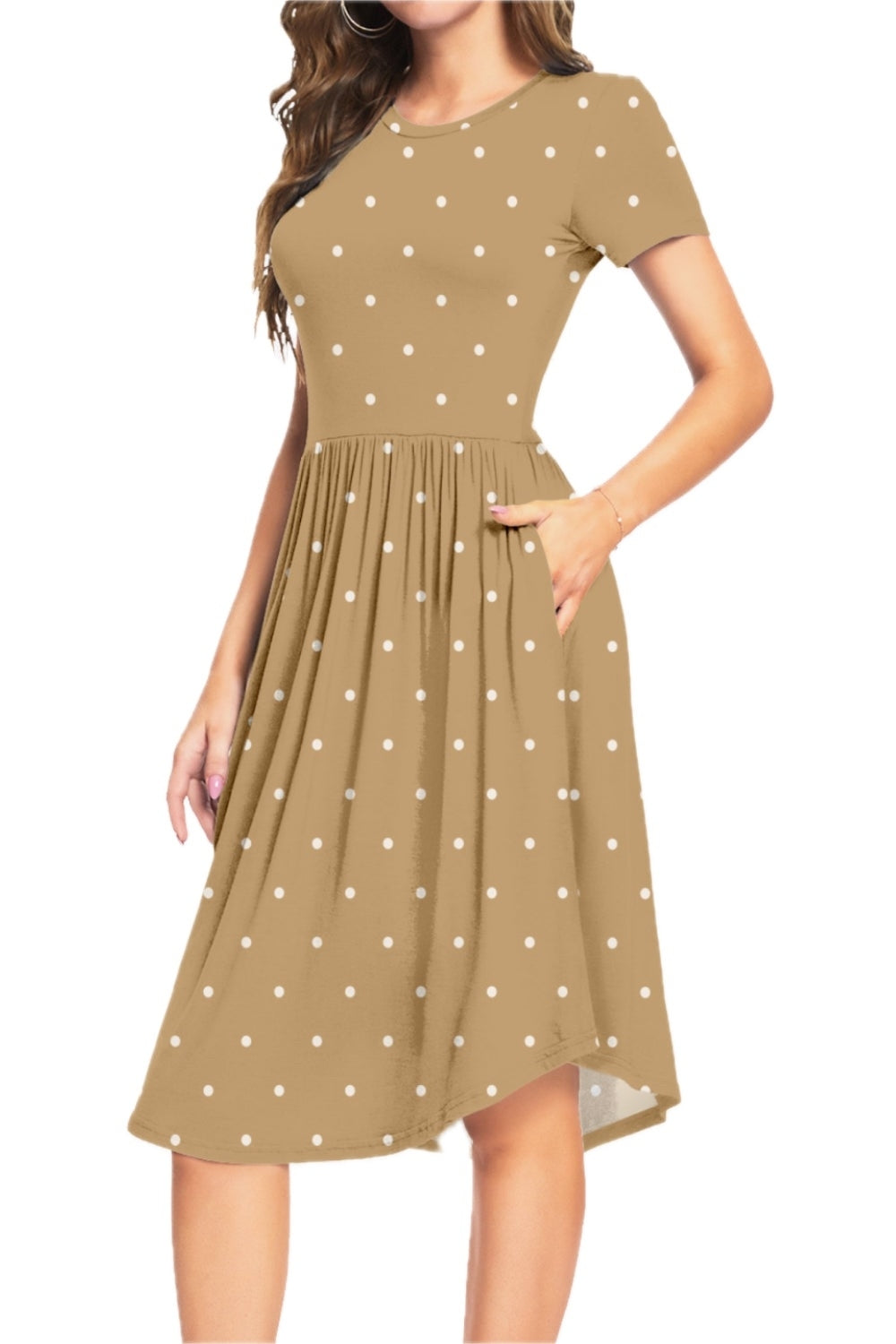 Women's Printed Round Neck Short Sleeve Dress with Pockets Chic A line Knee Length 95% Rayon and 5% Spandex Comfortable
