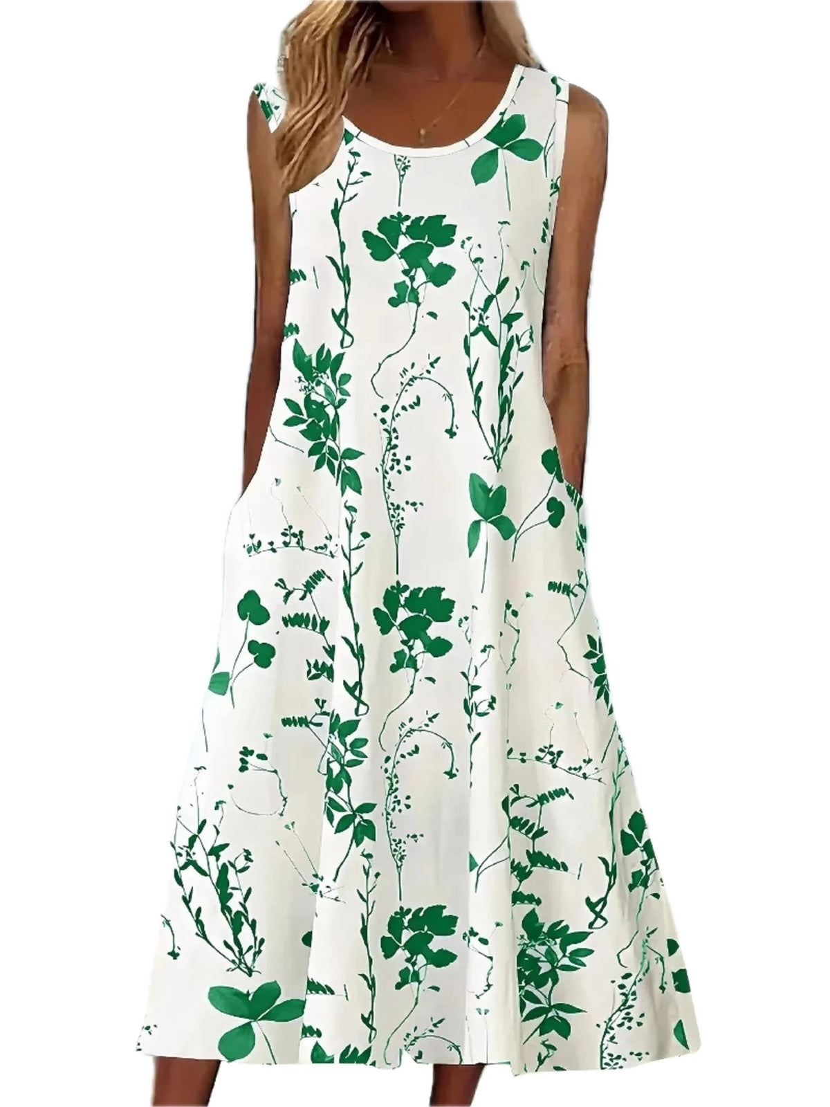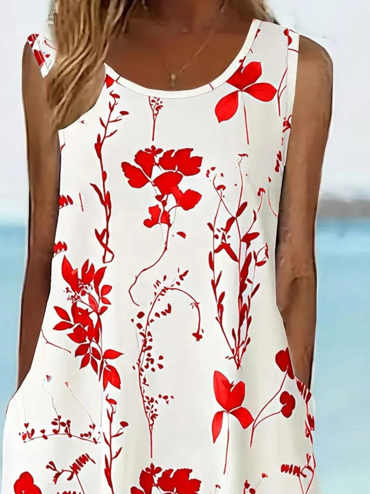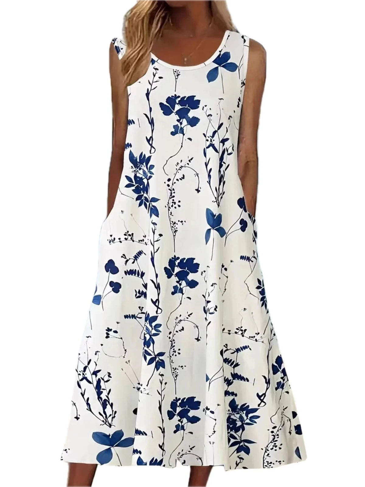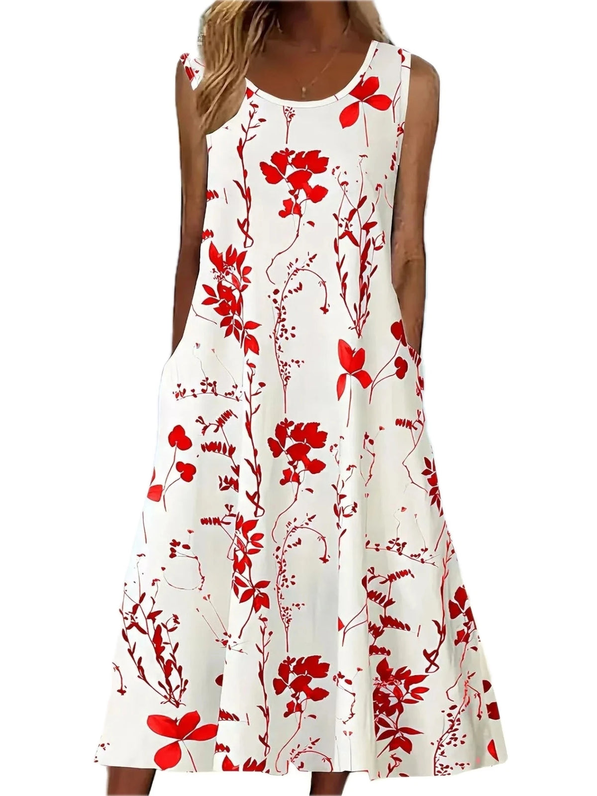Women's Printed Sleeveless Summer Midi Dress with Pockets 95% Polyester 5% Spandex Lightweight Flowy Silhouette