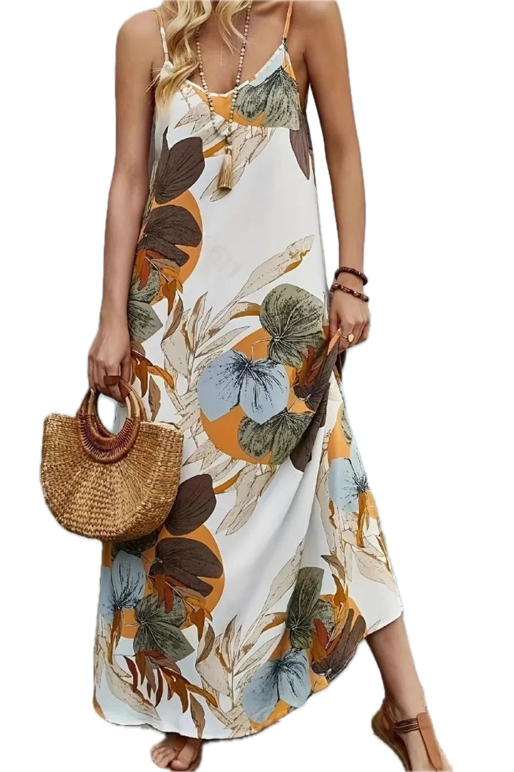 Women's Printed Spaghetti Strap Maxi Dress with Polyester % Fabric Lightweight Flowy Silhouette for Daytime Summer Wear