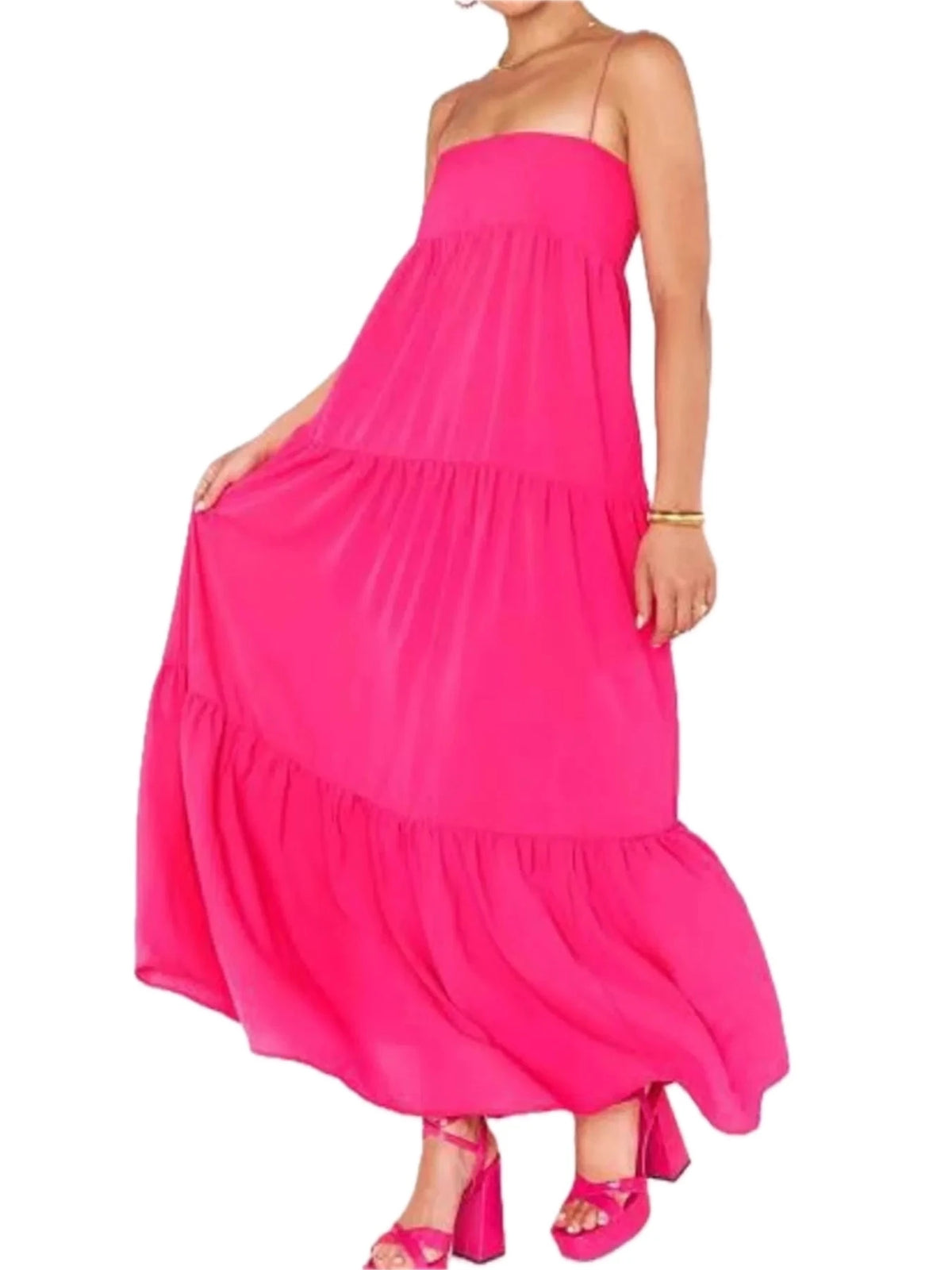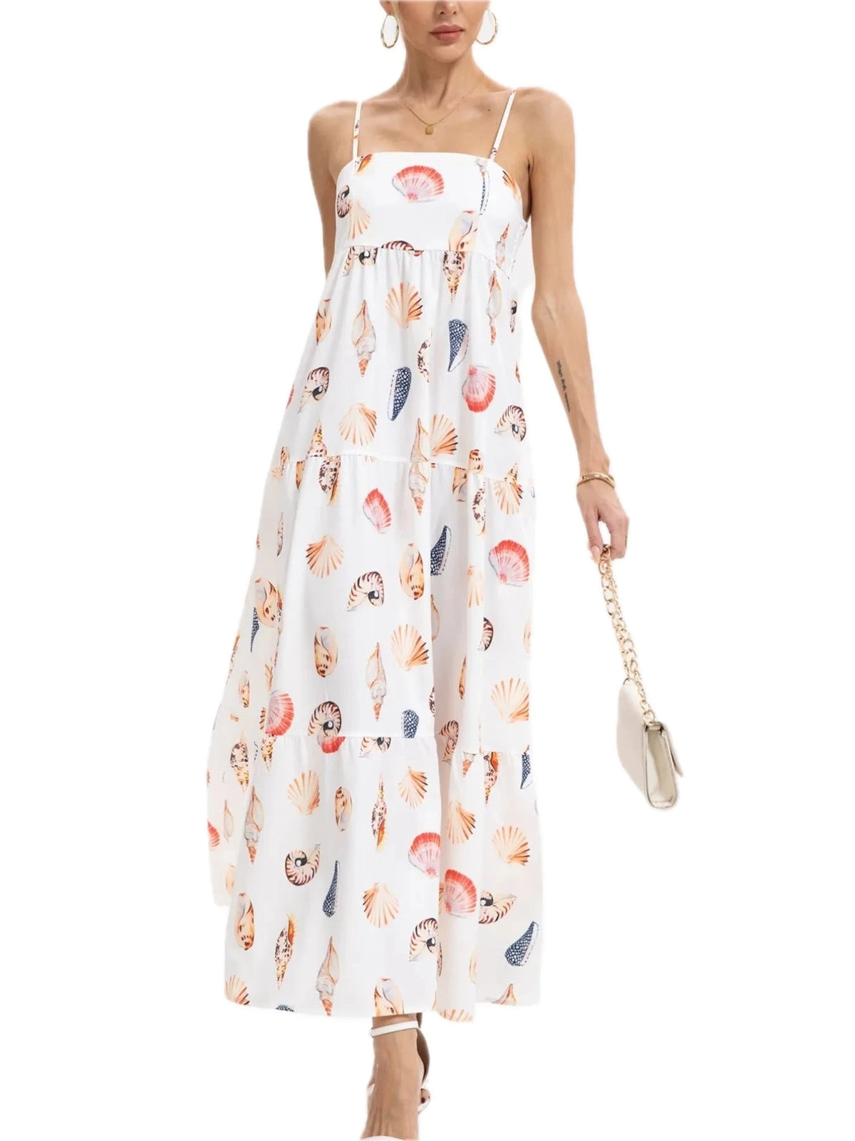 Women's Printed Square Neck Cami Maxi Dress with Tiered Stretch Bodice Not Lined 100% Polyester Fabric Comfort