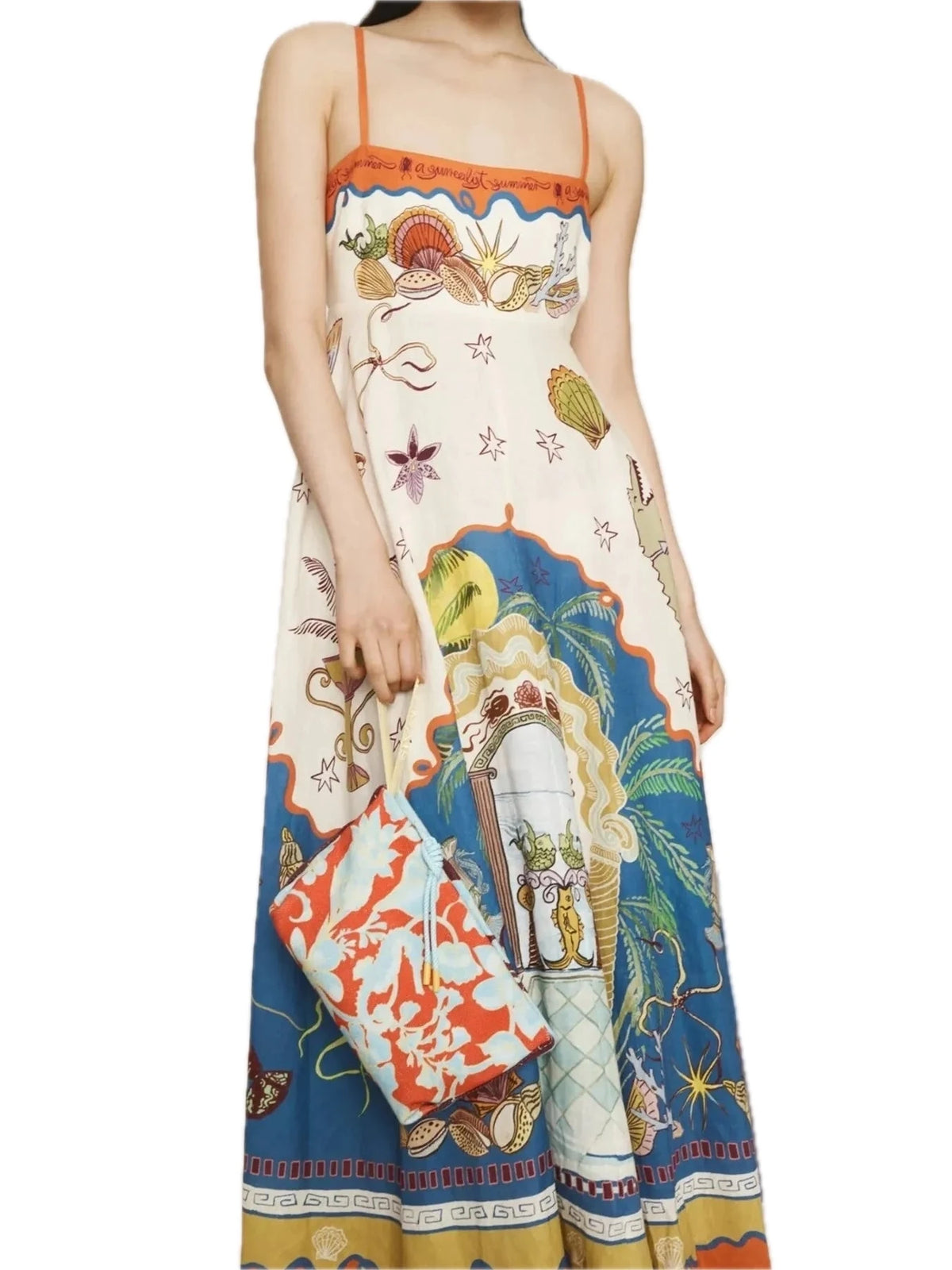Womens Printed Square Neck Maxi Cami Dress with Smocked Detail 100% Polyester Fabric Lightweight Flowing Summer Look