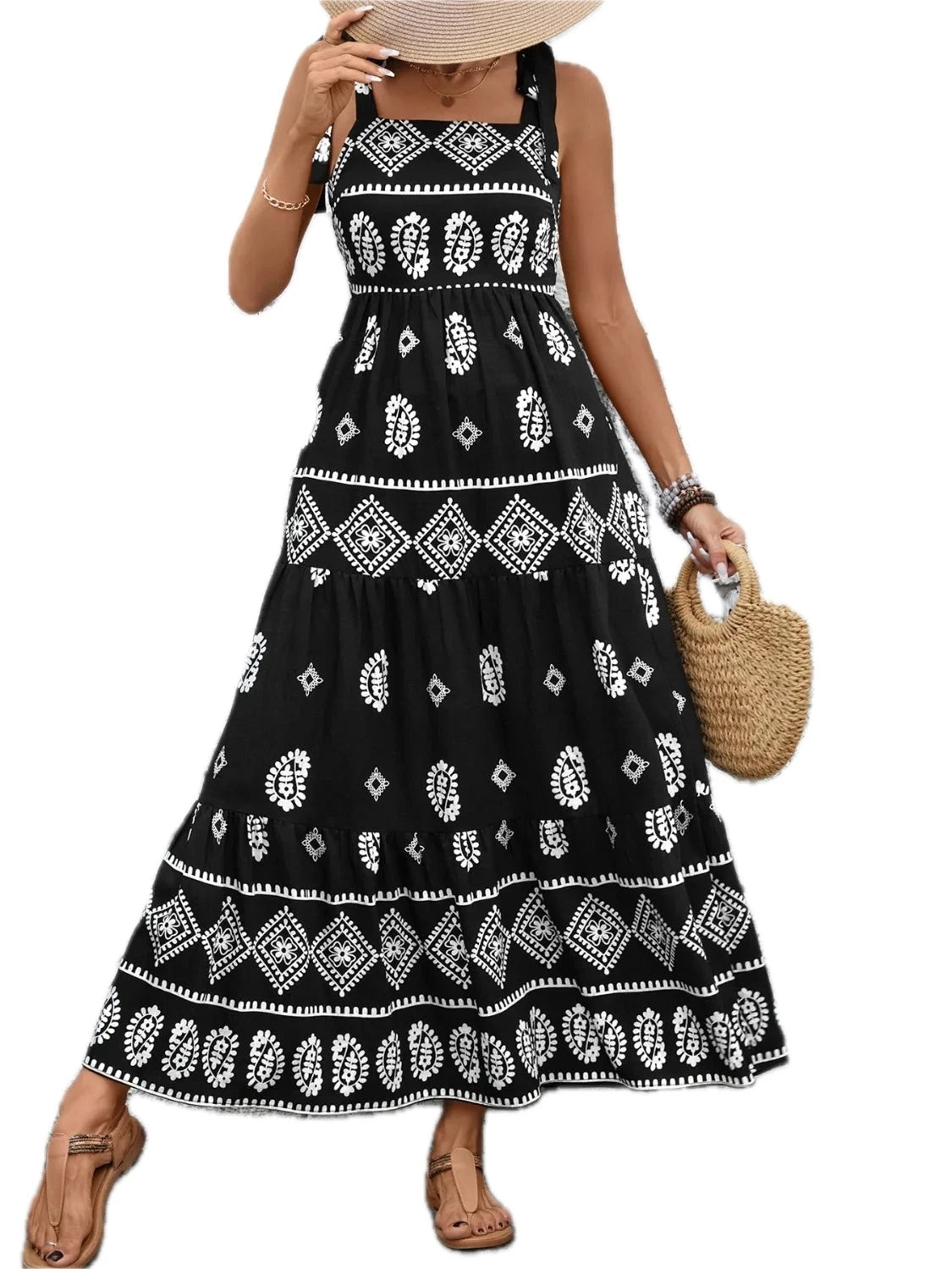 Women's Printed Square Neck Maxi Cami Dress 88% viscose 12% polyamide Lightweight Silky Comfort for Summer Machine Wash Cold