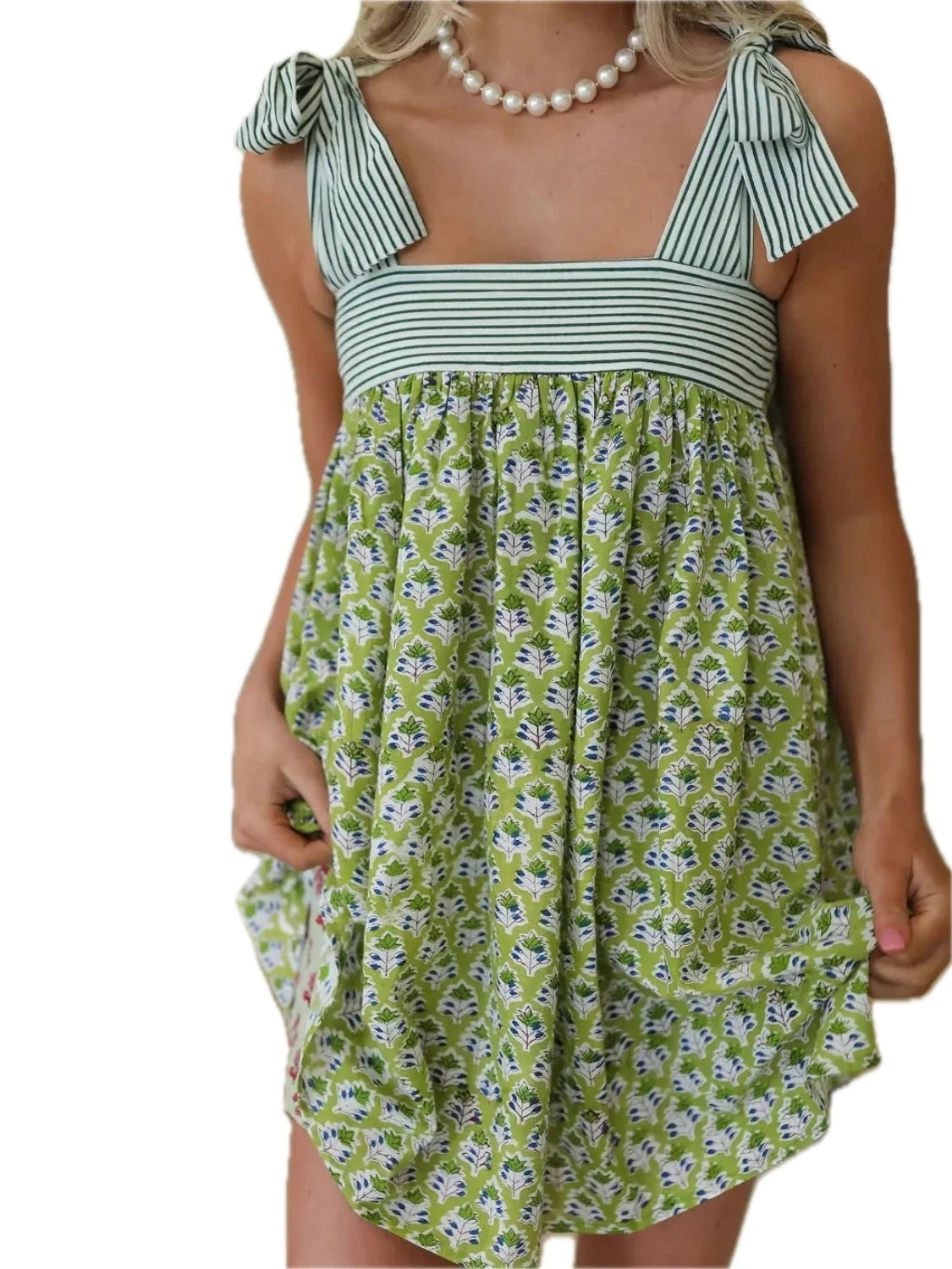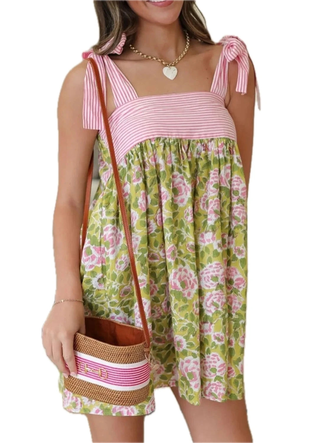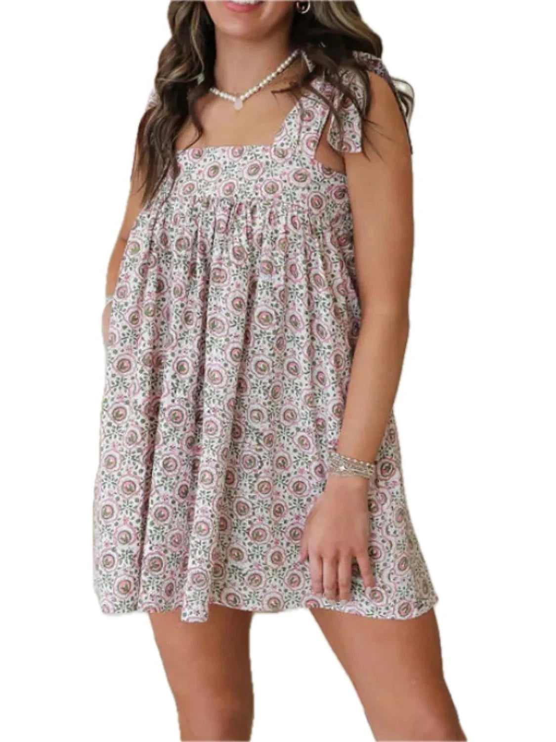 Women's Printed Square Neck Tie Shoulder Mini Dress 100% Polyester Lightweight Fabric for Summer Comfort Size S M L XL