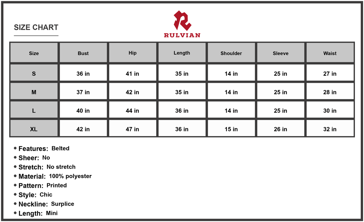 XL: shoulder 15 in, bust 42 in, waist 32 in, hip 47 in, sleeve 26 in, length 36 in