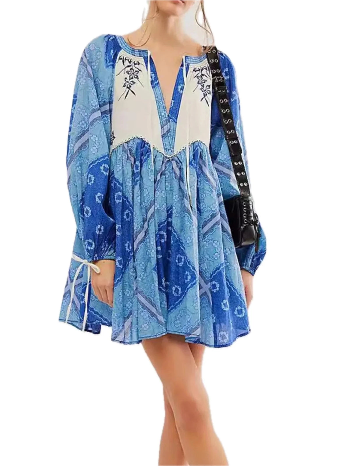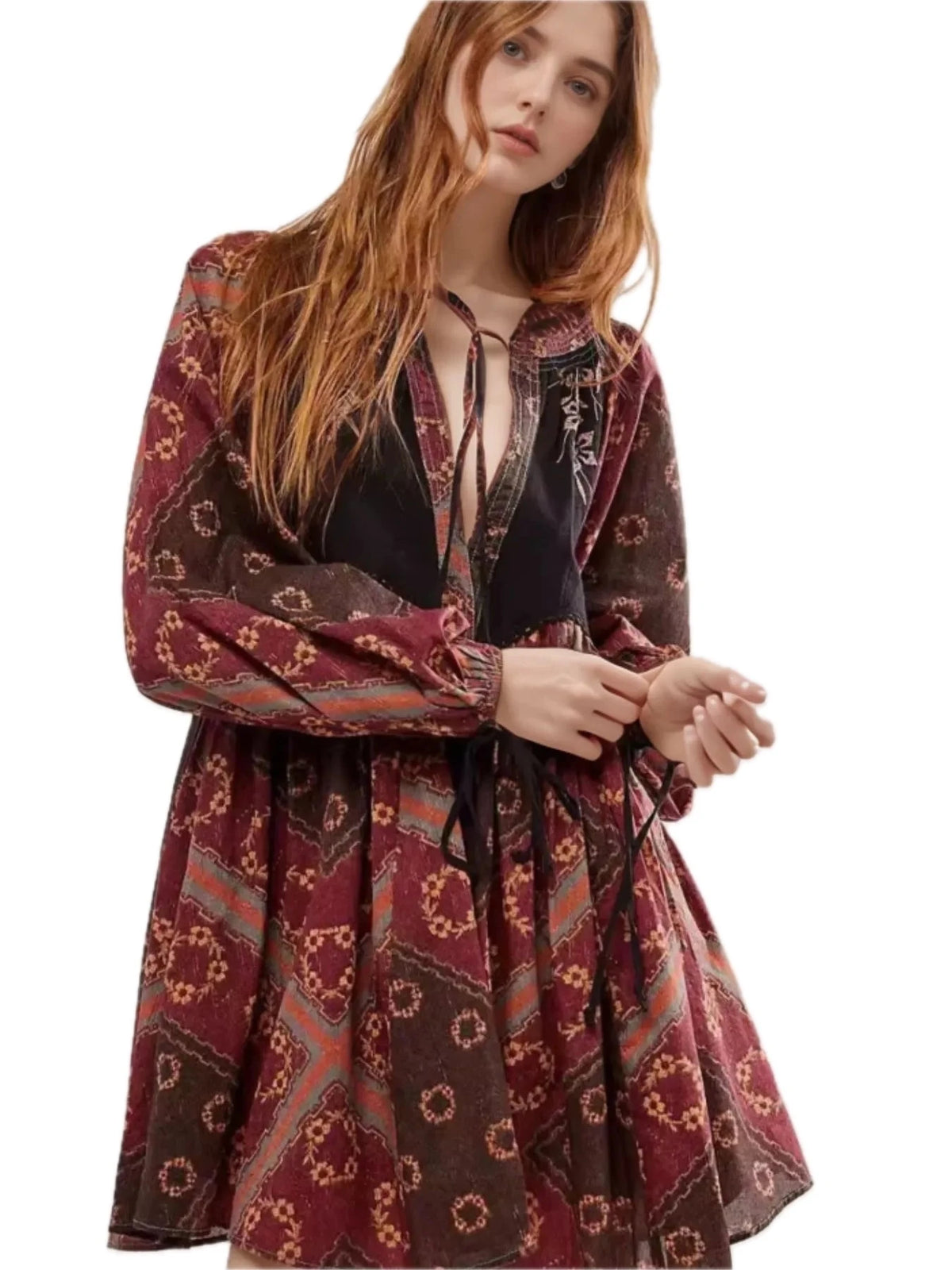 Women's Printed Tie Neck Long Sleeve Dress with Classic Silhouette 100% Polyester Fabric for Elegant Everyday Wear