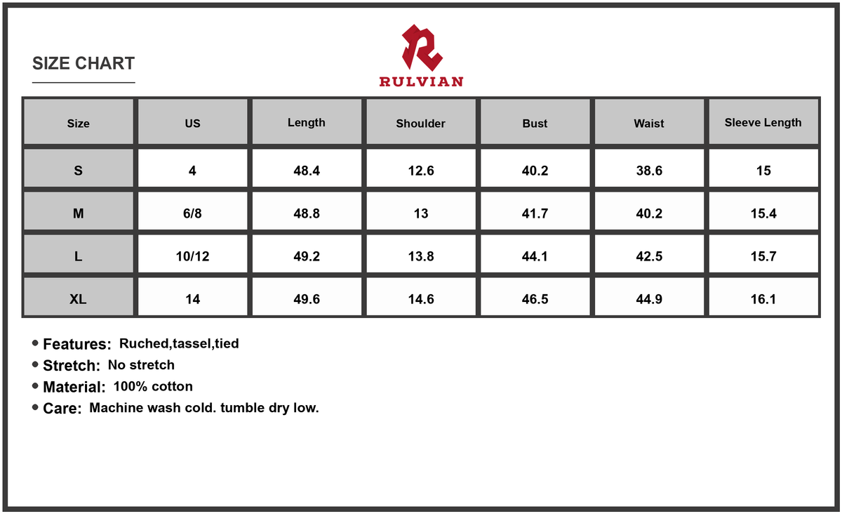 Size | US | Length | Shoulder | Bust | Waist | Sleeve Length |
