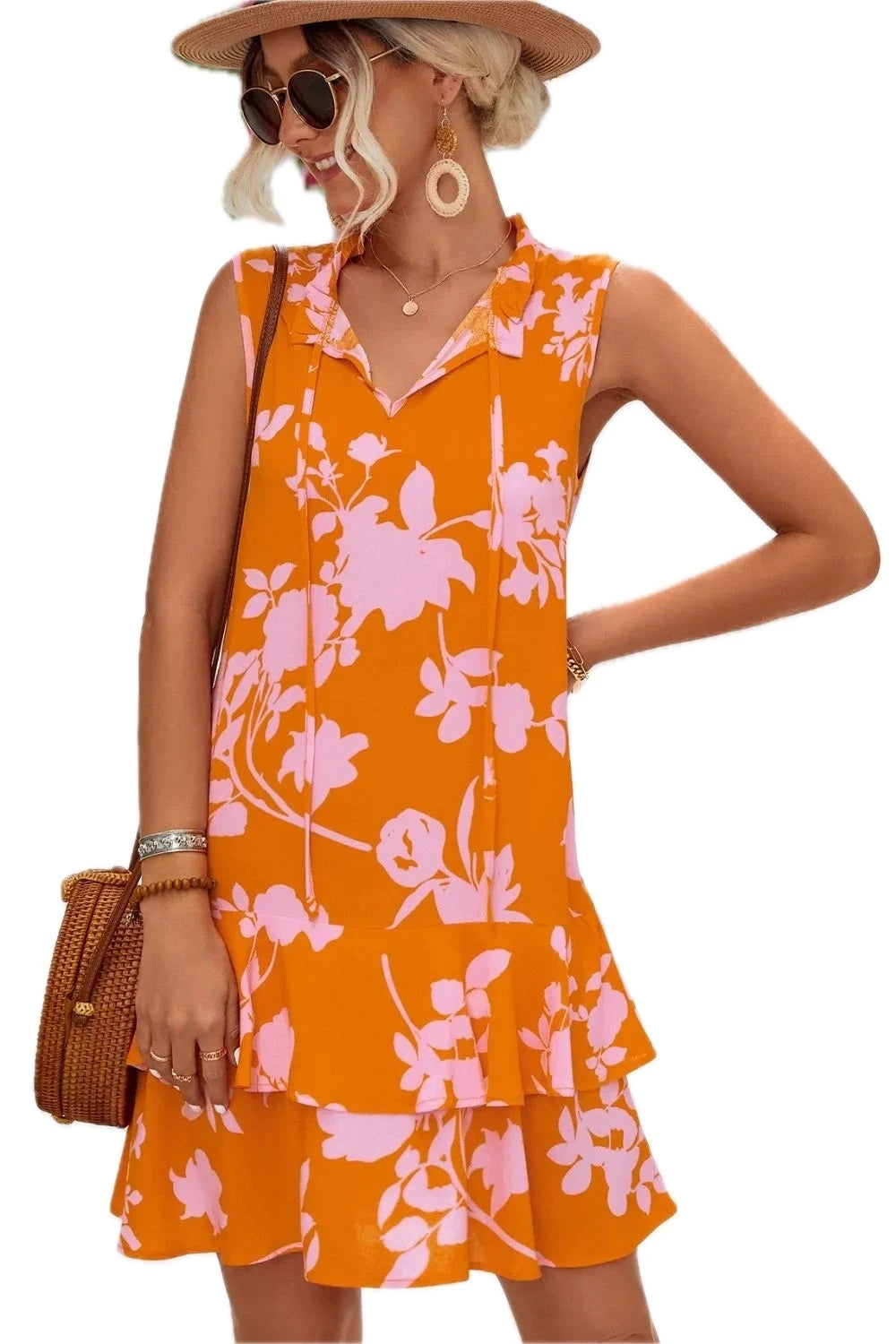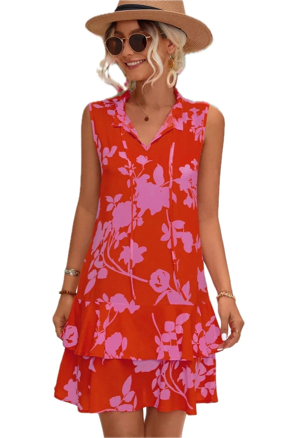 Women's Printed Tie Neck Sleeveless Dress with Elegant Pattern and Comfortable Fit 95% polyester 5% spandex