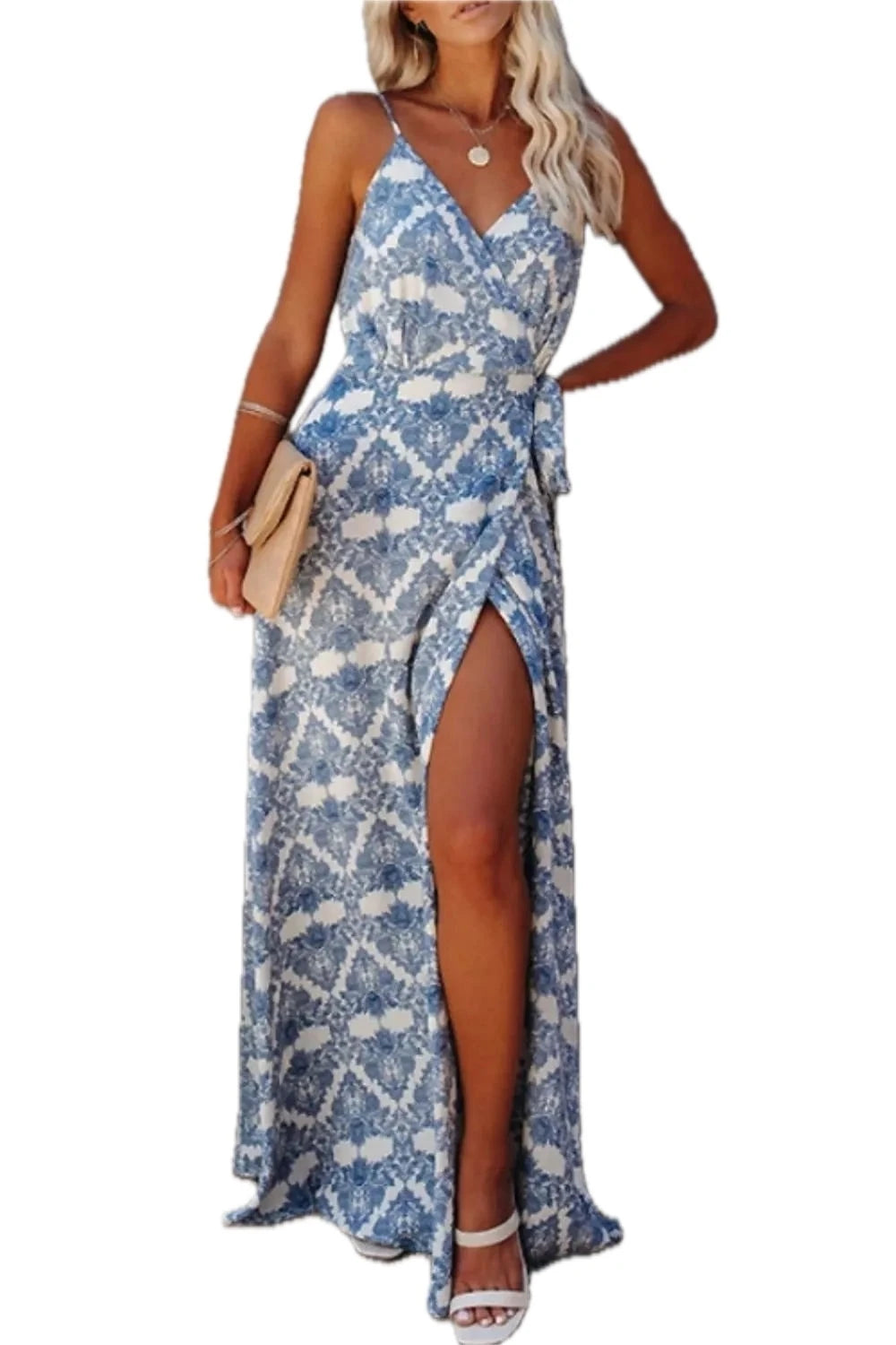 Women's Printed Tied Maxi Cami Dress with Sheer Detail 65% Polyester 35% Cotton Fabric for Summer Wear Casual Beach