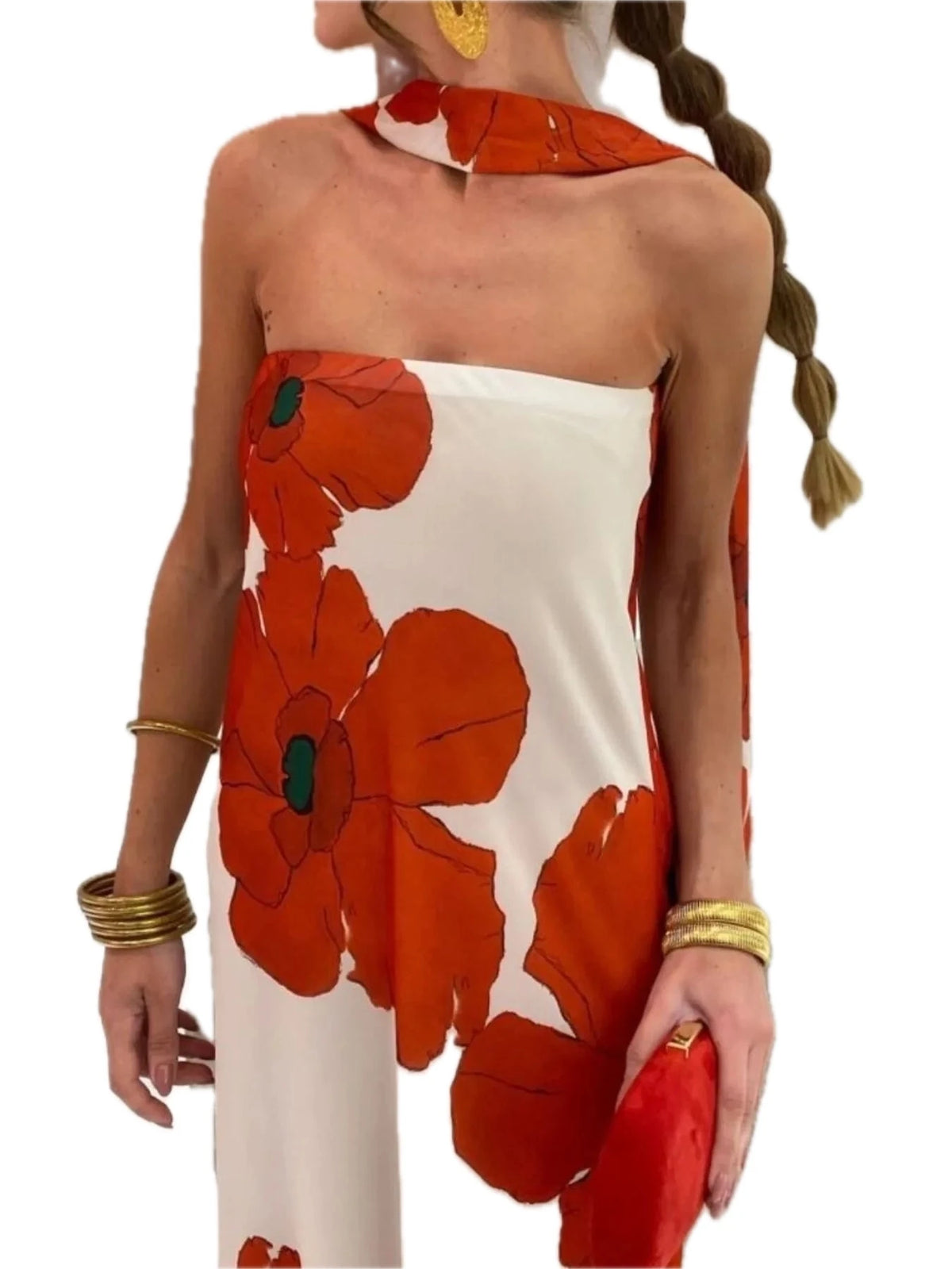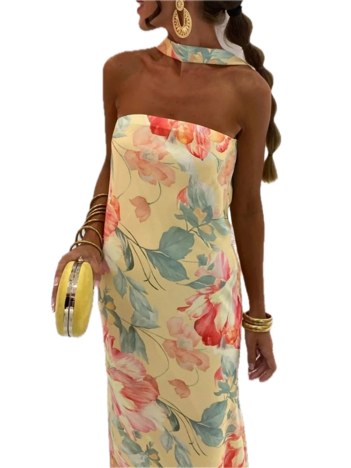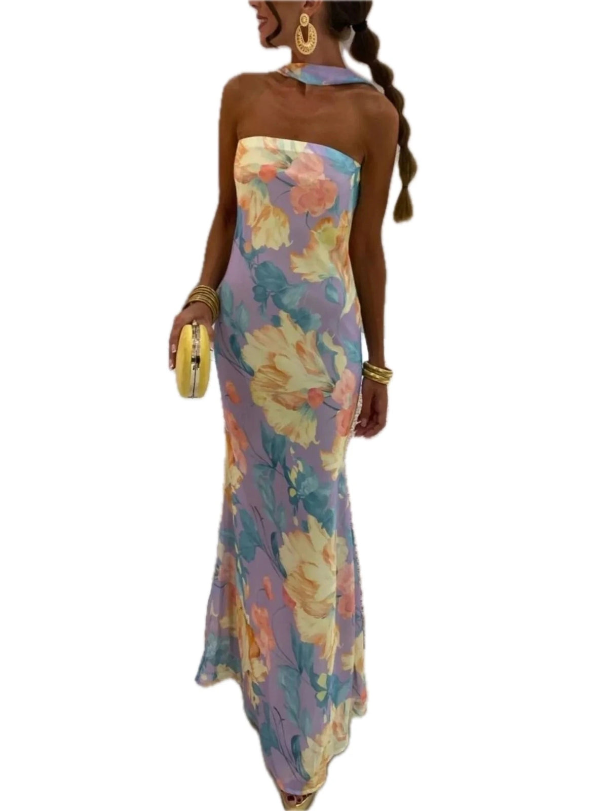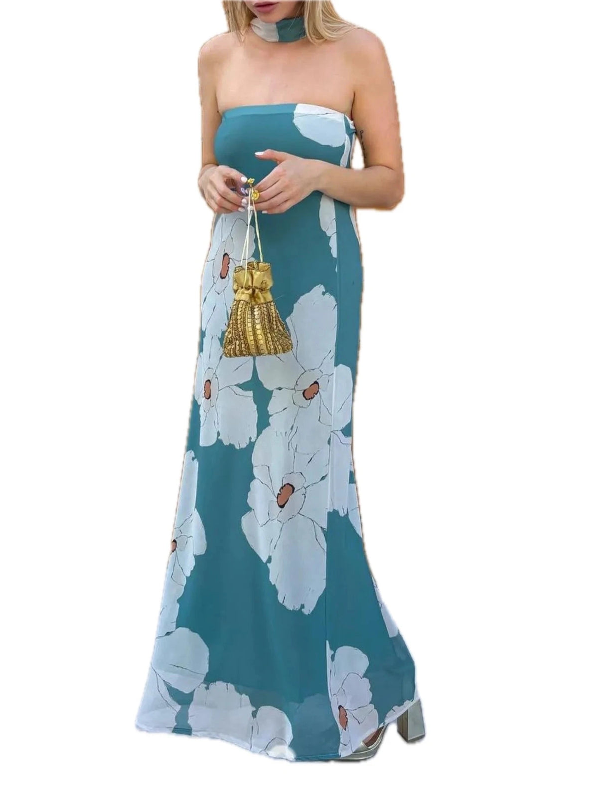 Women's Printed Tube Maxi Dress 100% Polyester Comfortable Sleeveless Floor Length Casual Beachwear Summer Vacation