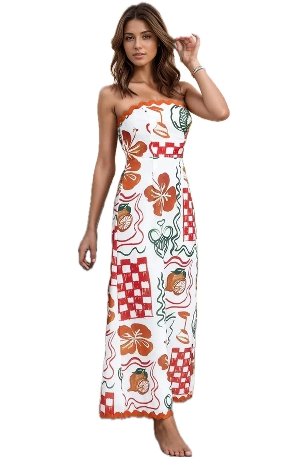 Women's Printed Tube Maxi Dress 100% Polyester Fabric Opaque Floor Length Silhouette for Everyday Comfort Summer Party