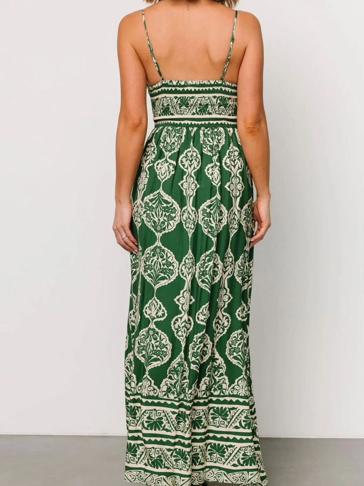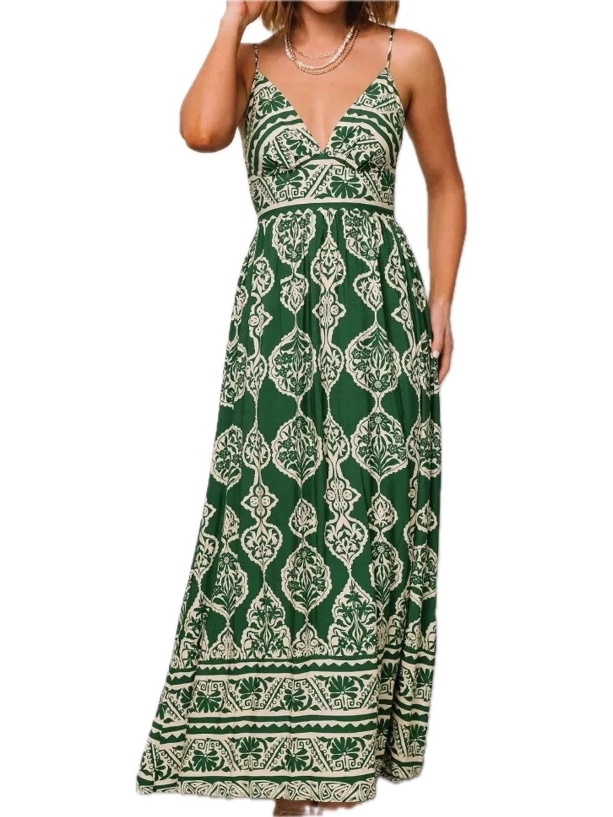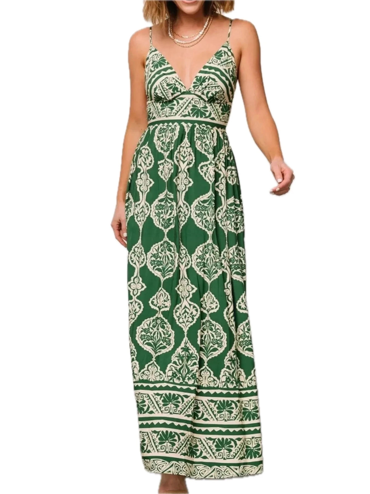 Women's Printed V Neck Maxi Cami Dress with Flowing Silhouette Polyester % Fabric for Everyday Wear Easy Care Daily