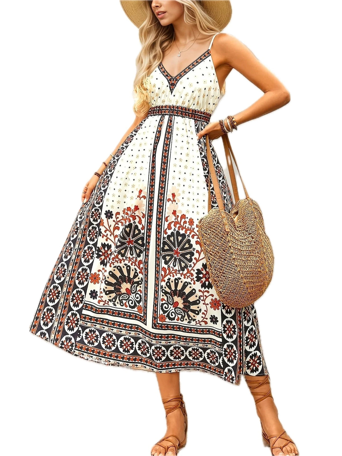 Men's Printed V-Neck Midi Cami Dress Backless Stretch Bodice Ninety Five Percent Polyester Five Percent Spandex