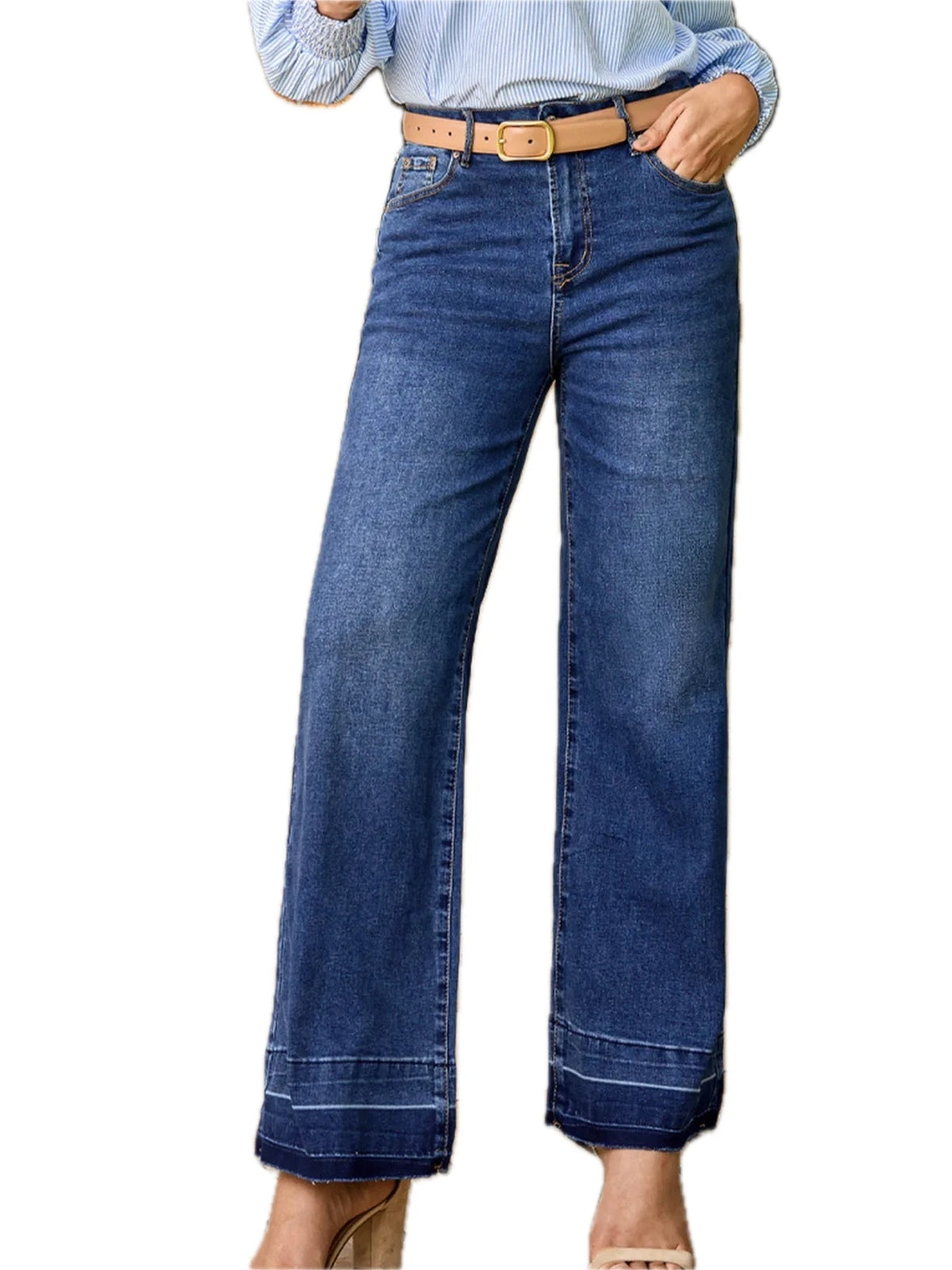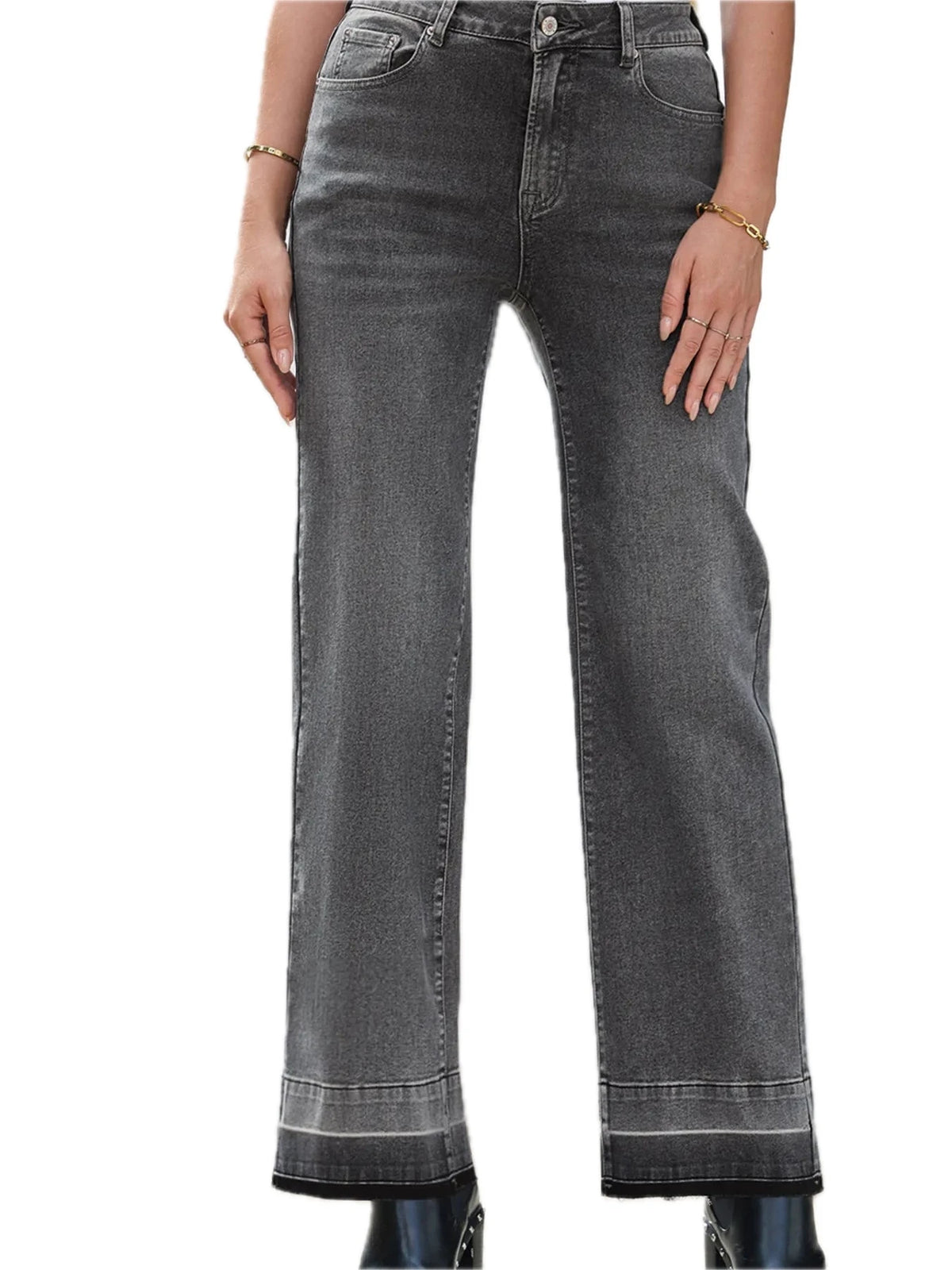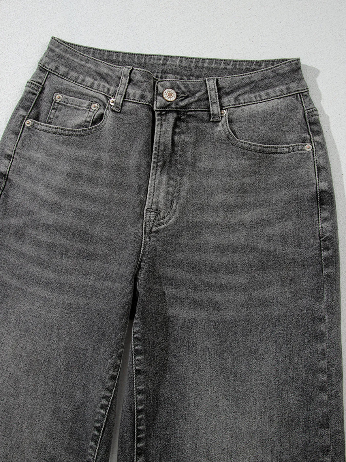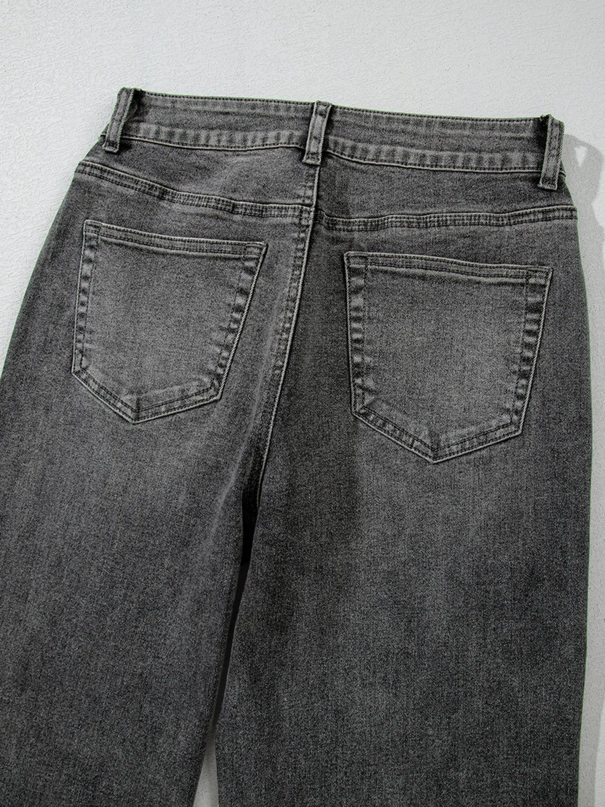 Women High Rise Straight Leg Loose Fit Jeans with Raw Hem and Unique Cuff Details Durable Denim for Casual Everyday Wear