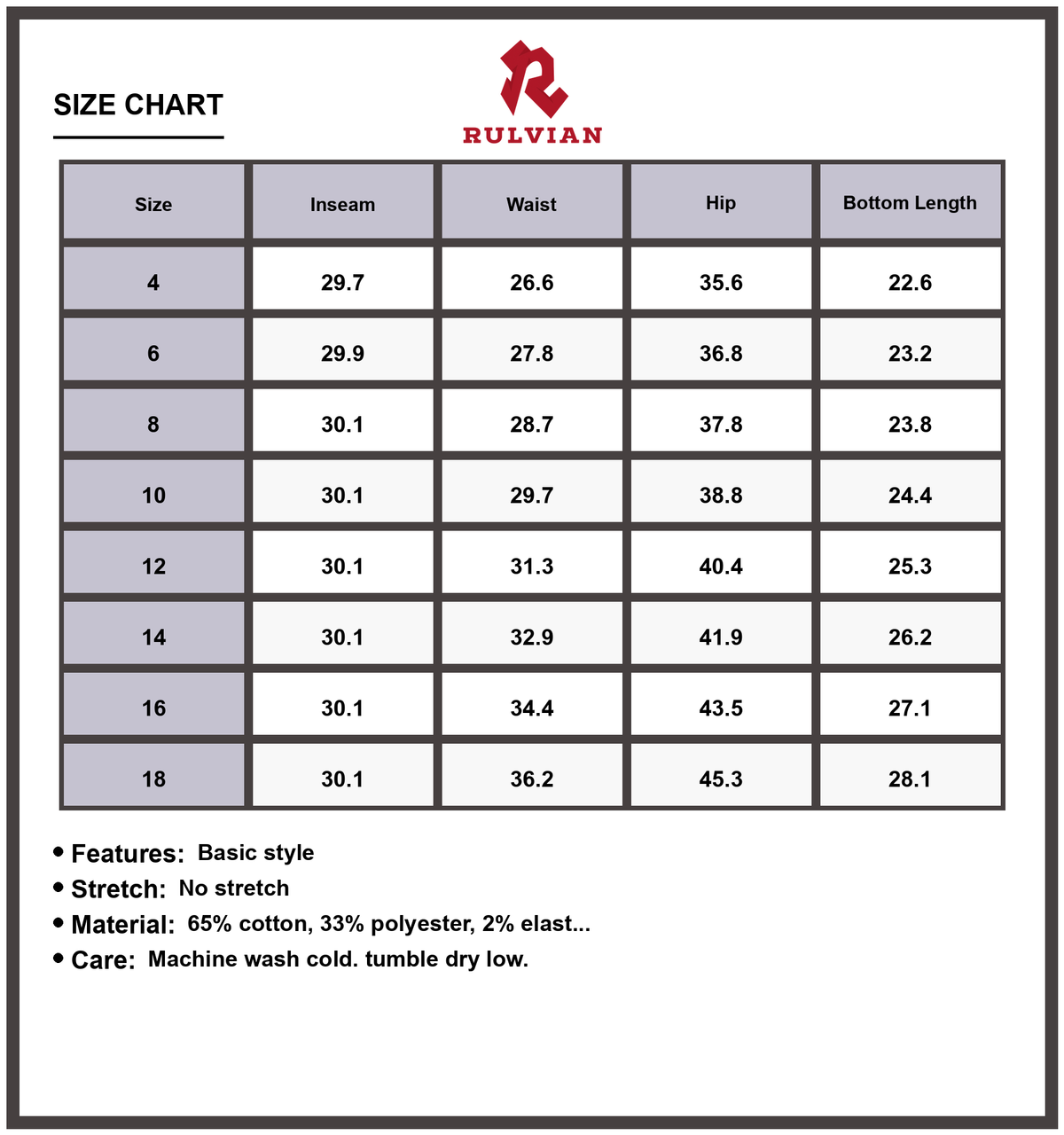 - Material composition:65% cotton, 33% polyester, 2% elastane