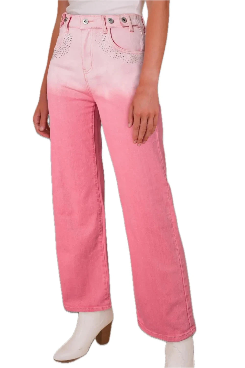 Womens Rhinestone Gradient Straight Leg Jeans High Quality Durable Casual Everyday Denim Fashion for versatile wear