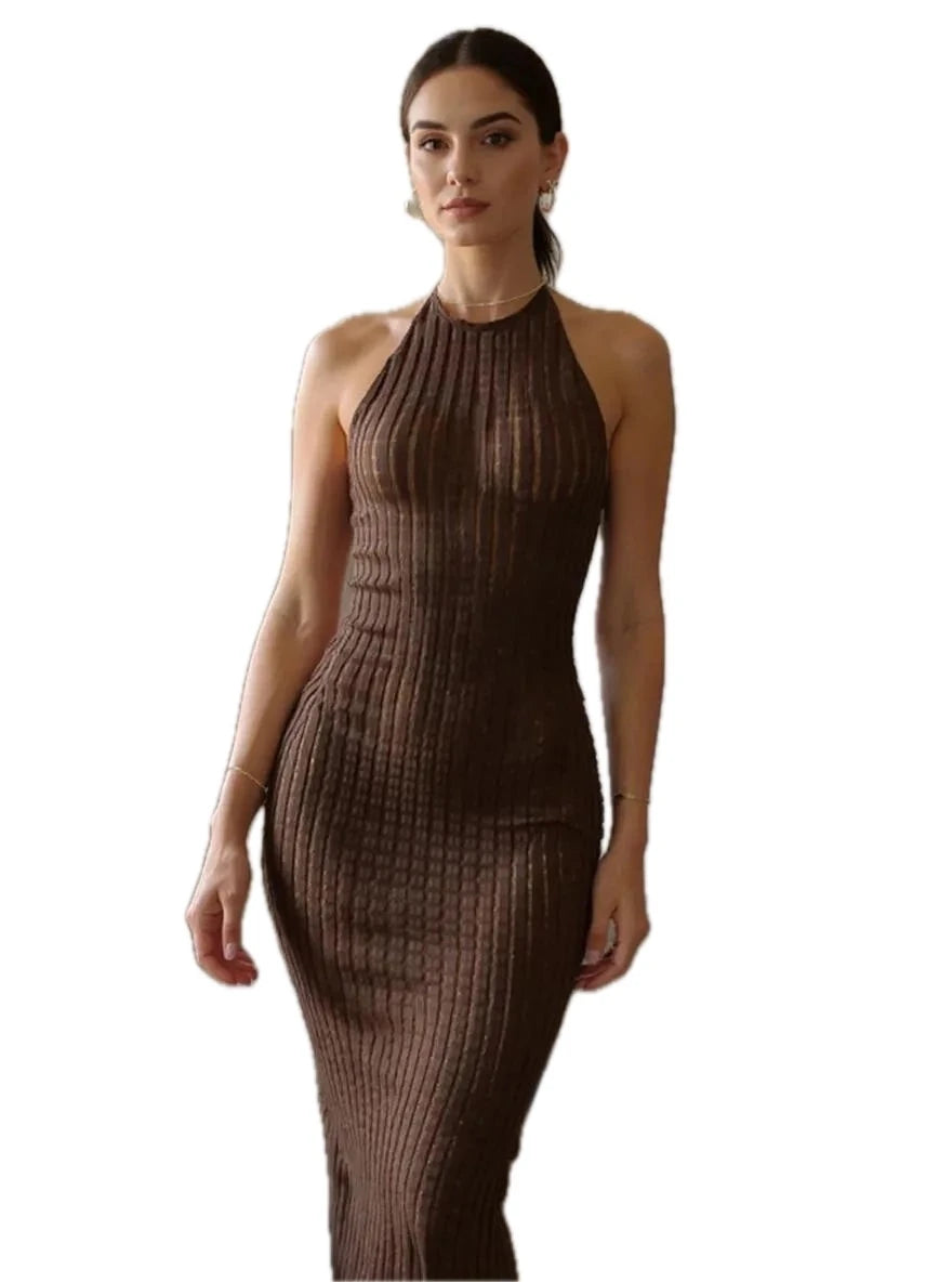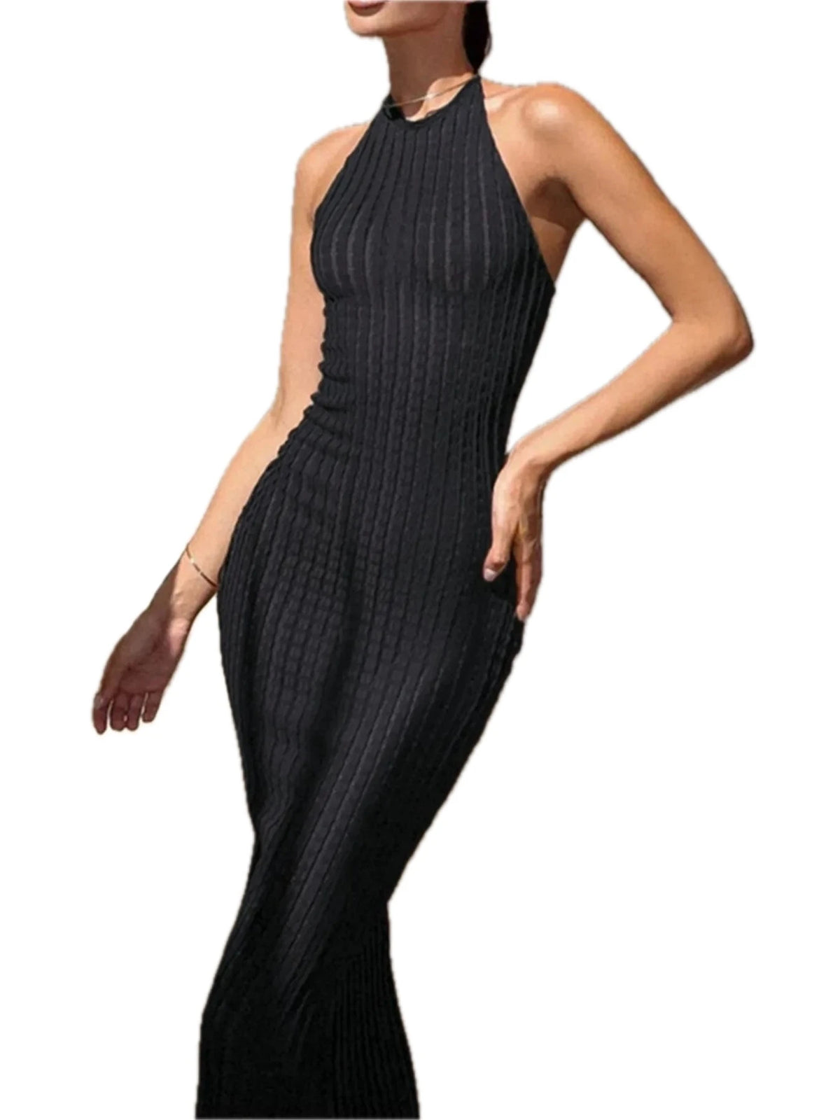 Women's Ribbed Halter Neck Bodycon Maxi Dress 95% Polyester 5% Spandex Figure Flattering Silhouette Glamorous Occasion