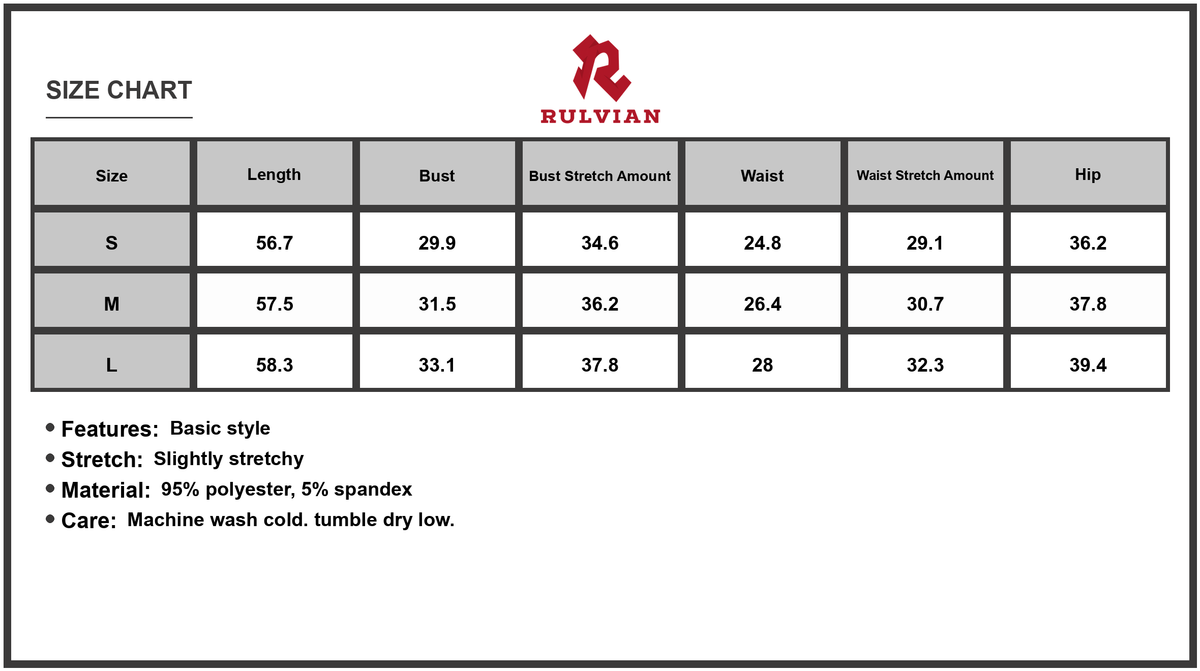 Size | Length | Bust | Bust Stretch Amount | Waist | Waist Stretch Amount | Hip |