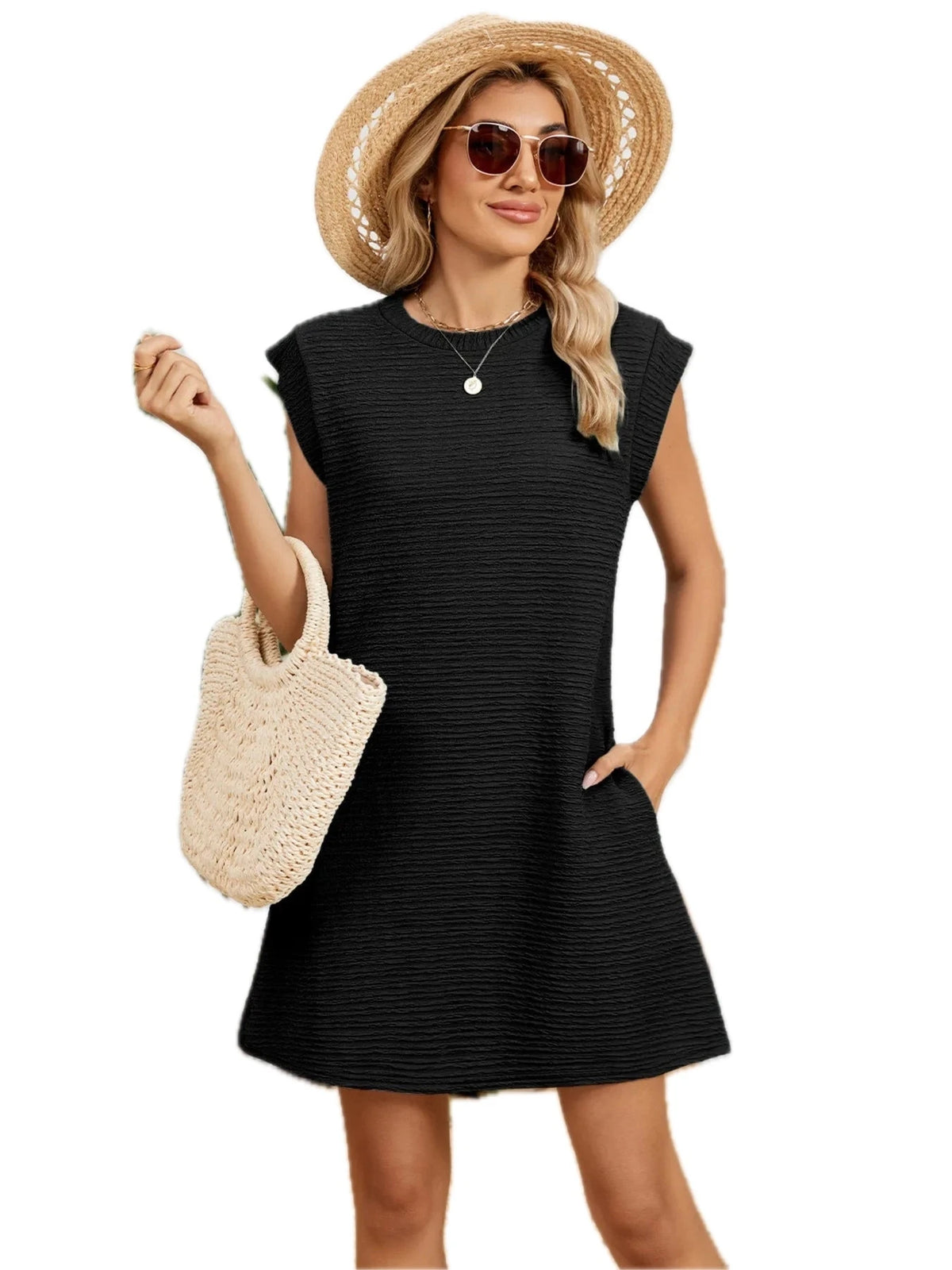 Women's Round Neck Cap Sleeve Mini Dress 60% rayon 30% polyester 5% spandex Lightweight Everyday Wear Casual Style