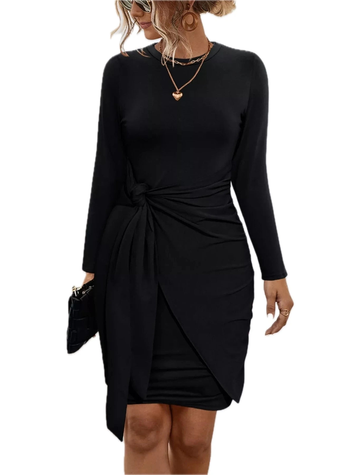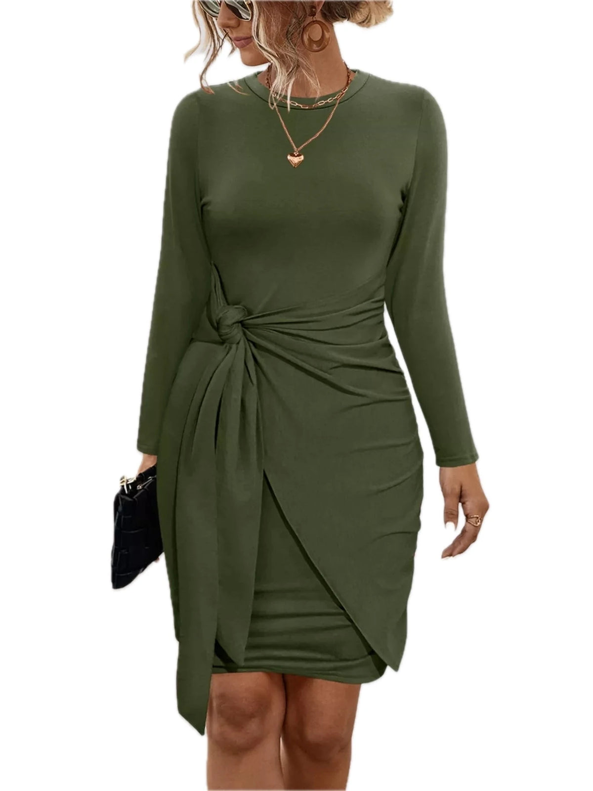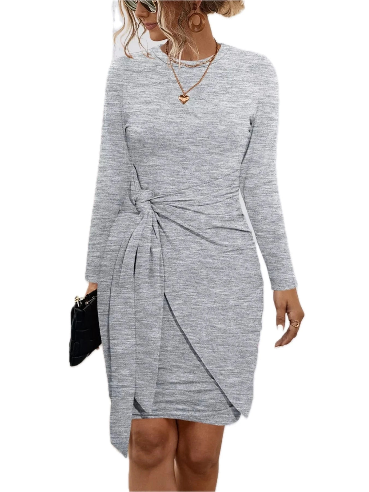 Women's Round Neck Long Sleeve Bodycon Dress 95% Polyester and 5% Spandex Blend for Elegant Day to Night Wear