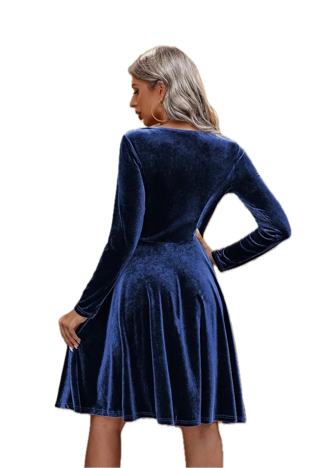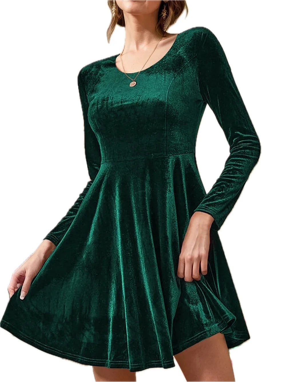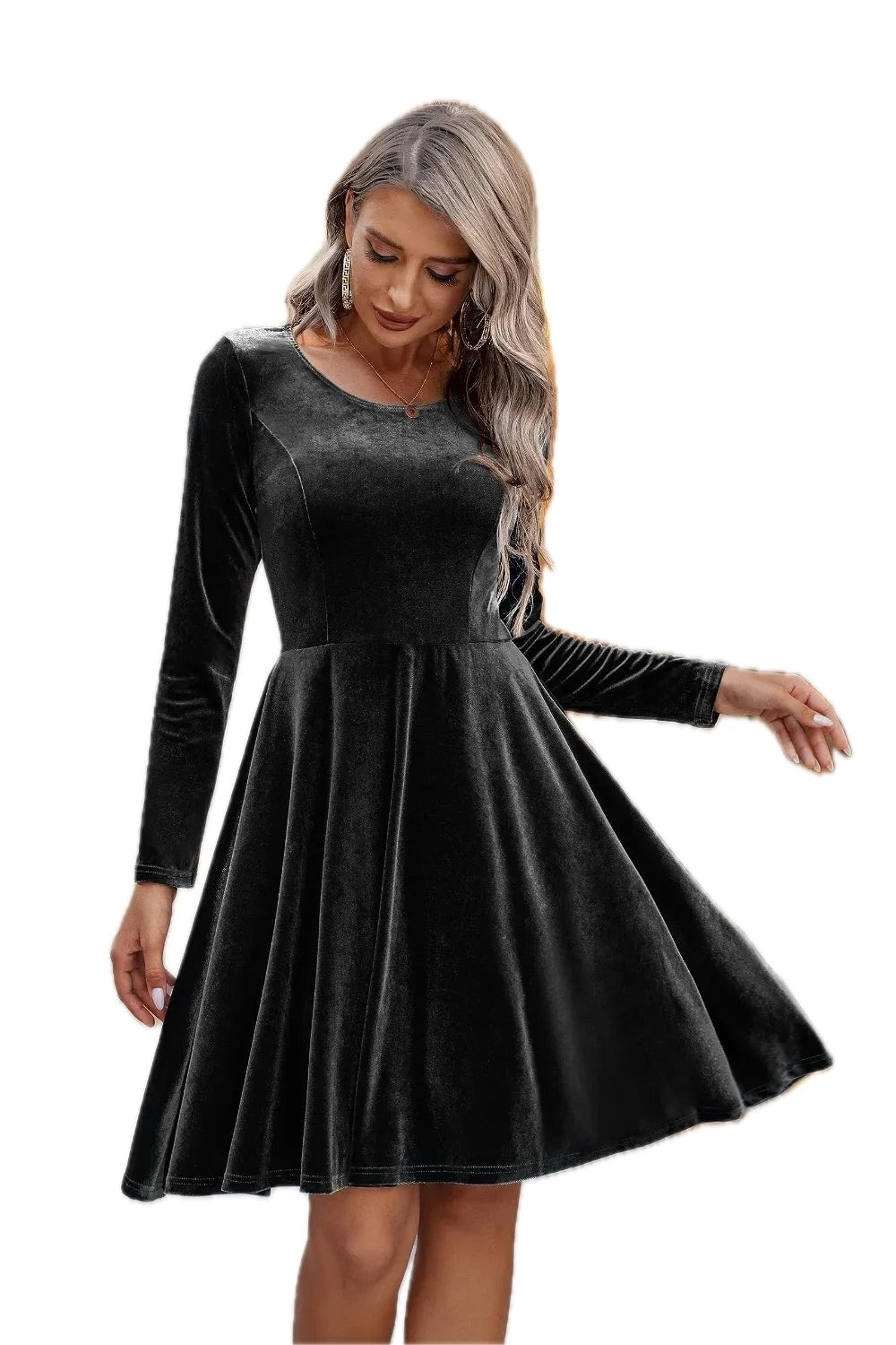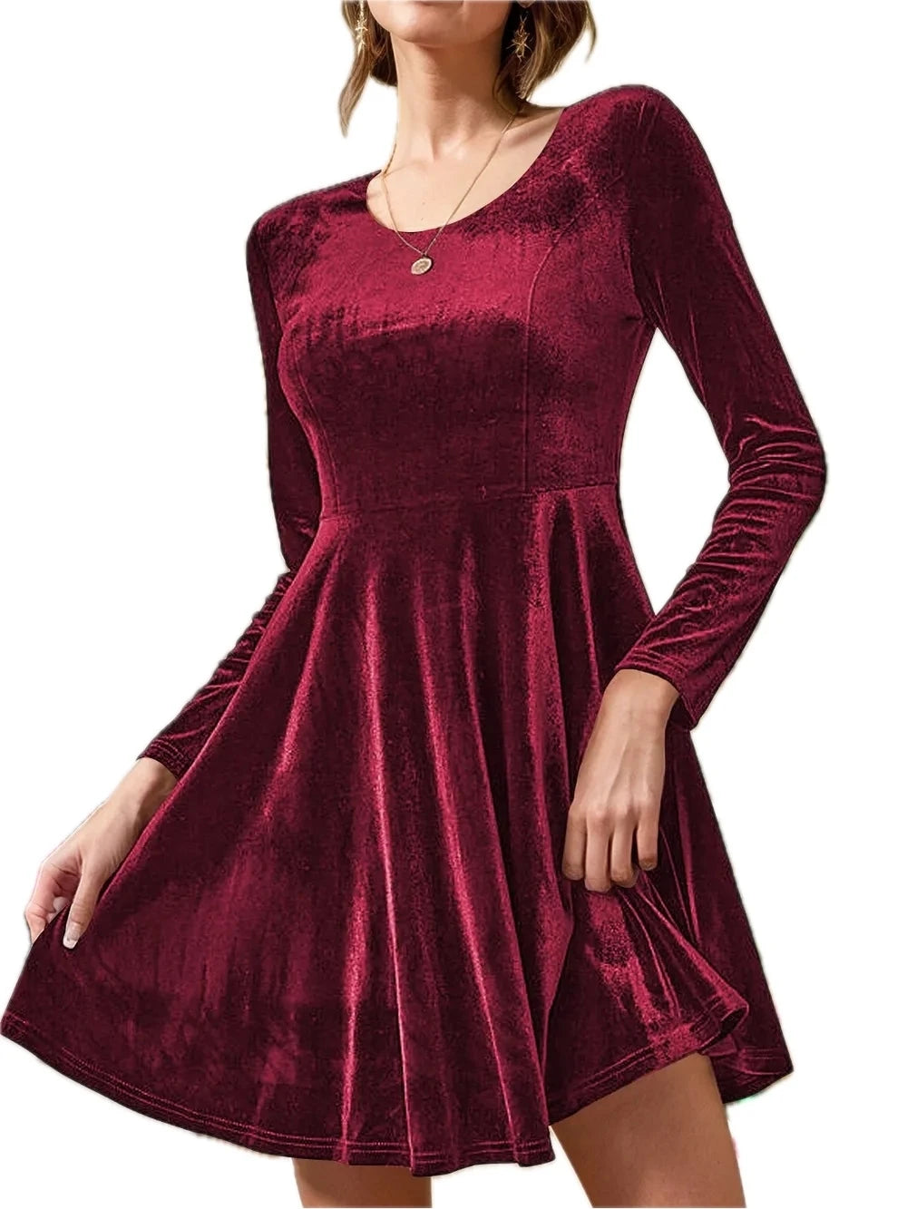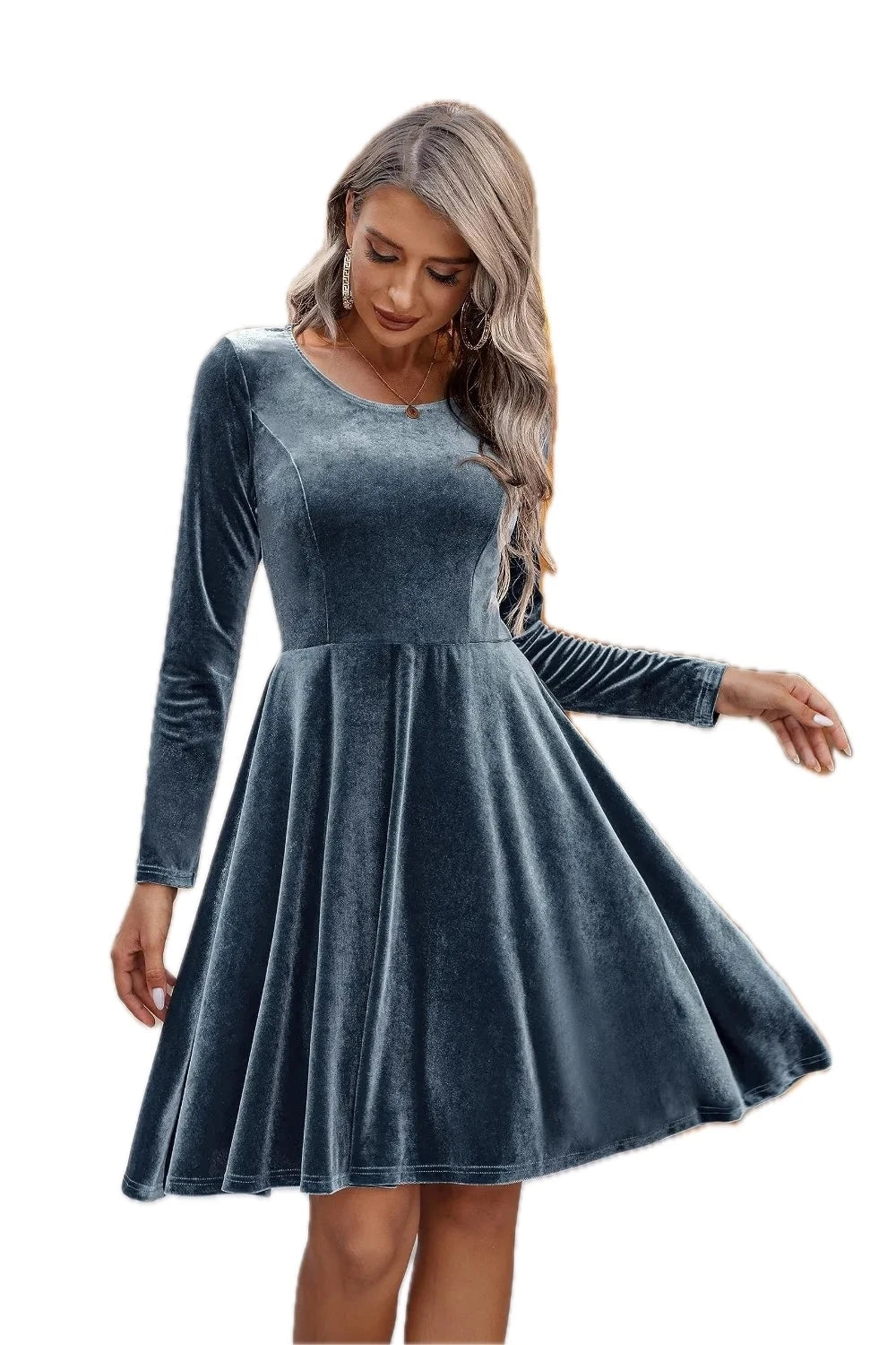 Women's Round Neck Long Sleeve Knee Length Dress in 100% Polyester for Comfortable Everyday Wear Classic Silhouette