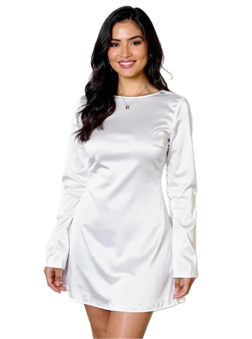 Women's Round Neck Long Sleeve Mini Dress Ninety four percent Polyester and six percent Elastane for everyday wear and comfortable fit