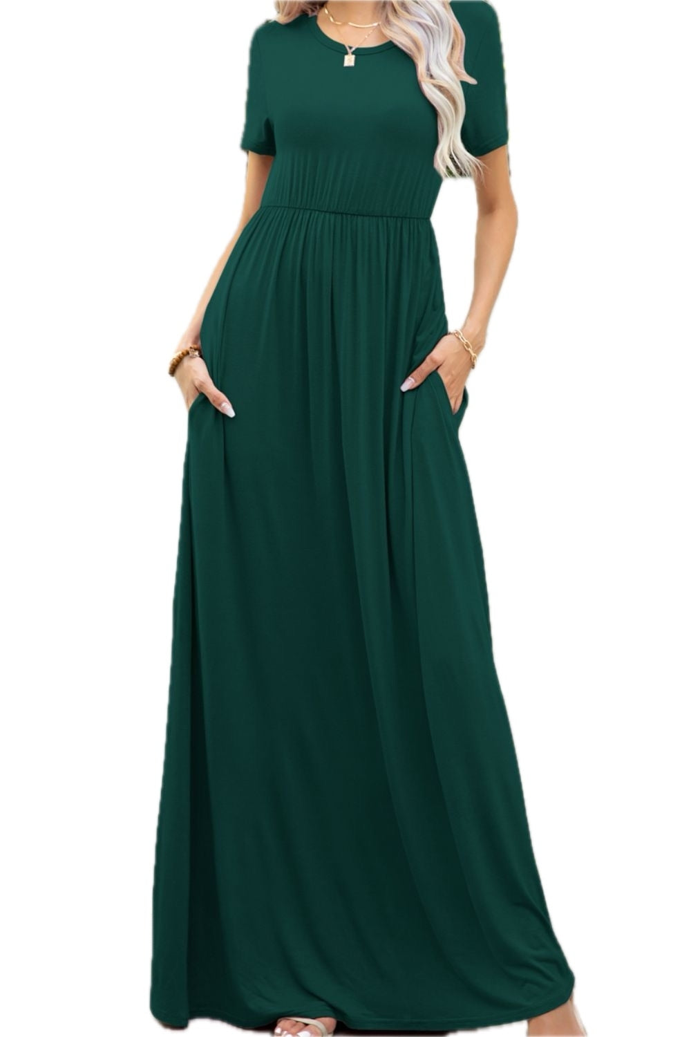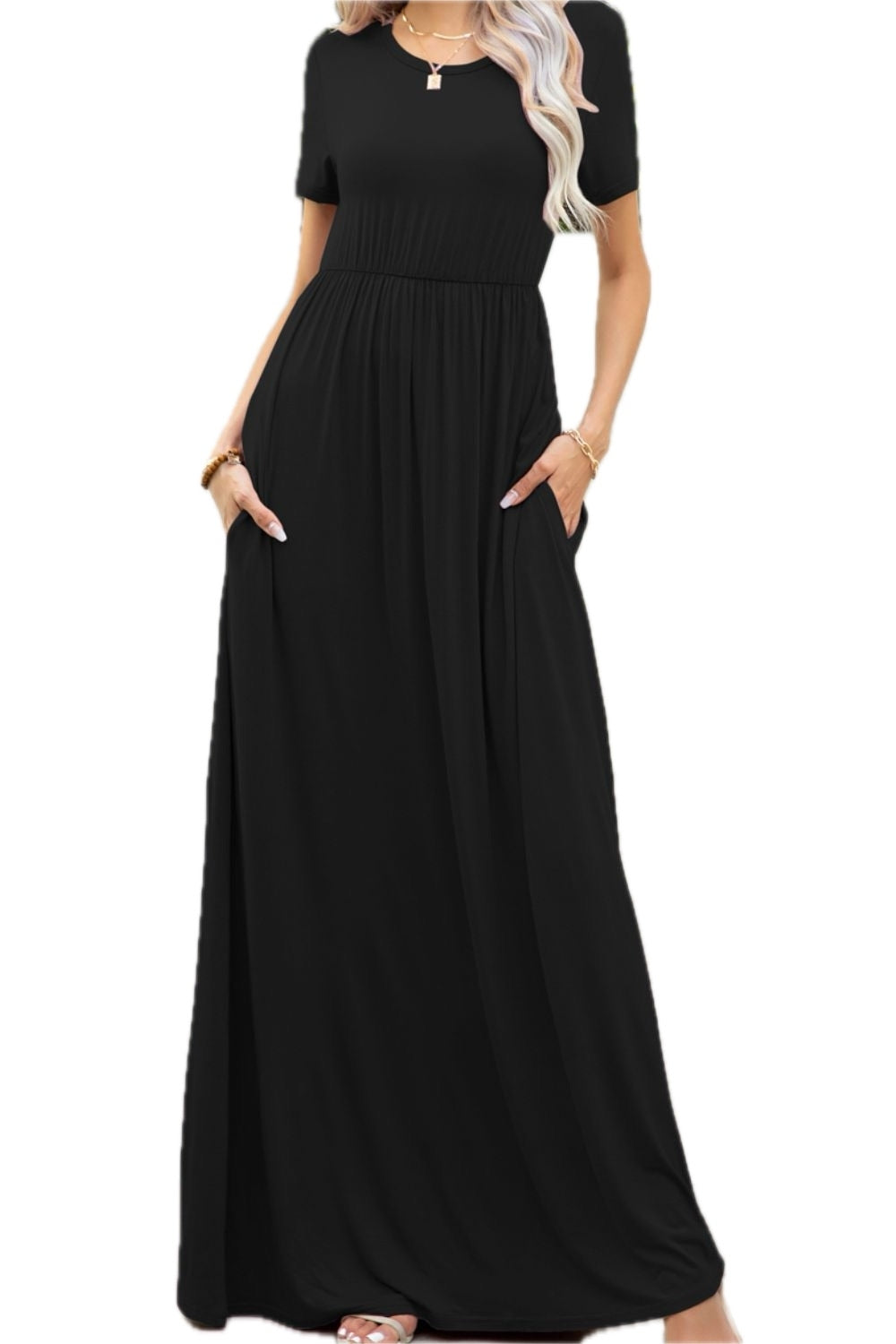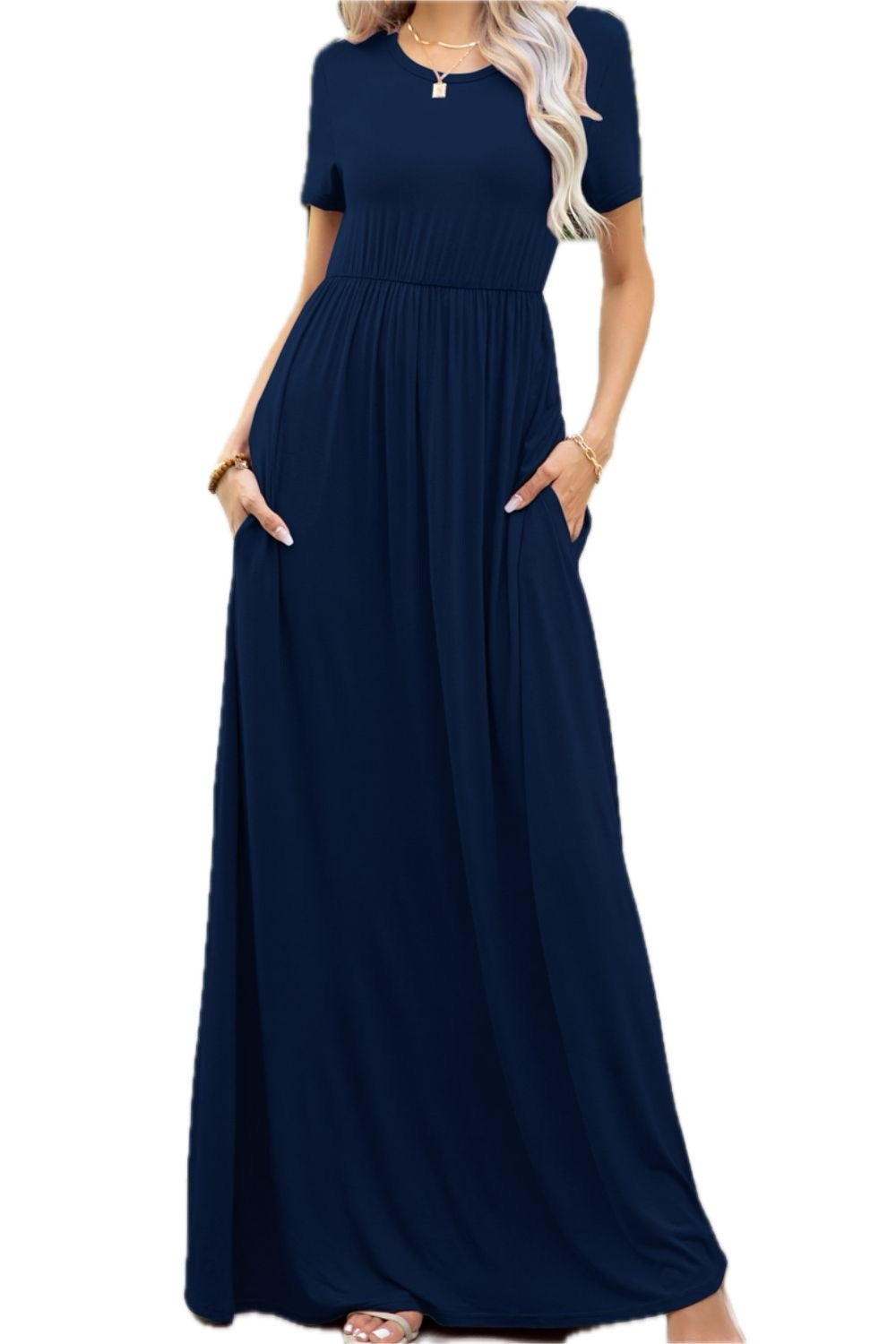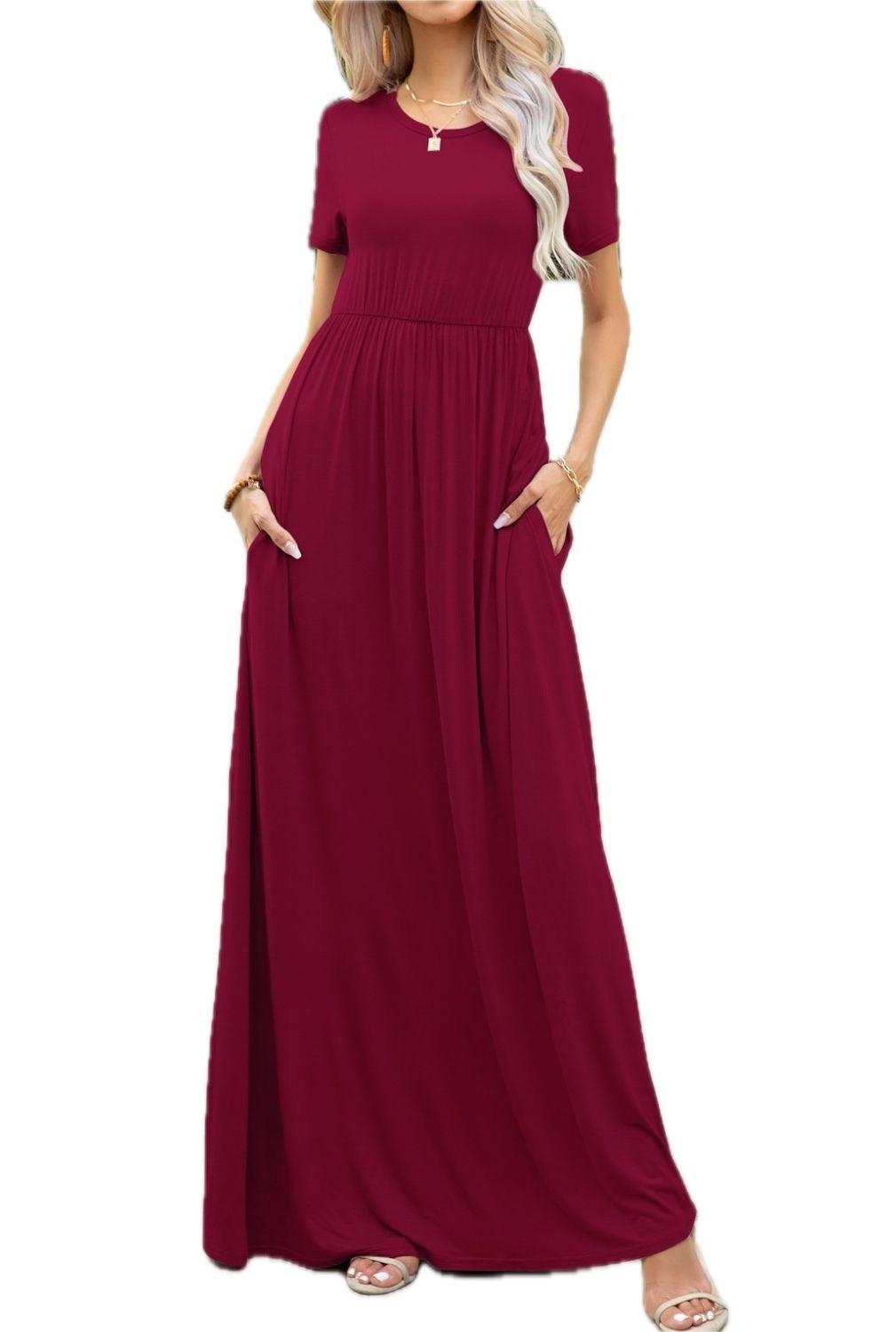 Women's Round Neck Maxi Dress with Pockets Soft Stretch Rayon Spandex 95% rayon 5% spandex Casual Everyday Comfort Wear
