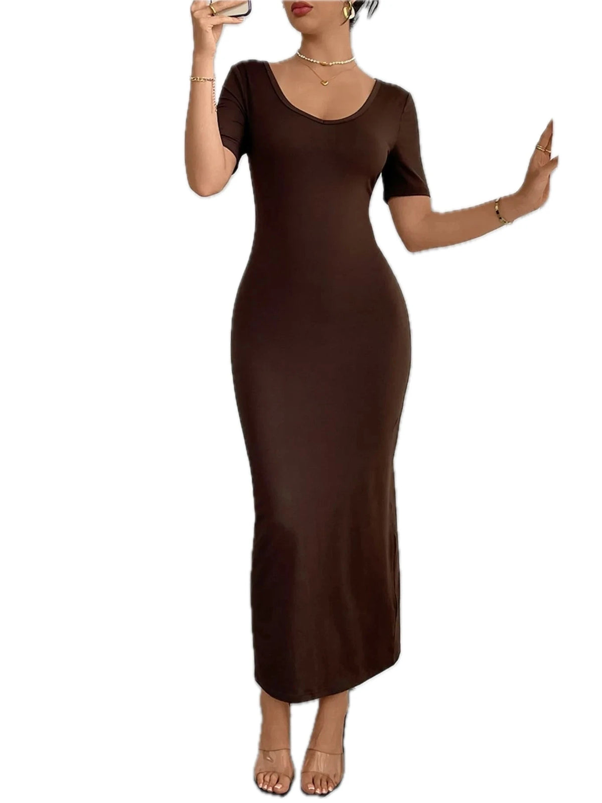 Women's Round Neck Short Sleeve Bodycon Midi Dress with Classic Curve Silhouette for Day or Evening Wear 95% Polyester