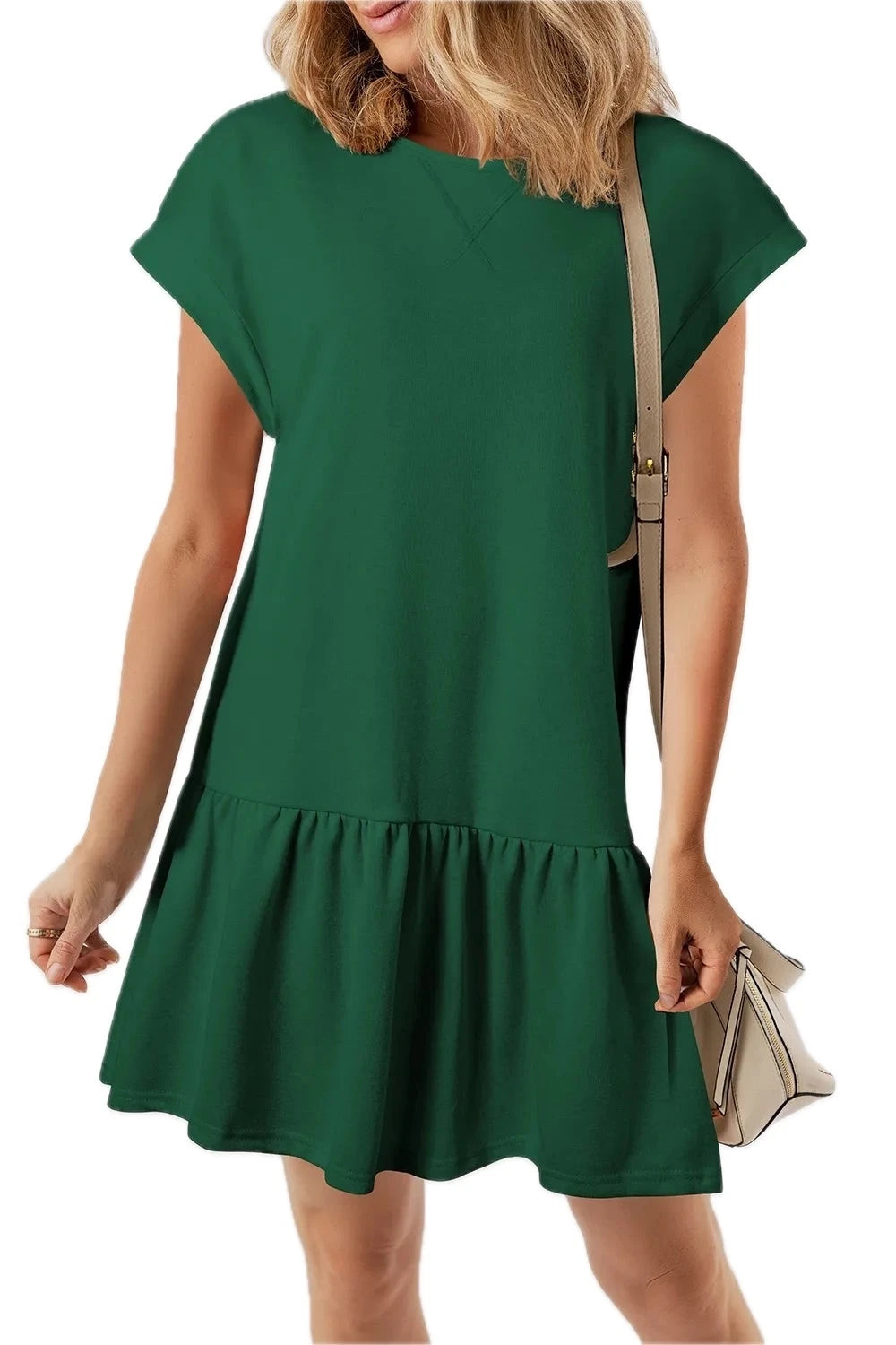Women's Round Neck Short Sleeve Mini Dress with Ruffled Stretch Flattering Shape 65% polyester 30% viscose 5% elastane