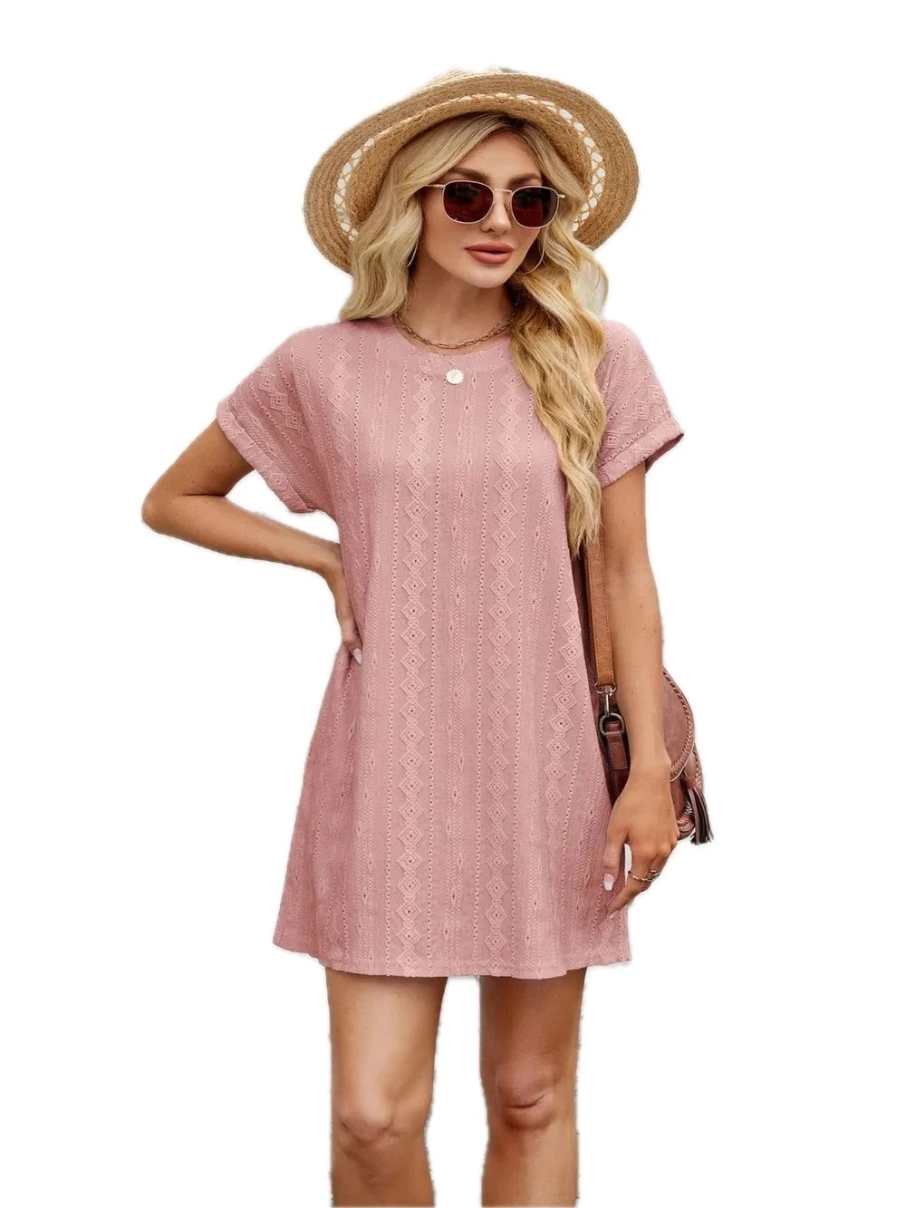 Women's Round Neck Short Sleeve Mini Dress 65% Rayon 30% Polyester 5% Spandex Lightweight Daytime Wear Daily Wear