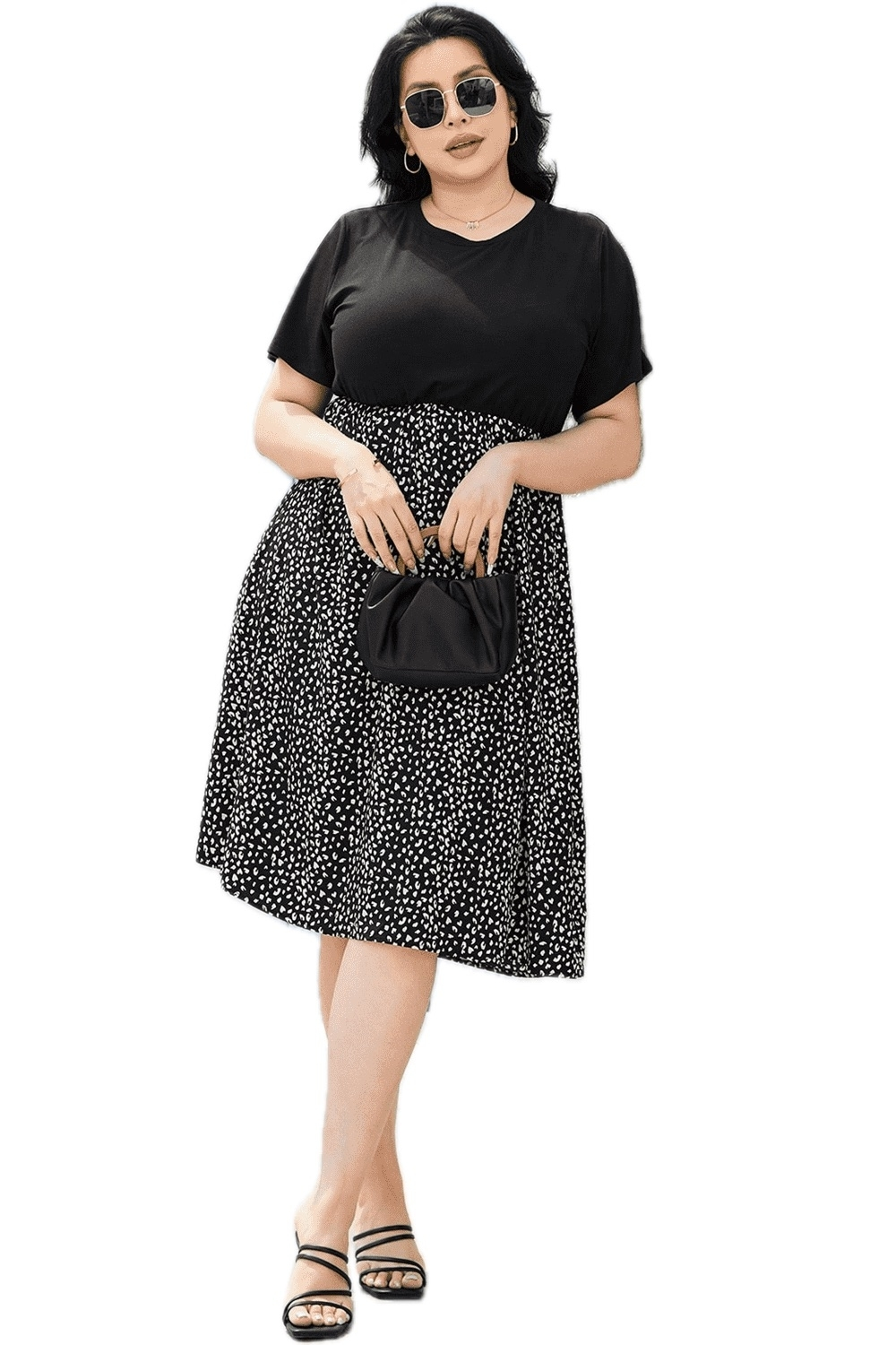Women's Round Neck Short Sleeve Printed Dress Knee Length Aline Ninety Five Percent Polyester Five Percent Spandex