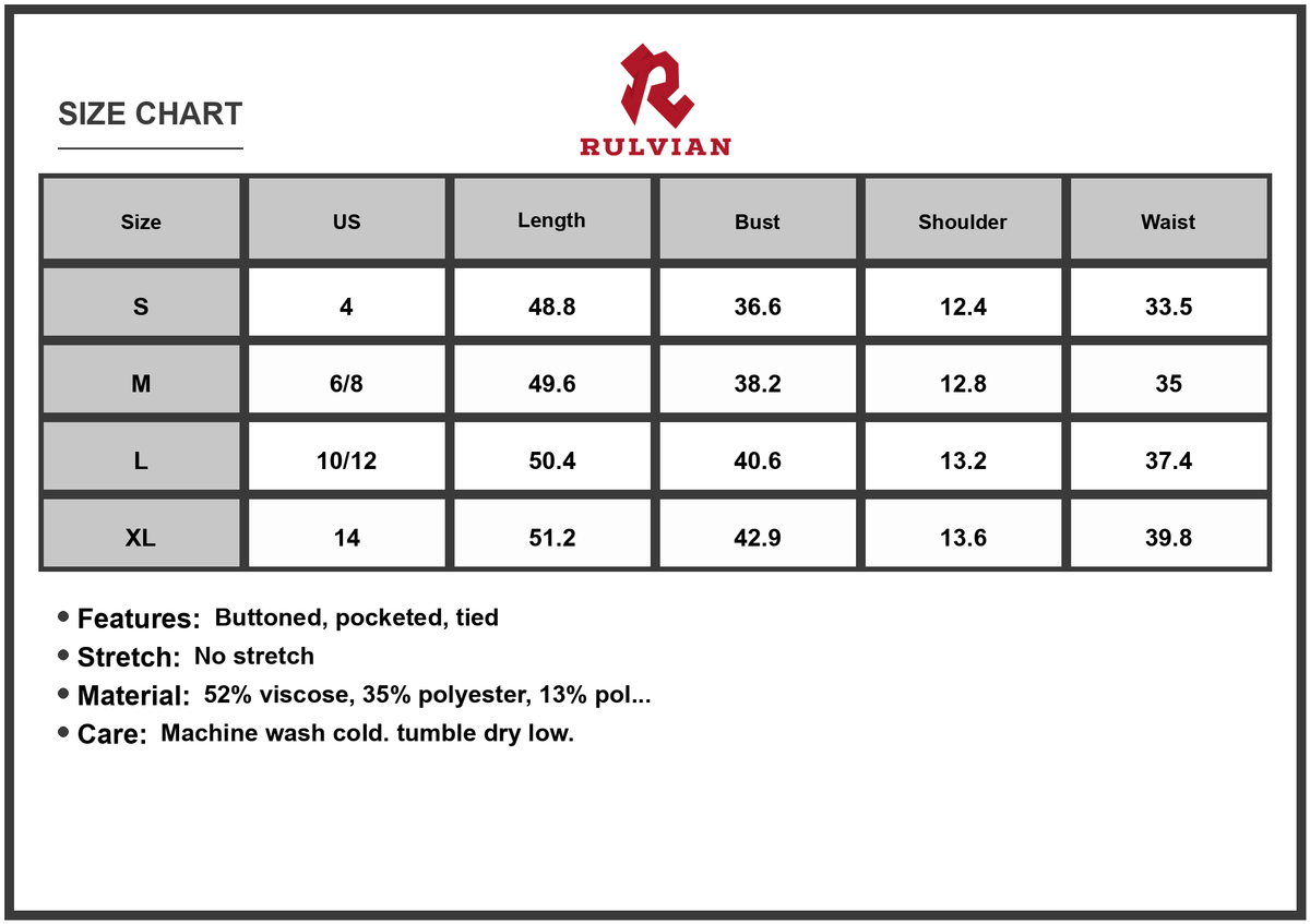 - Material composition: 52% viscose, 35% polyester, 13% polyamide