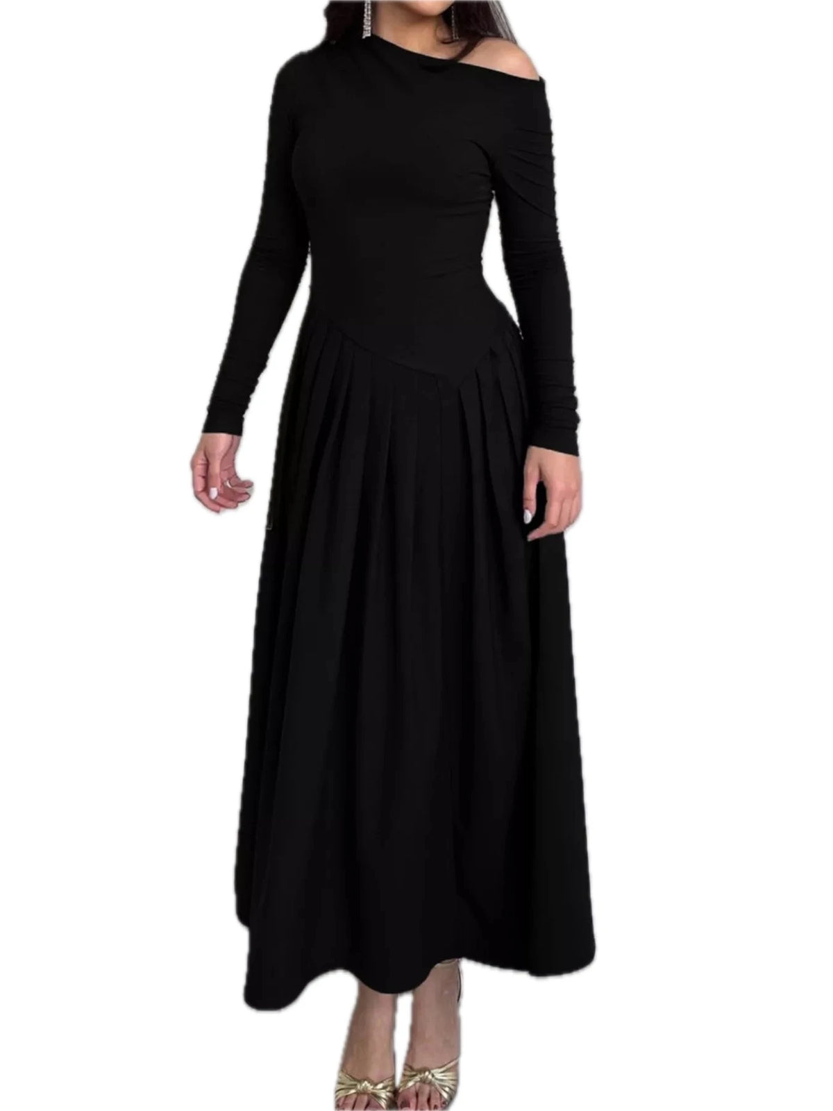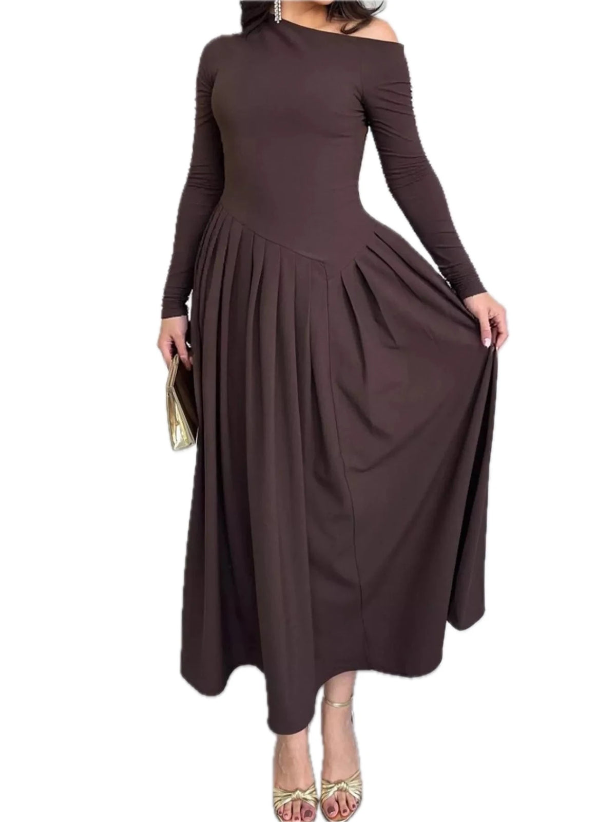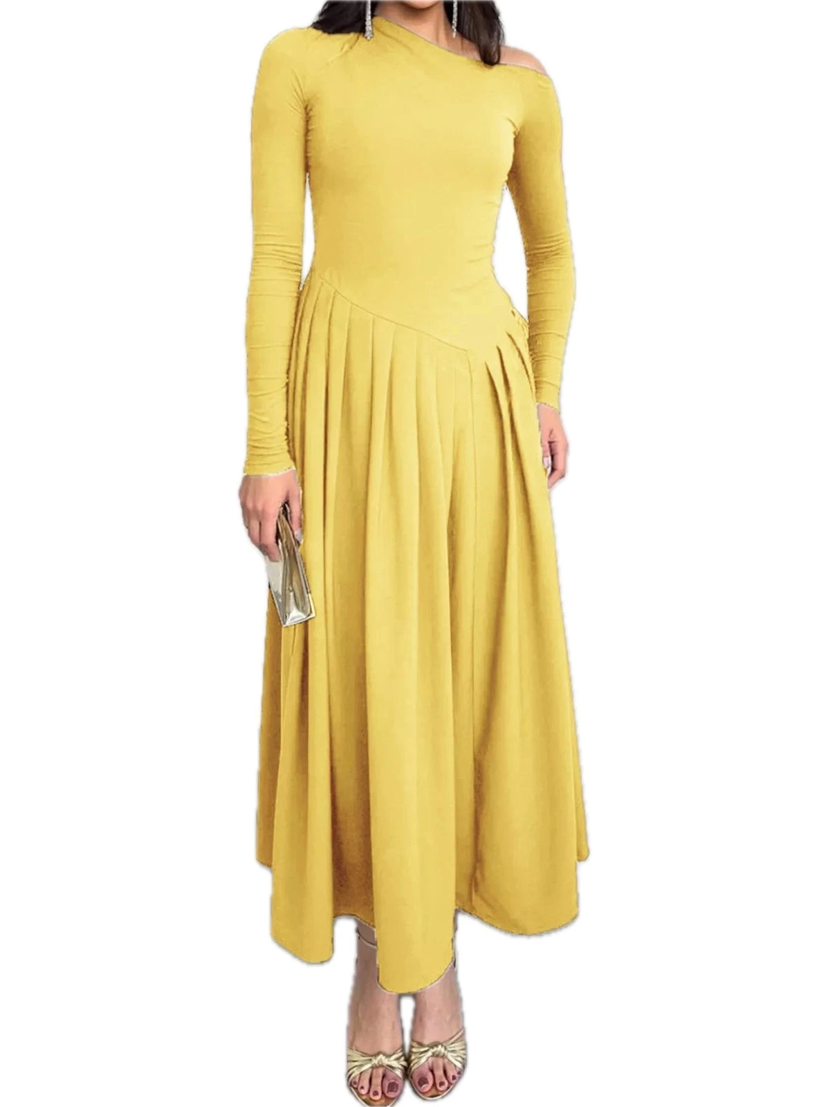 Women's Ruched One Shoulder Long Sleeve Dress 94% Polyester 6% Elastane Fabric Blend for Elegant Evening Wear Attire