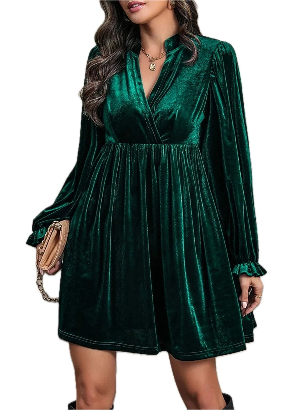 Women's Ruched Surplice Flounce Sleeve Mini Dress 100% Polyester Sheer Yet Opaque Non Stretch Not Lined Party Dress