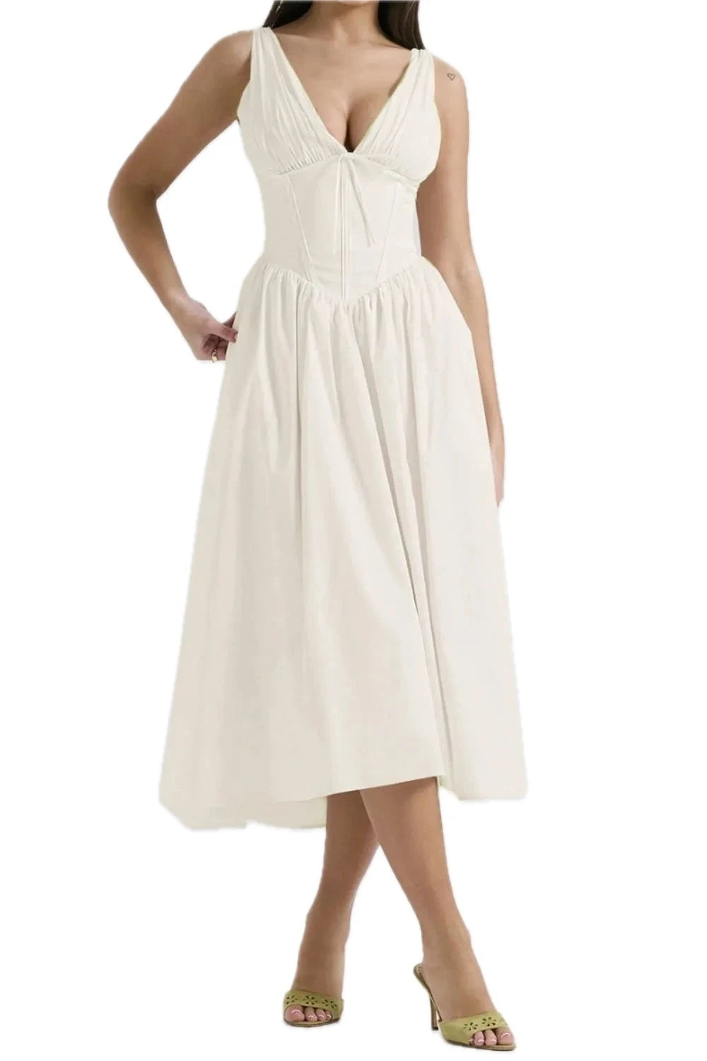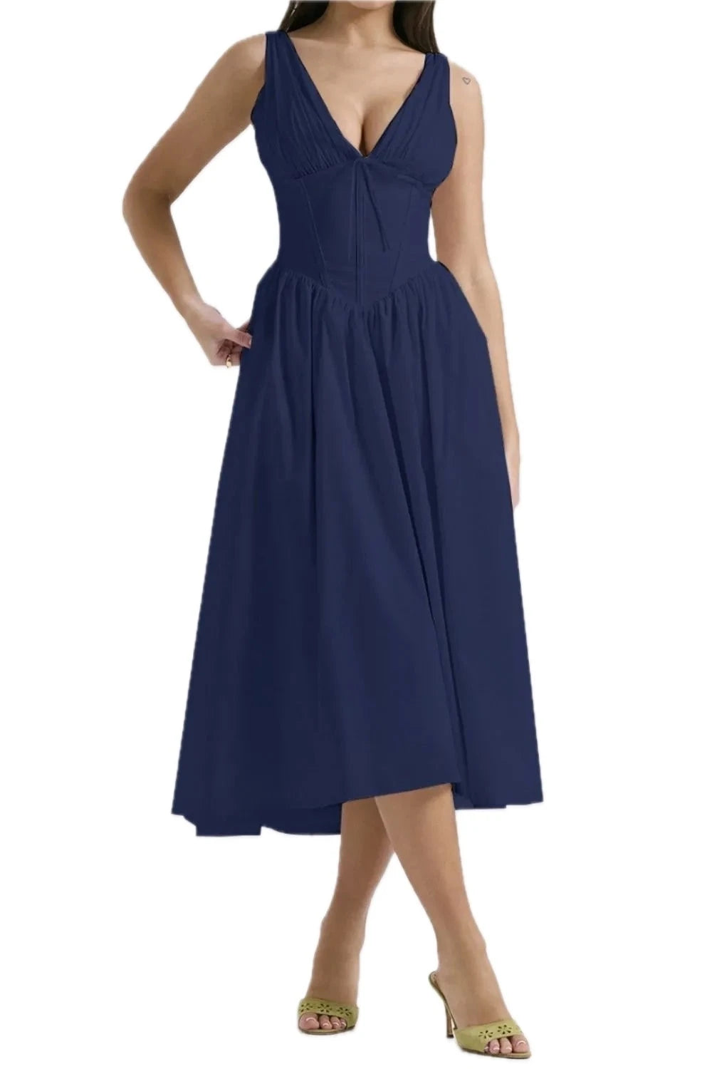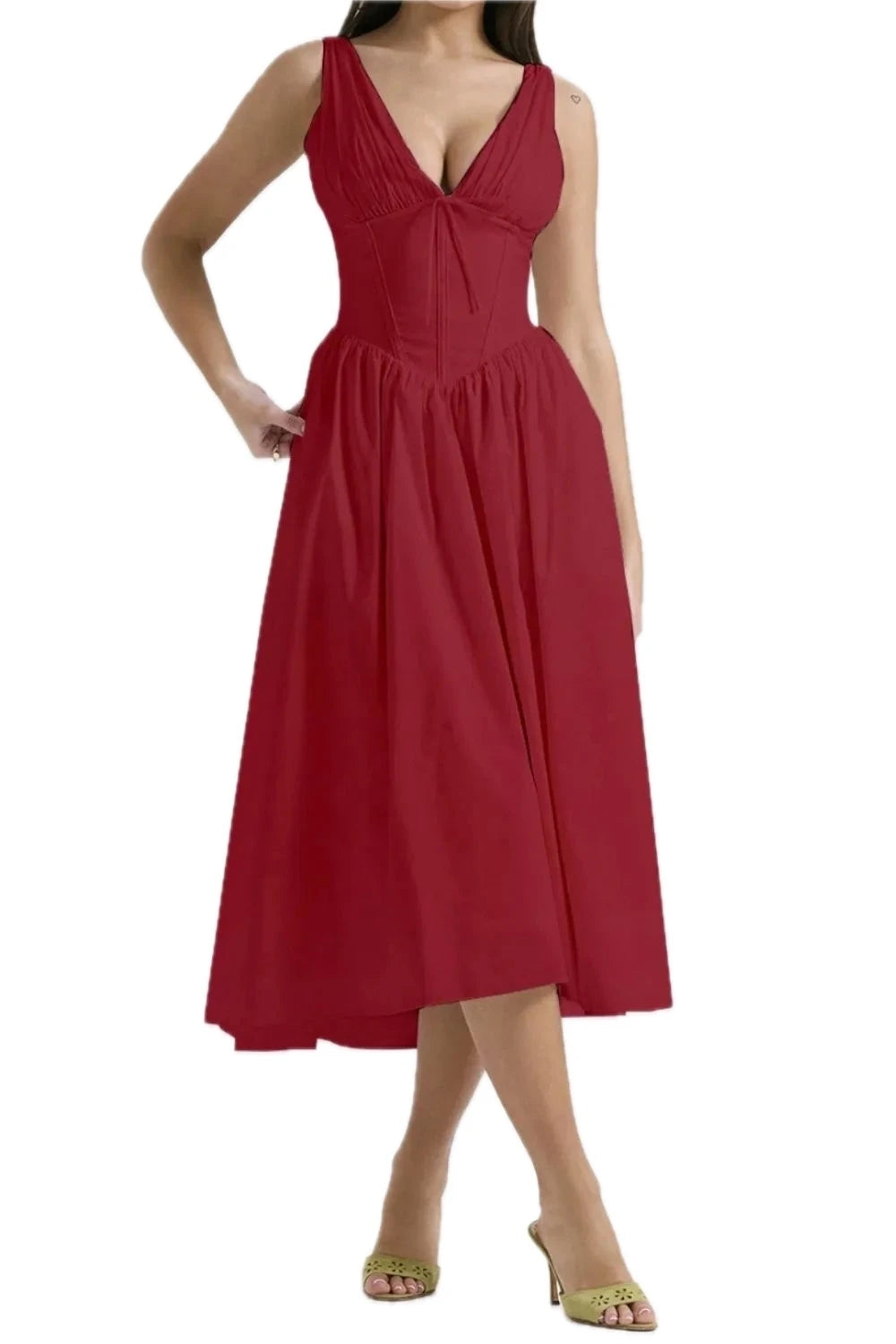 Women's Ruched V-Neck Sleeveless Dress Opaque No Stretch Fabric Ninety Five Percent Polyester And Five Percent Elastane