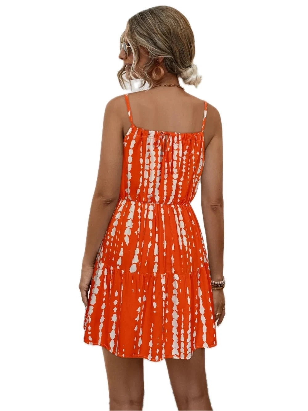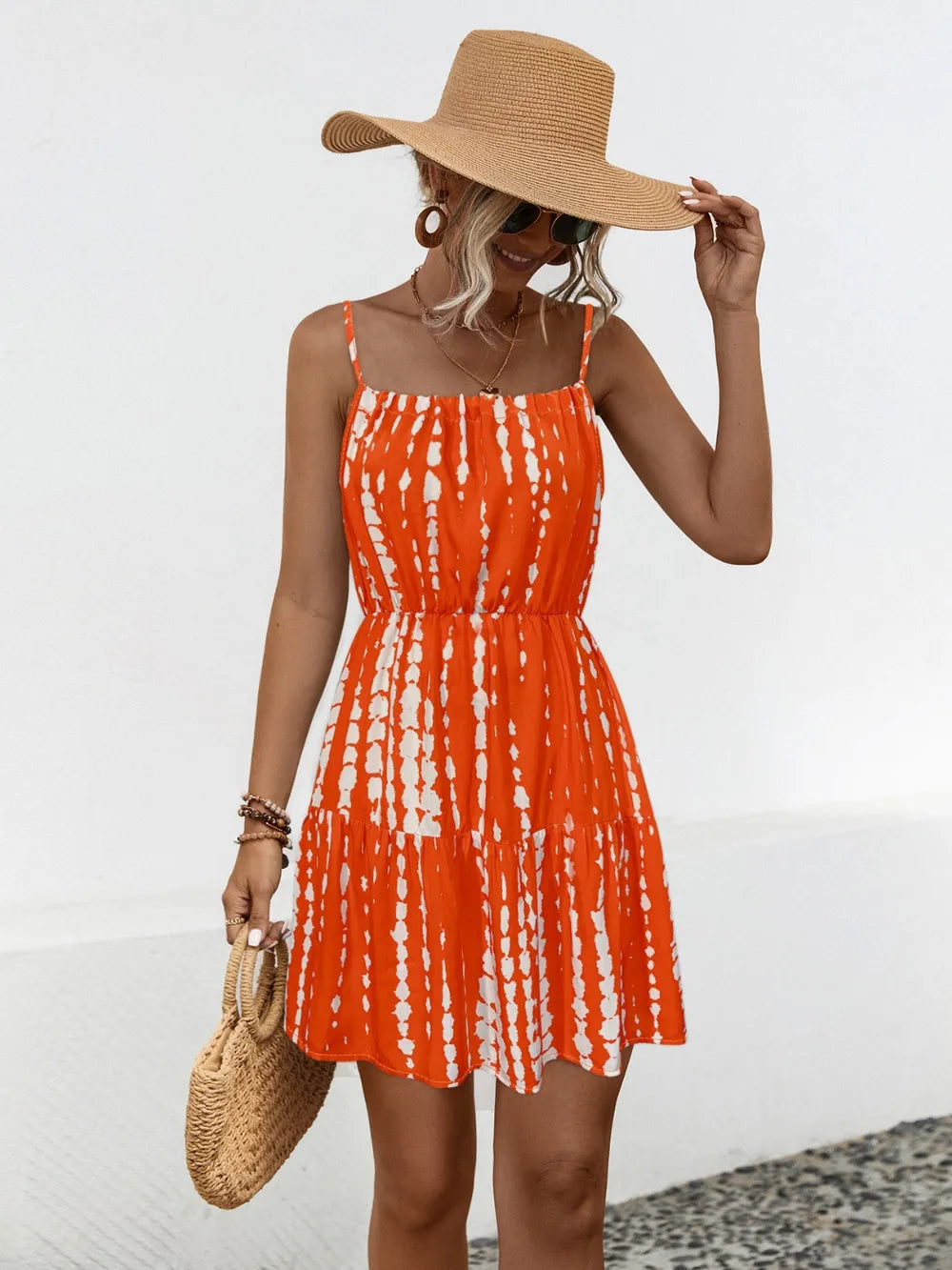 Women's Ruffle Hem Printed Mini Cami Dress Ninety Five % Polyester Five % Elastane Lightweight Daywear Casual Daily