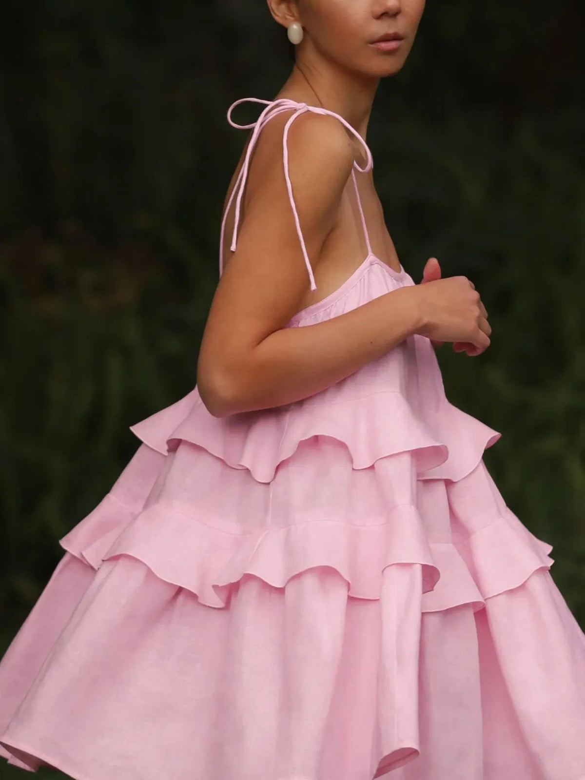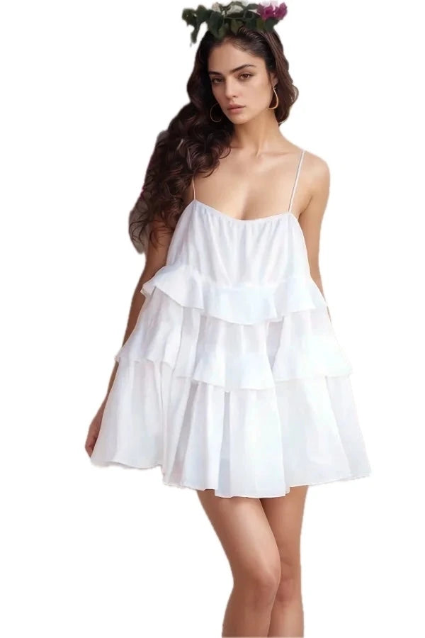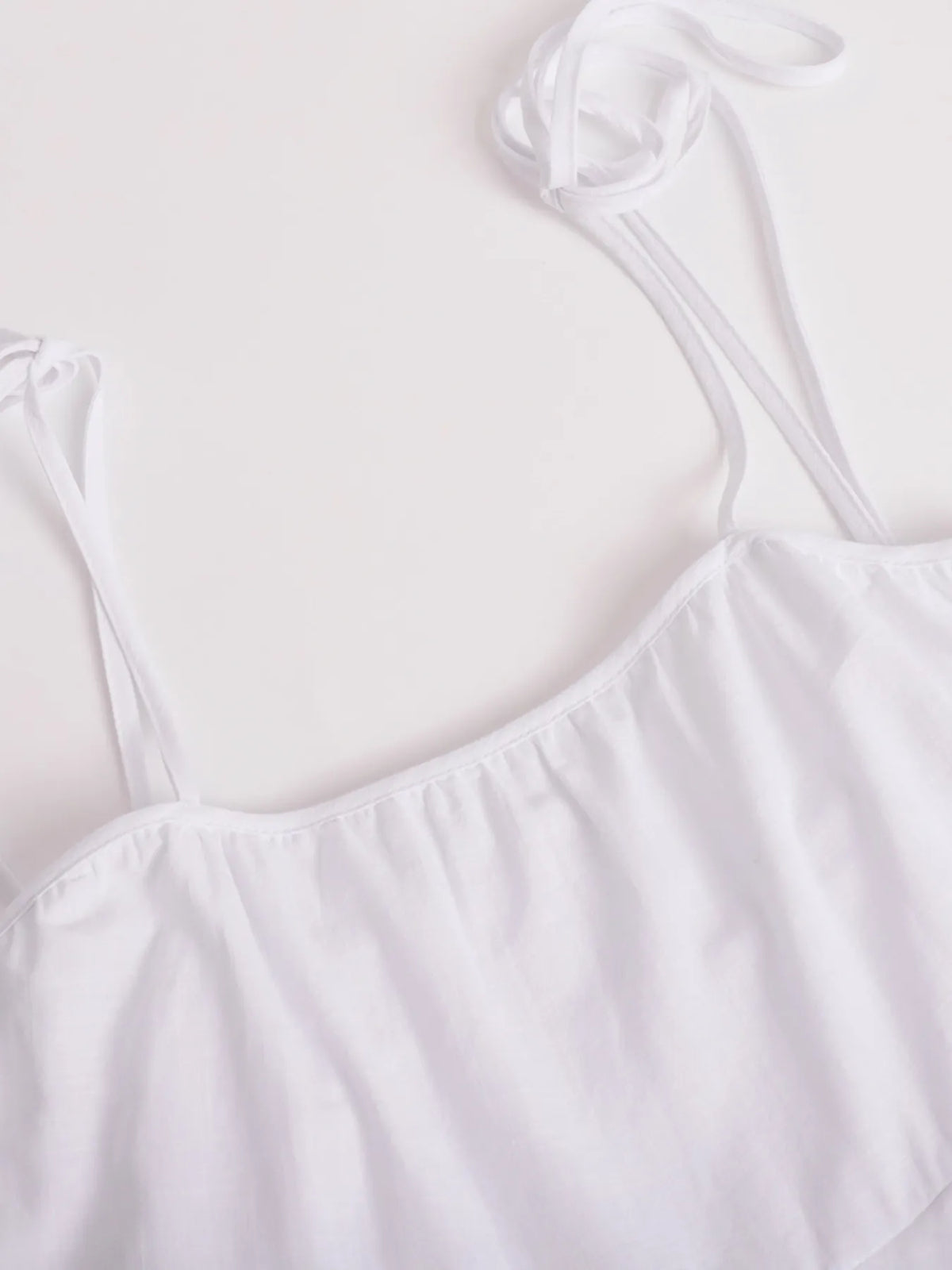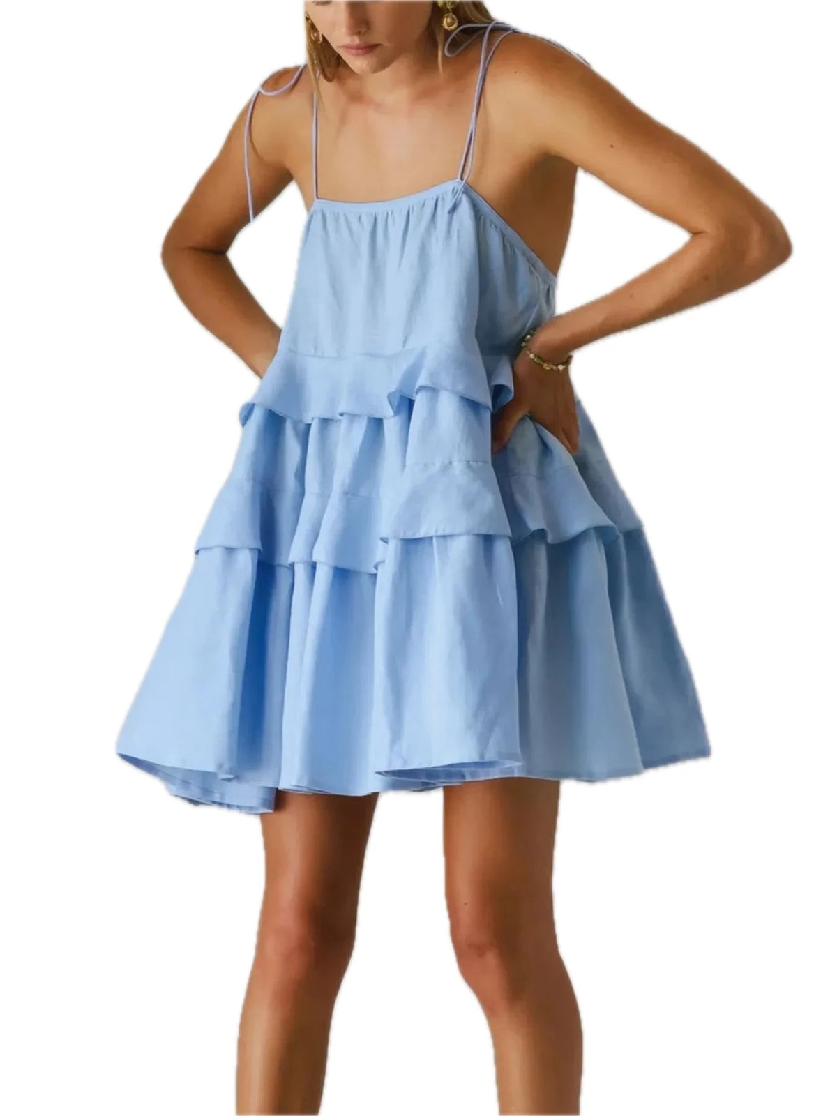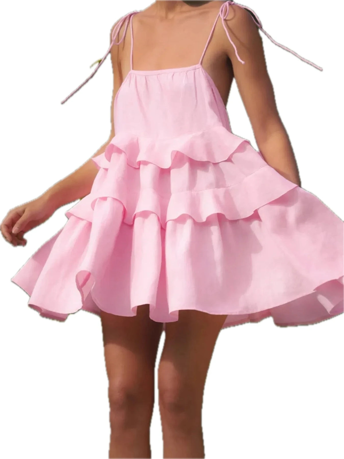 Women's Ruffle Layered Tie Shoulder Cami Dress 100% Cotton Fabric for Effortless Summer Chic Everyday Wear AllDay