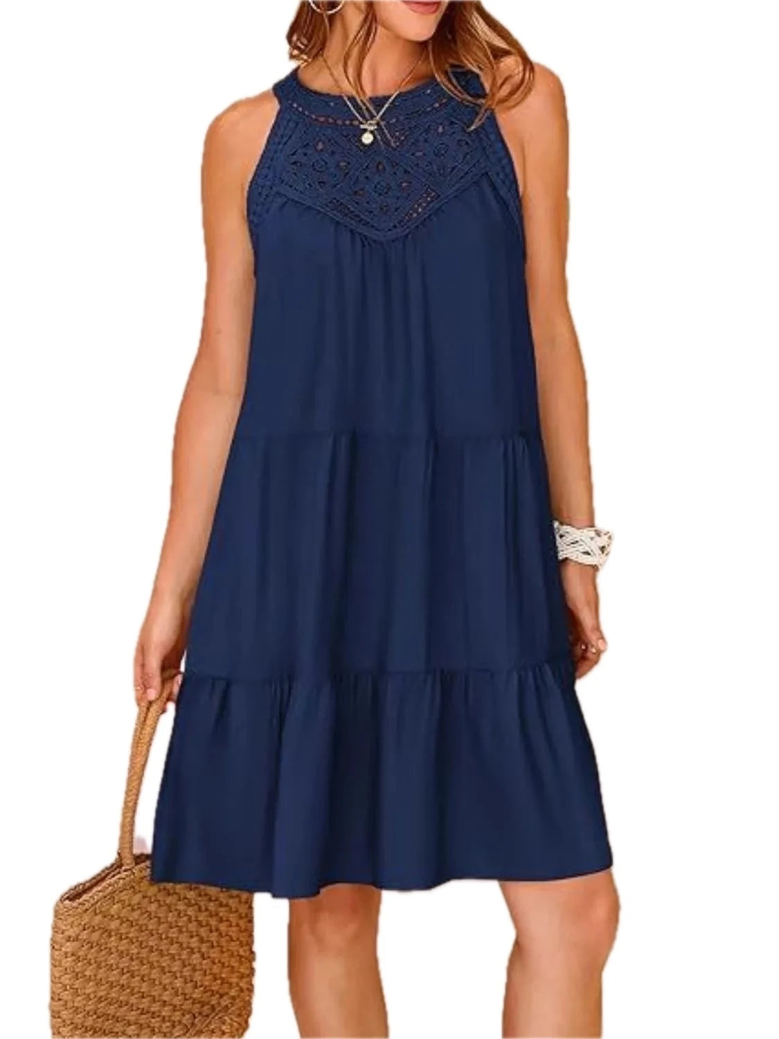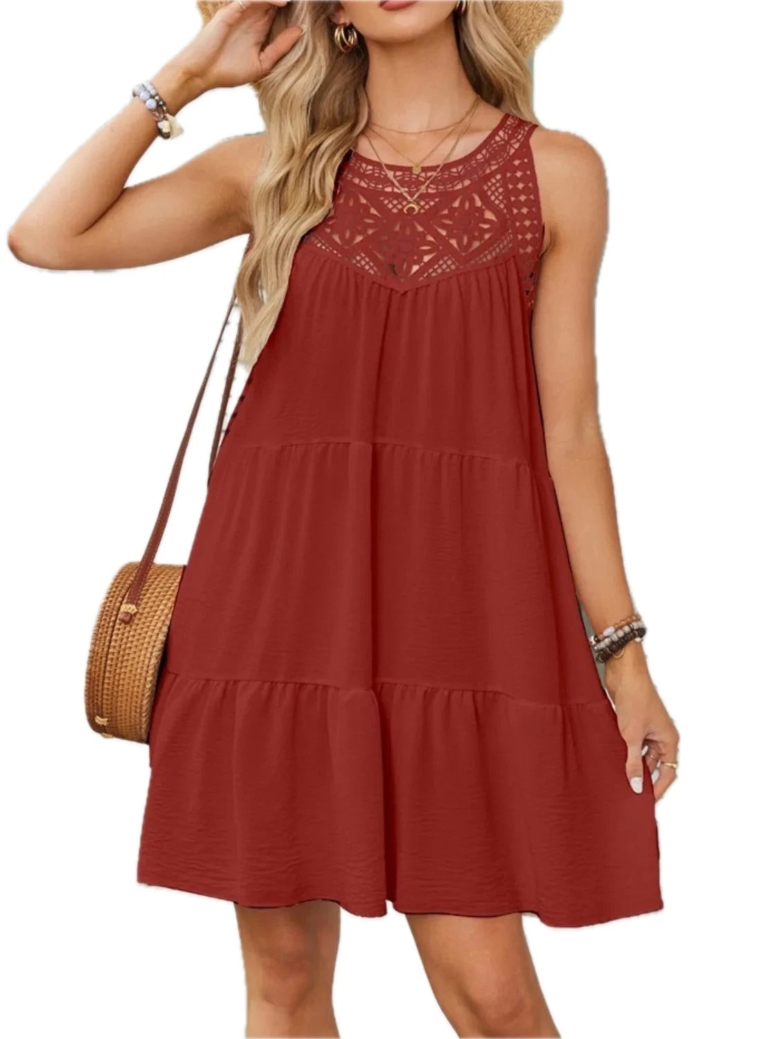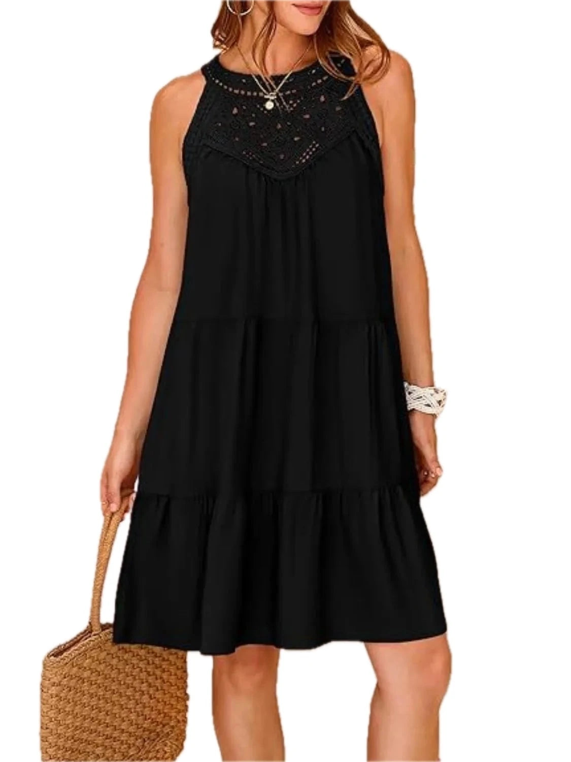 Women's Ruffled Hem Lace Sleeveless Dress with Elegant Twist and Breathable Everyday Comfort 95% Polyester 5% Spandex
