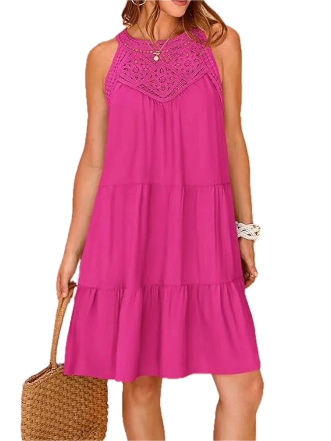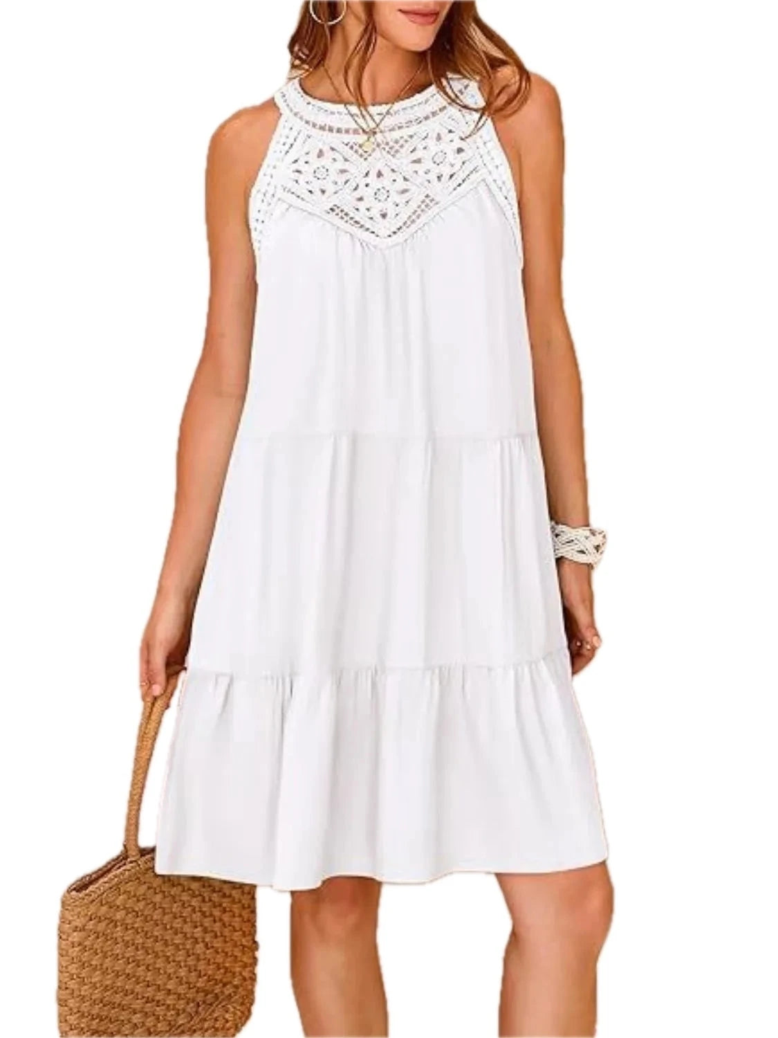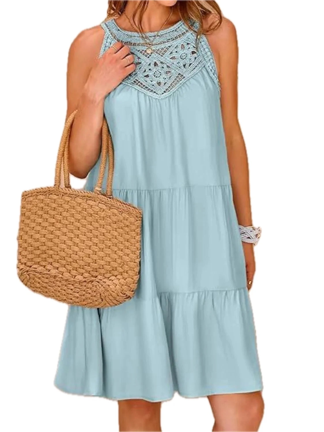 Women's Ruffled Hem Lace Sleeveless Dress with Elegant Twist and Breathable Everyday Comfort 95% Polyester 5% Spandex