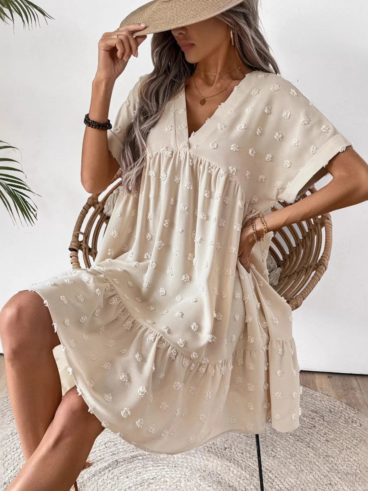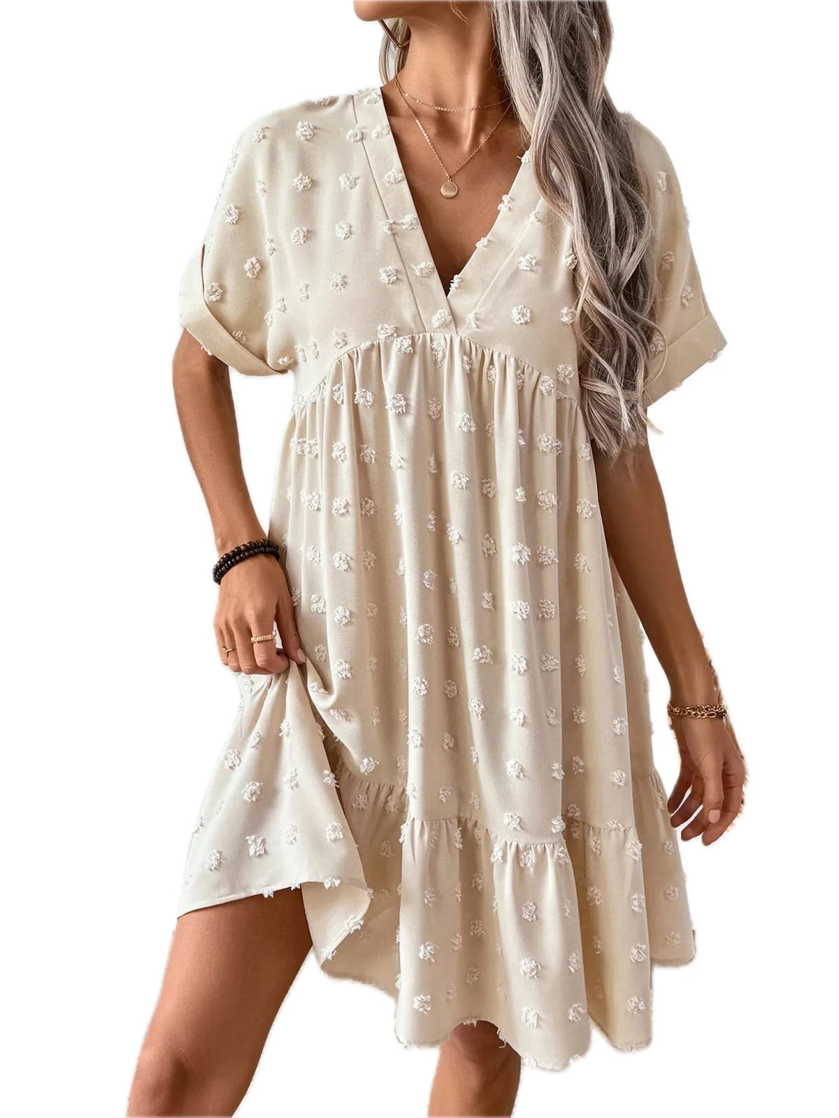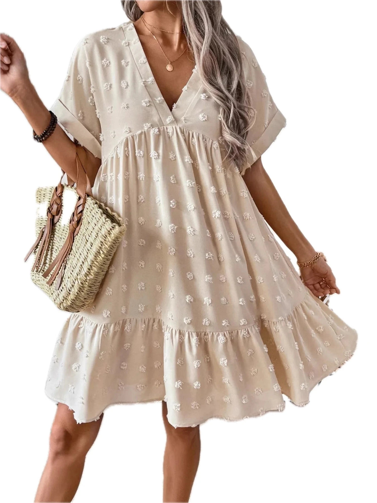 Women's Ruffled Hem Swiss Dot Mini Dress 100% Polyester Lightweight Flowy Silhouette for Daytime and Evening Wear
