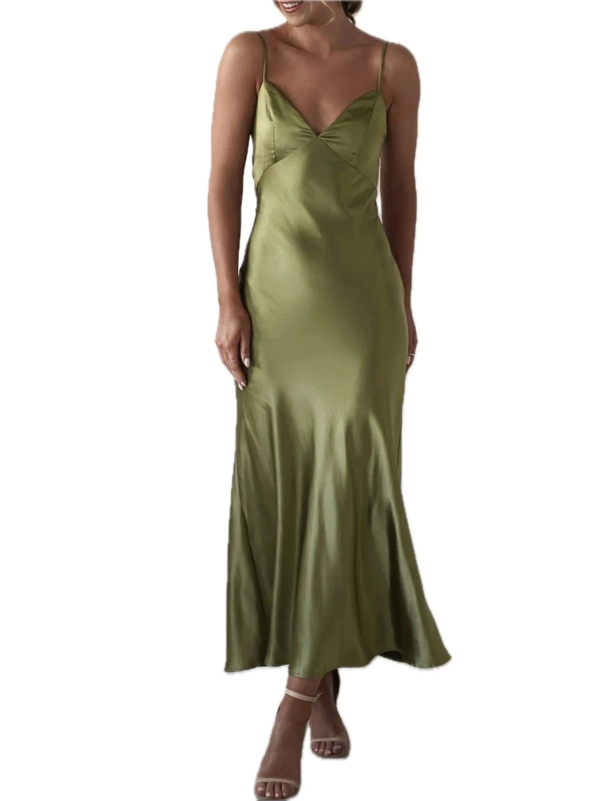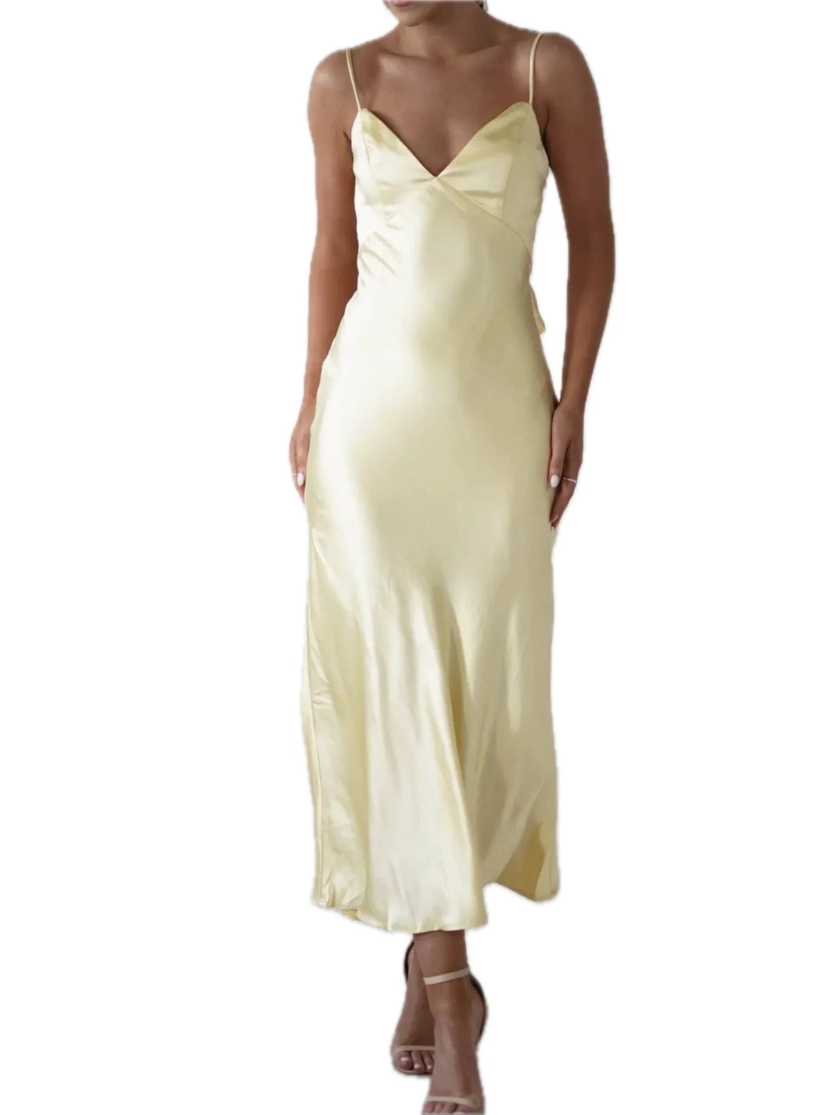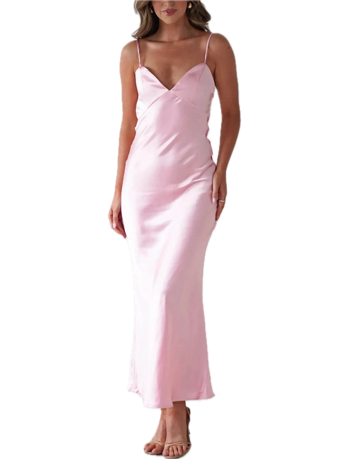 Women's Satin Backless Cami Dress 100% Polyester Fabric Silky Shine Evening Fashion for Special Occasions and Parties