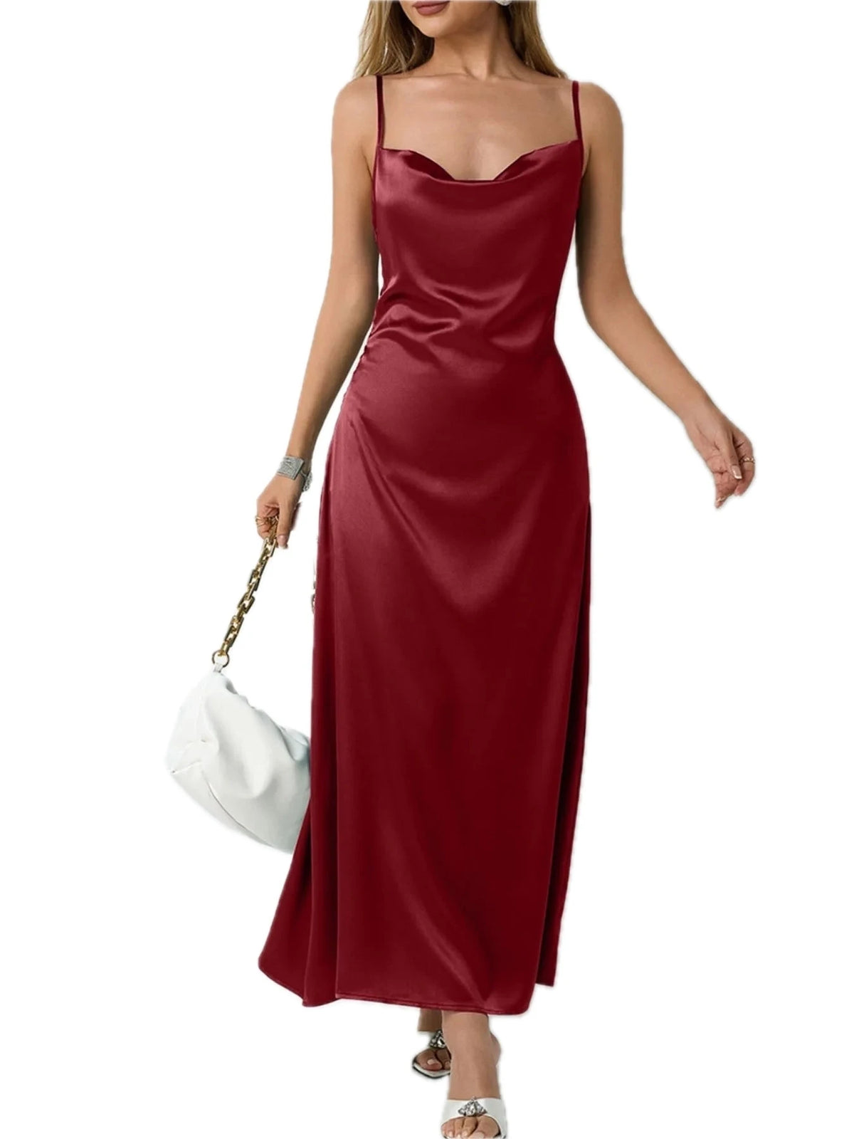Women's Satin Cowl Neck Cami Dress with Slightly Stretch Fabric for Elegant Evening Wear and Party Events Glamour